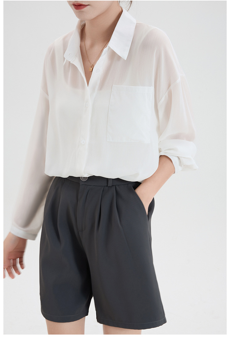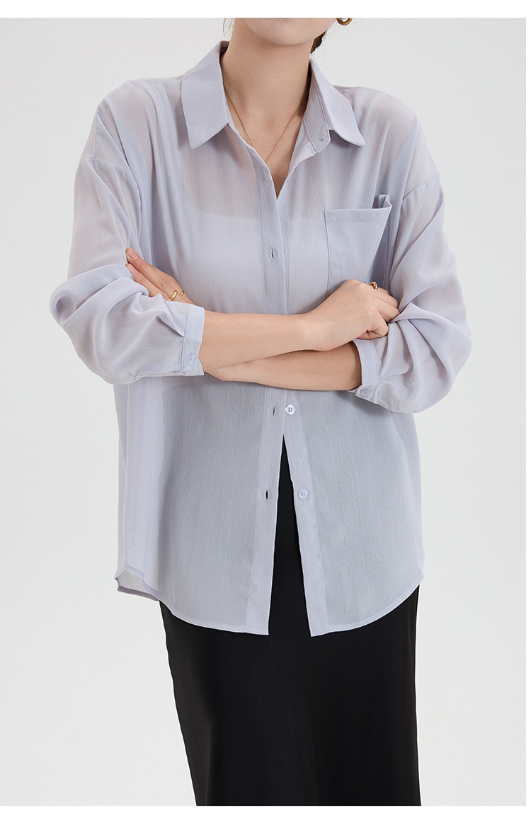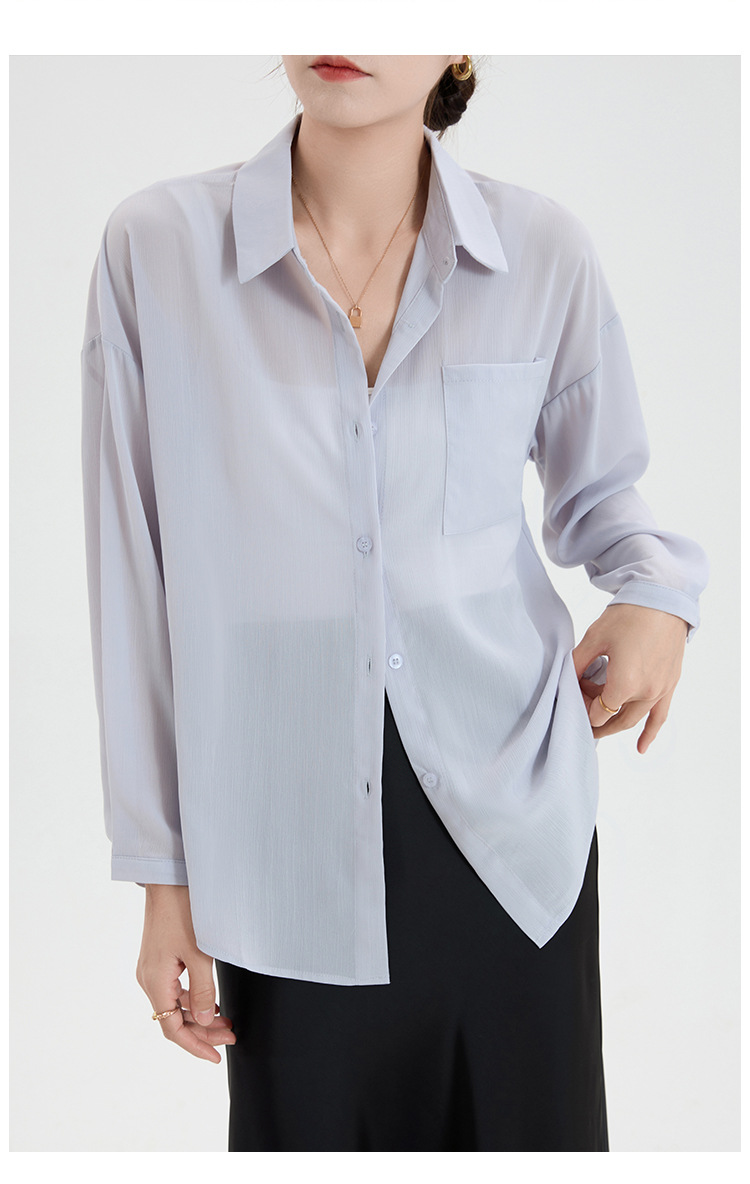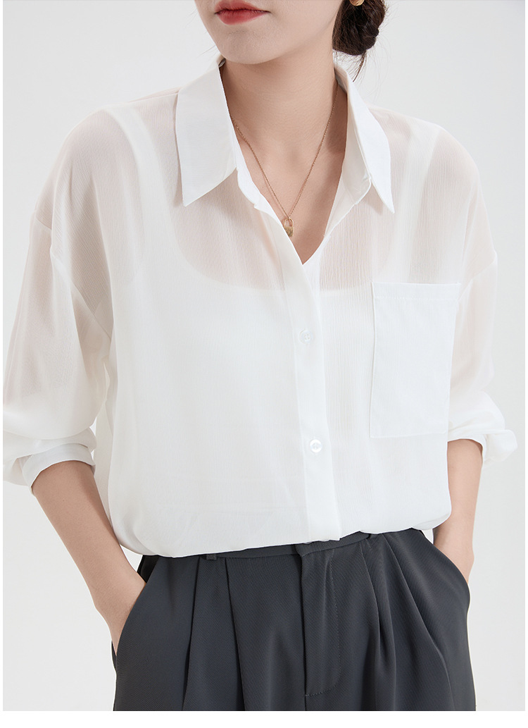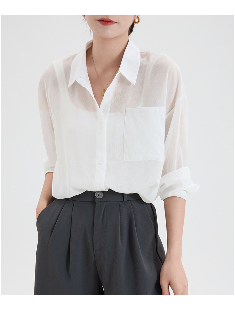 리얼 샷 여름 해변 휴일 화이트 셔츠 여성용 선스크린 셔츠 경량 외부 카디건 긴 소매 아이스 실크 셔츠 에어컨 셔츠