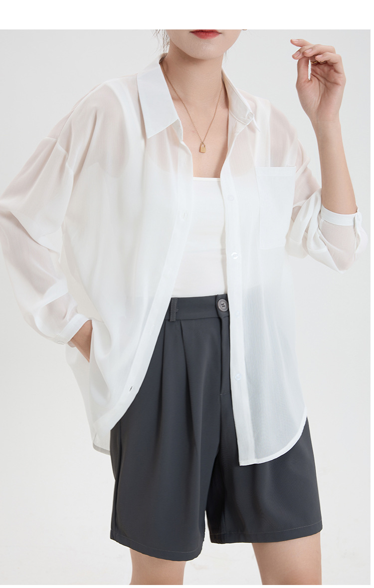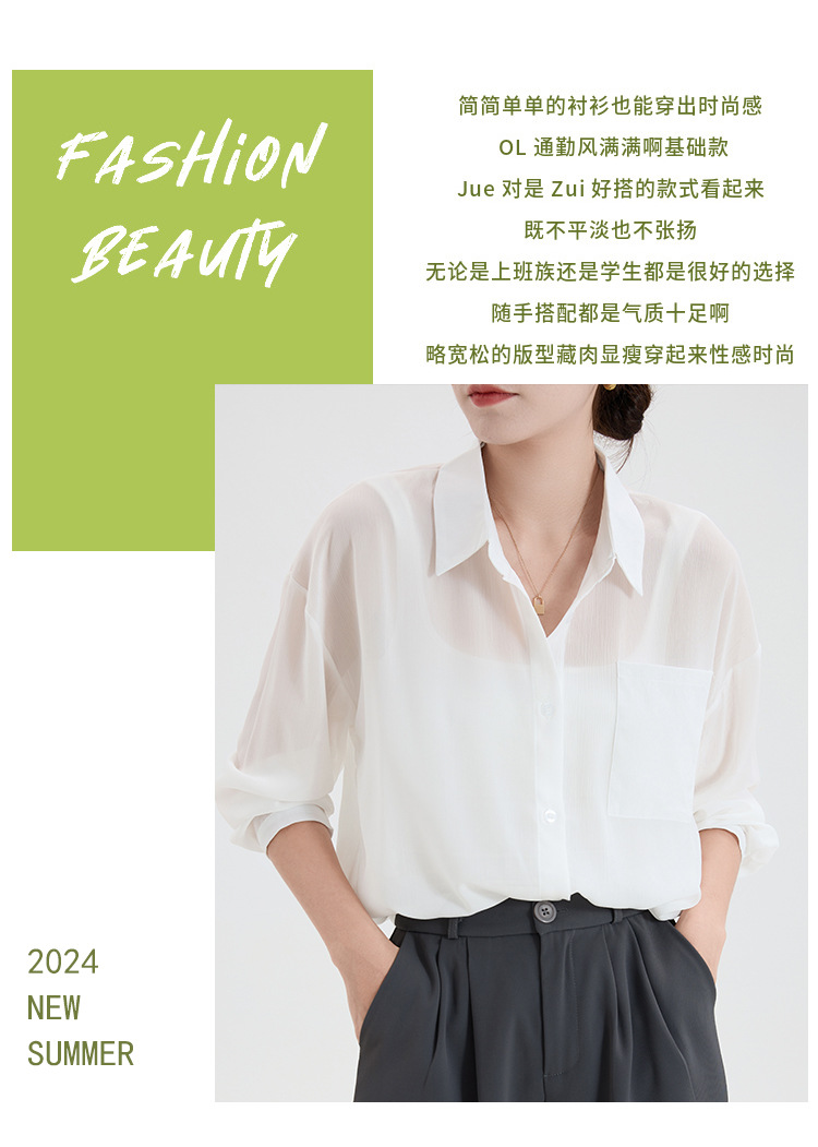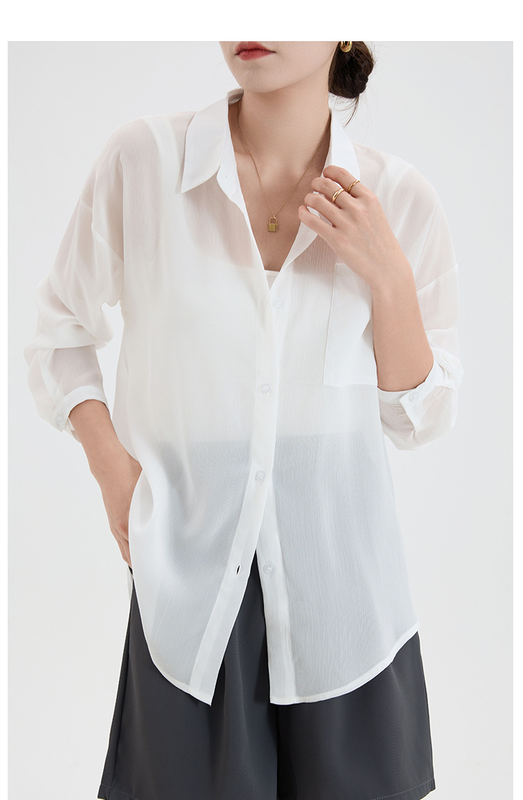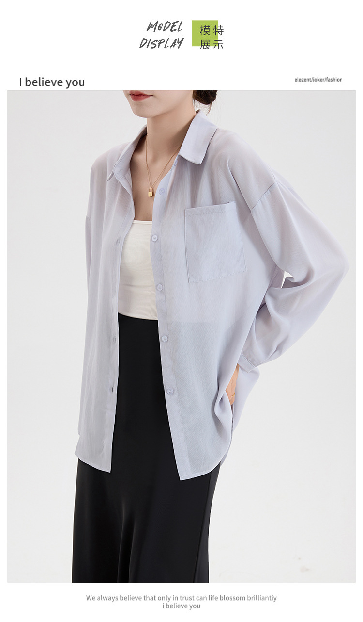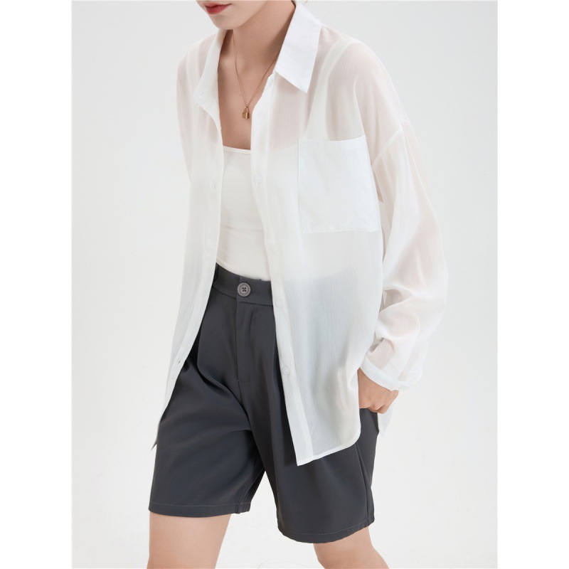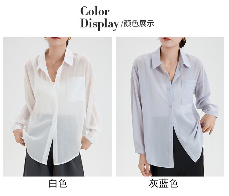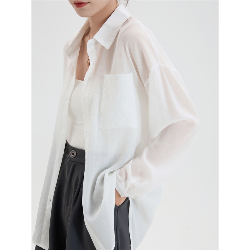 리얼 샷 여름 해변 휴일 화이트 셔츠 여성용 선스크린 셔츠 경량 외부 카디건 긴 소매 아이스 실크 셔츠 에어컨 셔츠스토어 가기