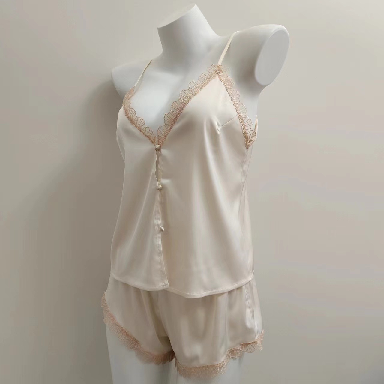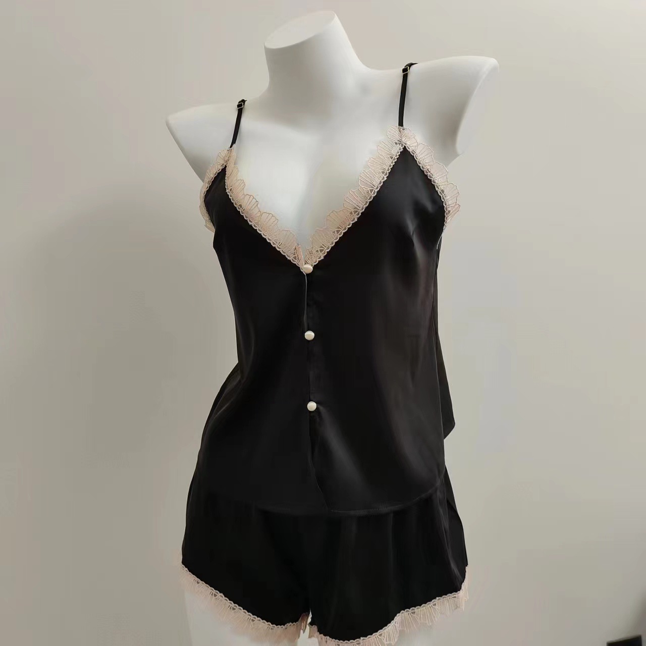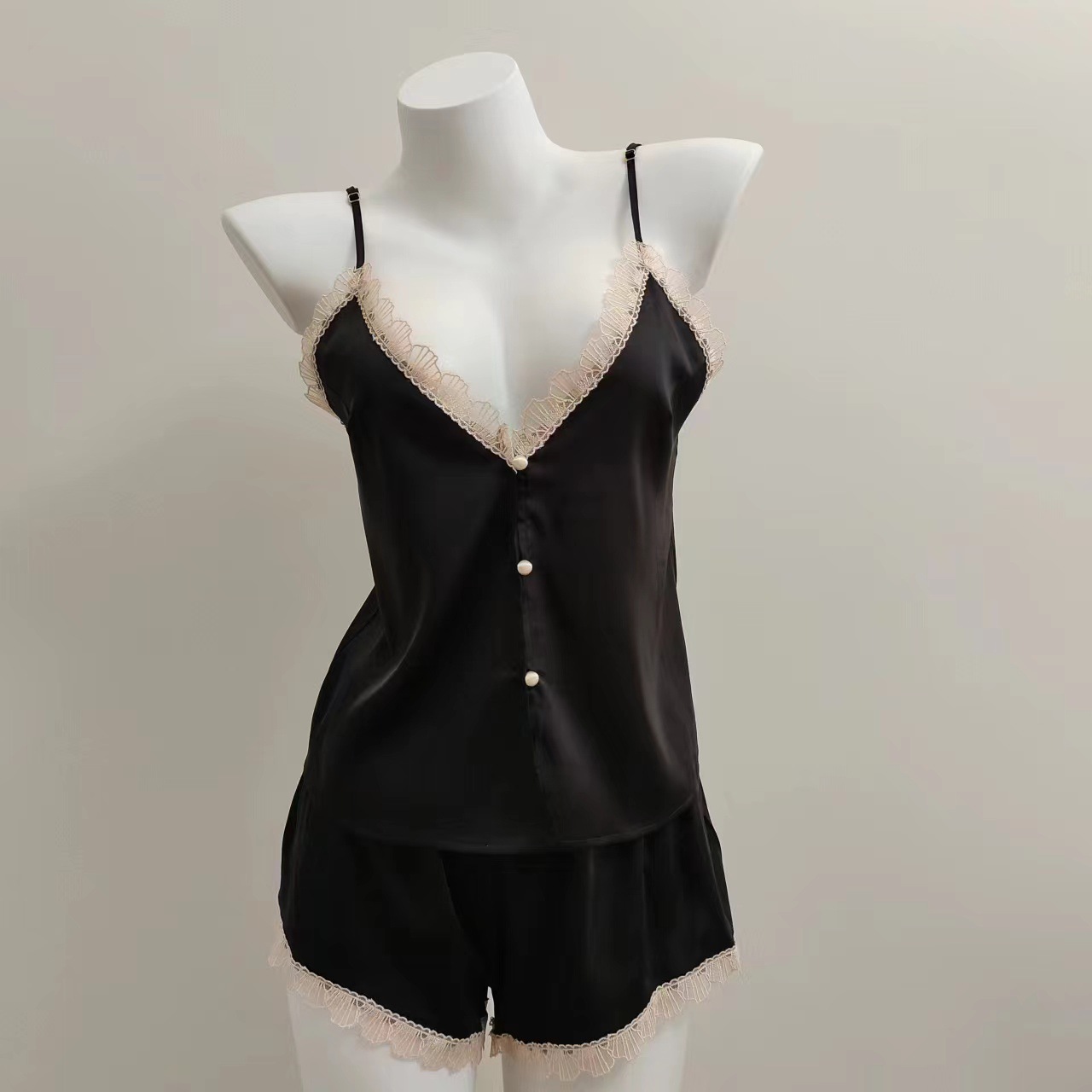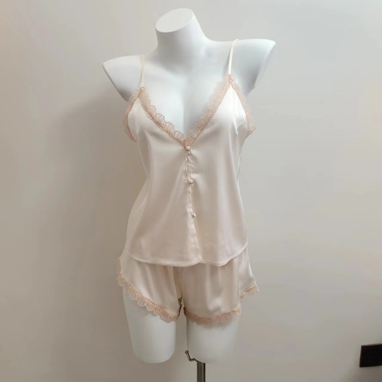 2024 새로운 아이스 실크 슬링 파자마 섹시한 홈 의류 세트 봄과 가을 순수한 욕망 바람 작은 가슴 앞 버클 여성 속옷스토어 가기