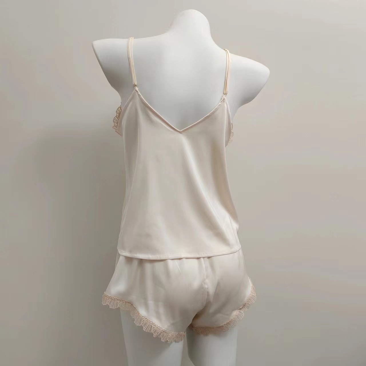 2024 새로운 아이스 실크 슬링 파자마 섹시한 홈 의류 세트 봄과 가을 순수한 욕망 바람 작은 가슴 앞 버클 여성 속옷