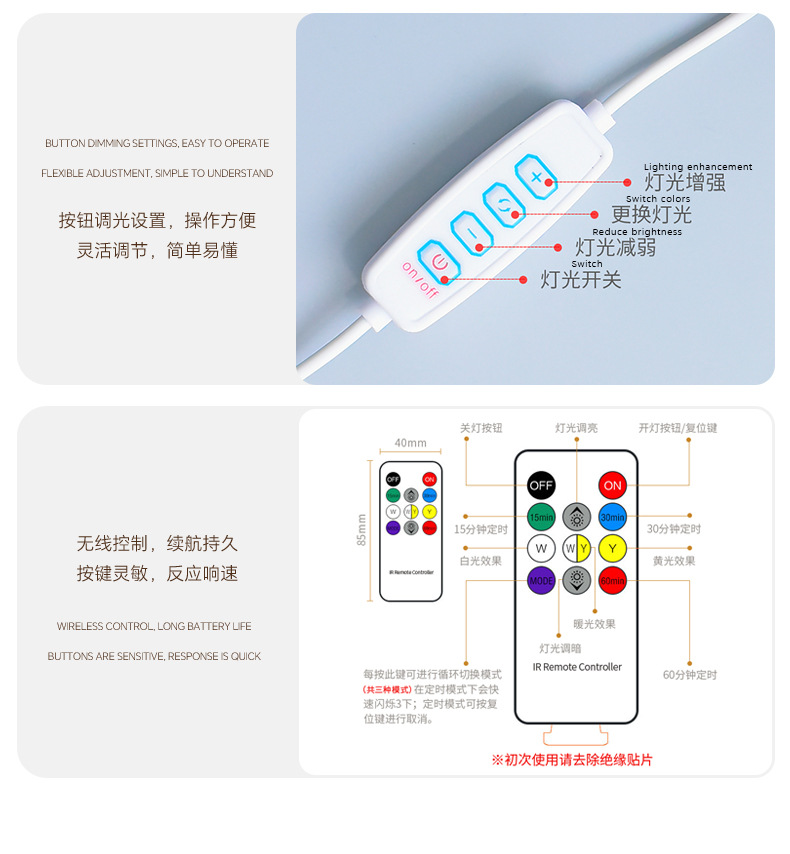 • USB(따뜻한 빛) 첫 번째 기어 스위치