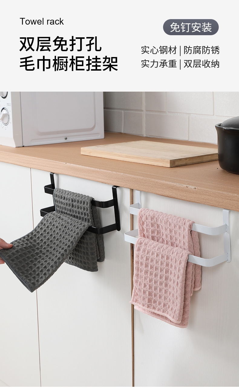수건 걸이 철제 펀치없는 화장실 수건 바 이중 막대 벽 화장실 욕실 선반