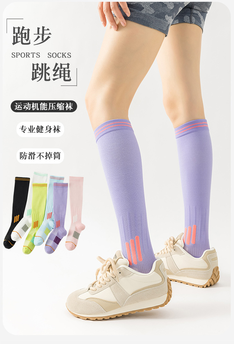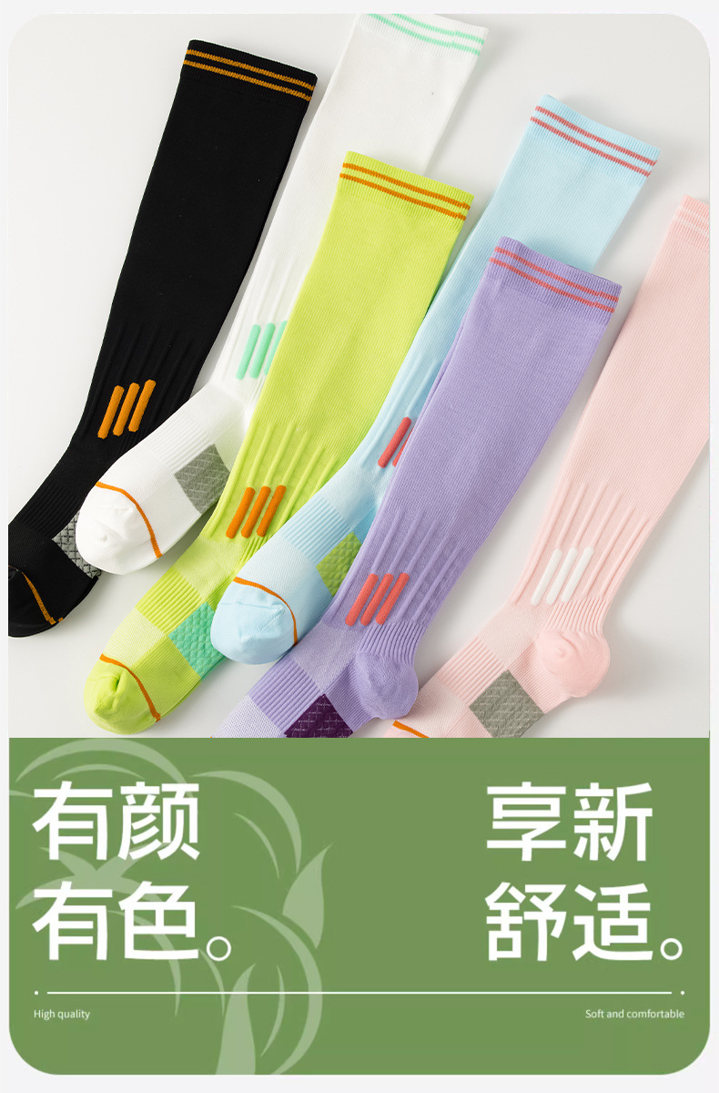 압력 양말 여성 스포츠 전문 피트니스 솔리드 컬러 러닝 압축 양말 긴 튜브 땀 흡수 통기성 탈취제 송아지 양말