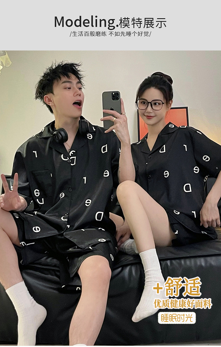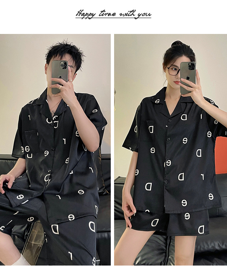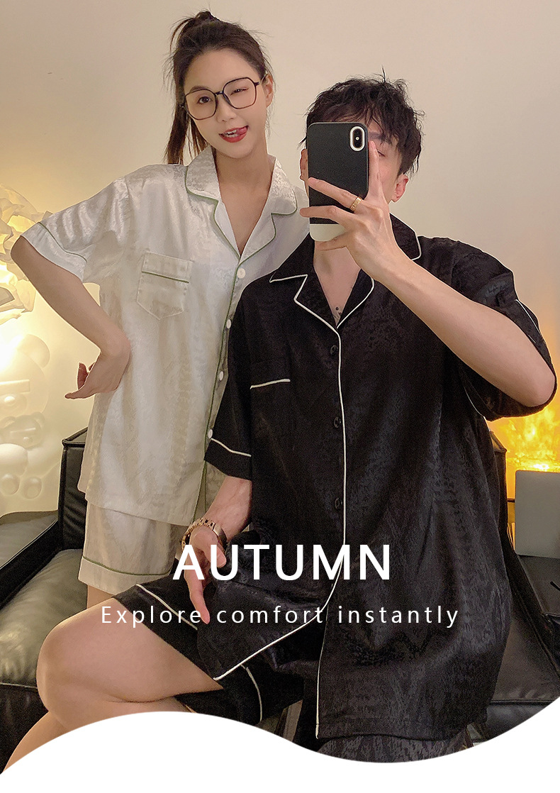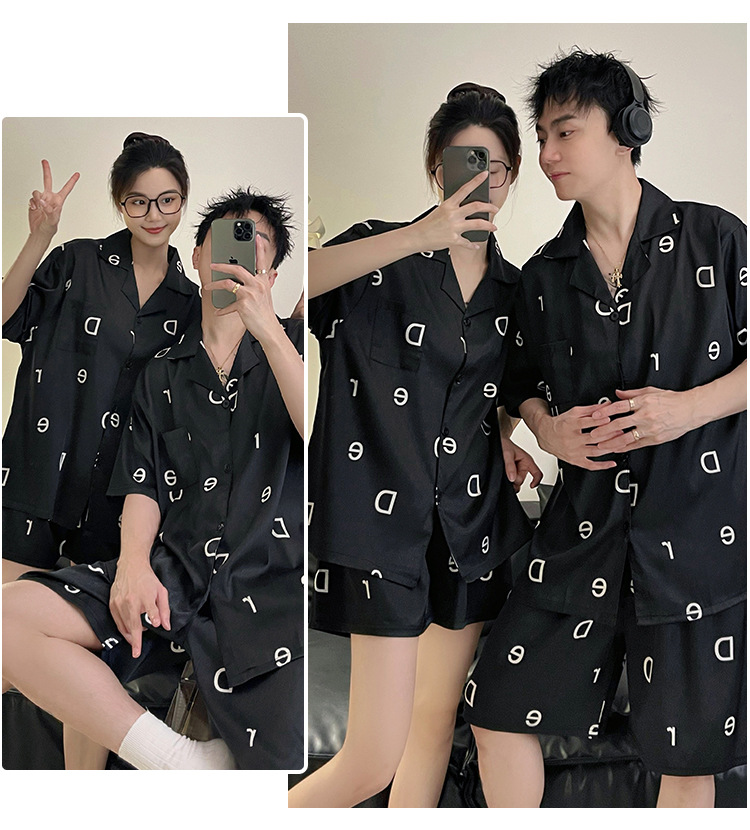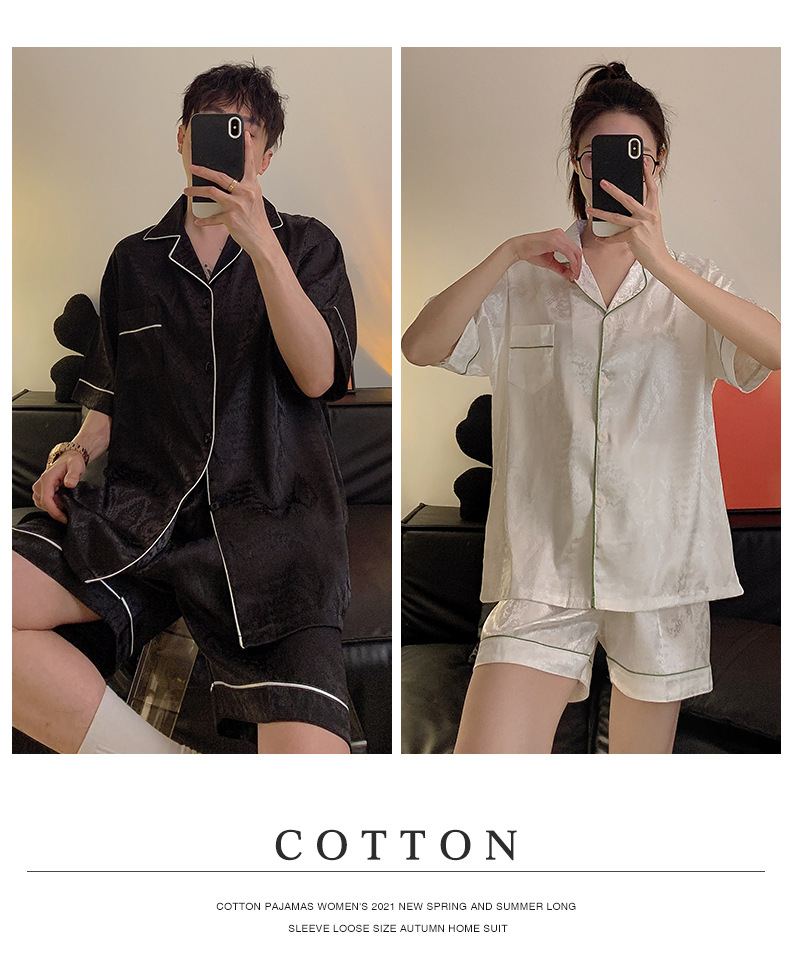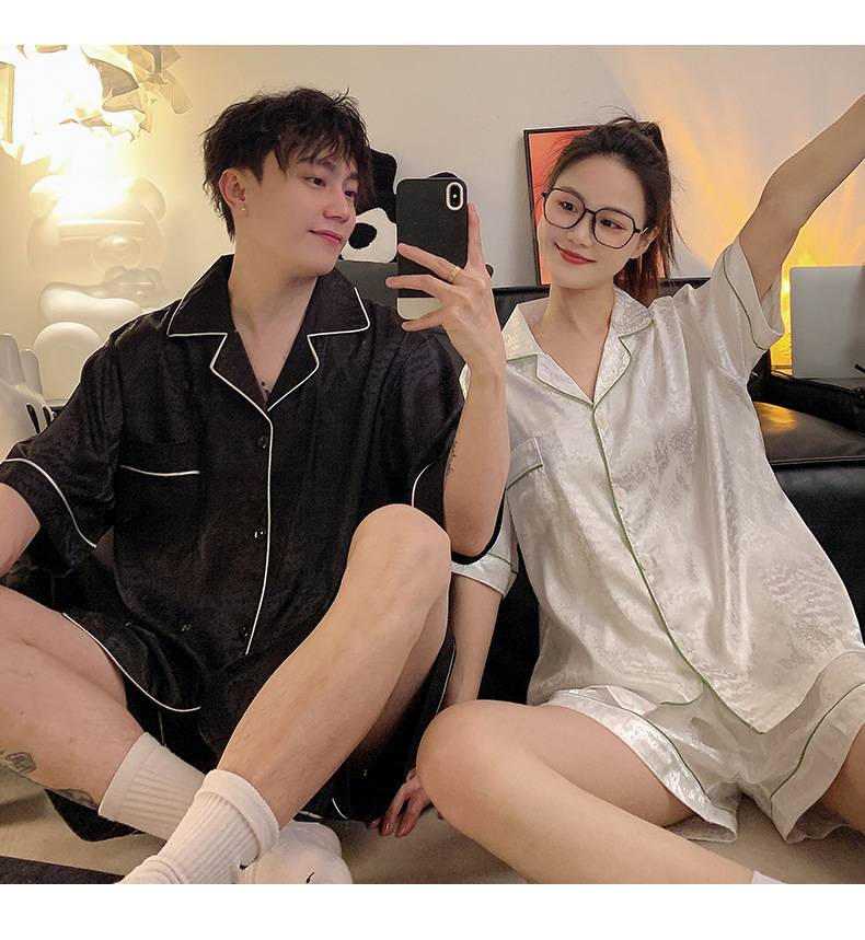 여름 반팔 커플 잠옷 여성 아이스 실크 얇은 남자 플러스 사이즈 엑스 플렉스 자카드 세트스토어 가기