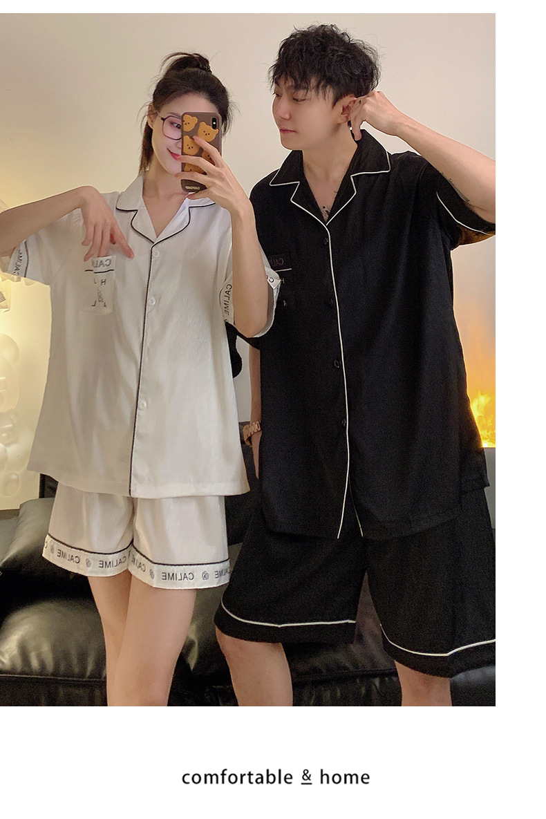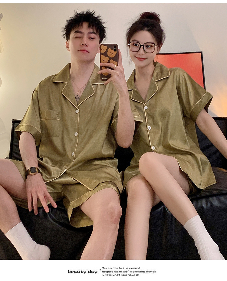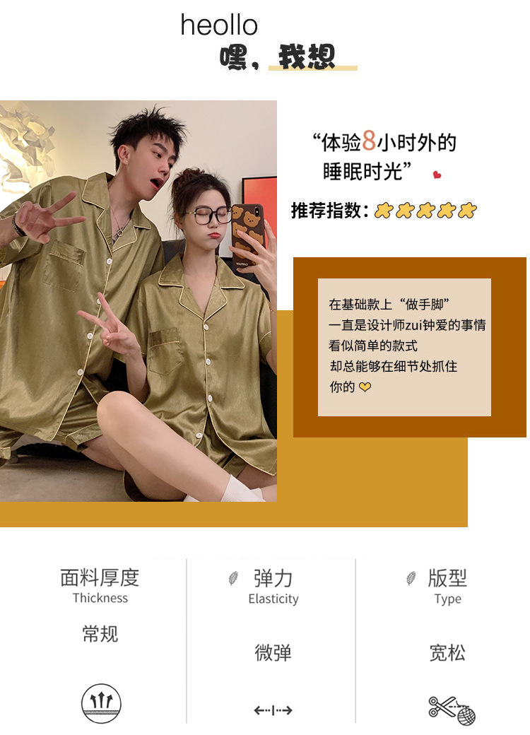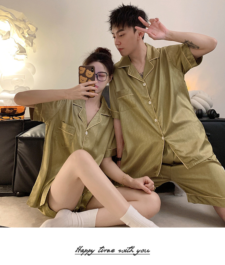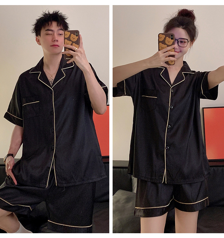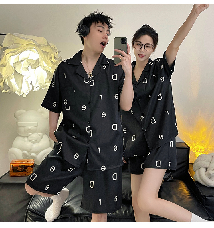 여름 반팔 커플 잠옷 여성 아이스 실크 얇은 남자 플러스 사이즈 엑스 플렉스 자카드 세트스토어 가기