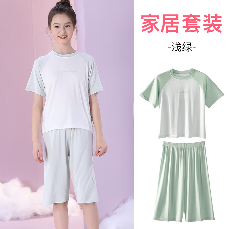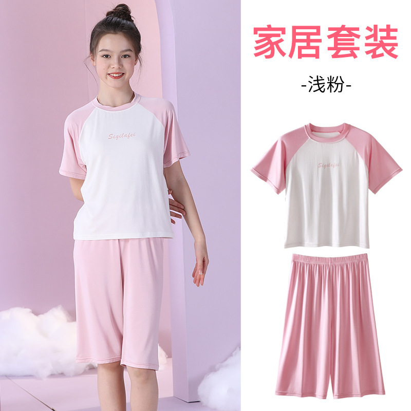어린이 잠옷 세트 여아 홈 의류 반팔 반바지 투피스 세트 여아 기숙사 캐주얼 의류