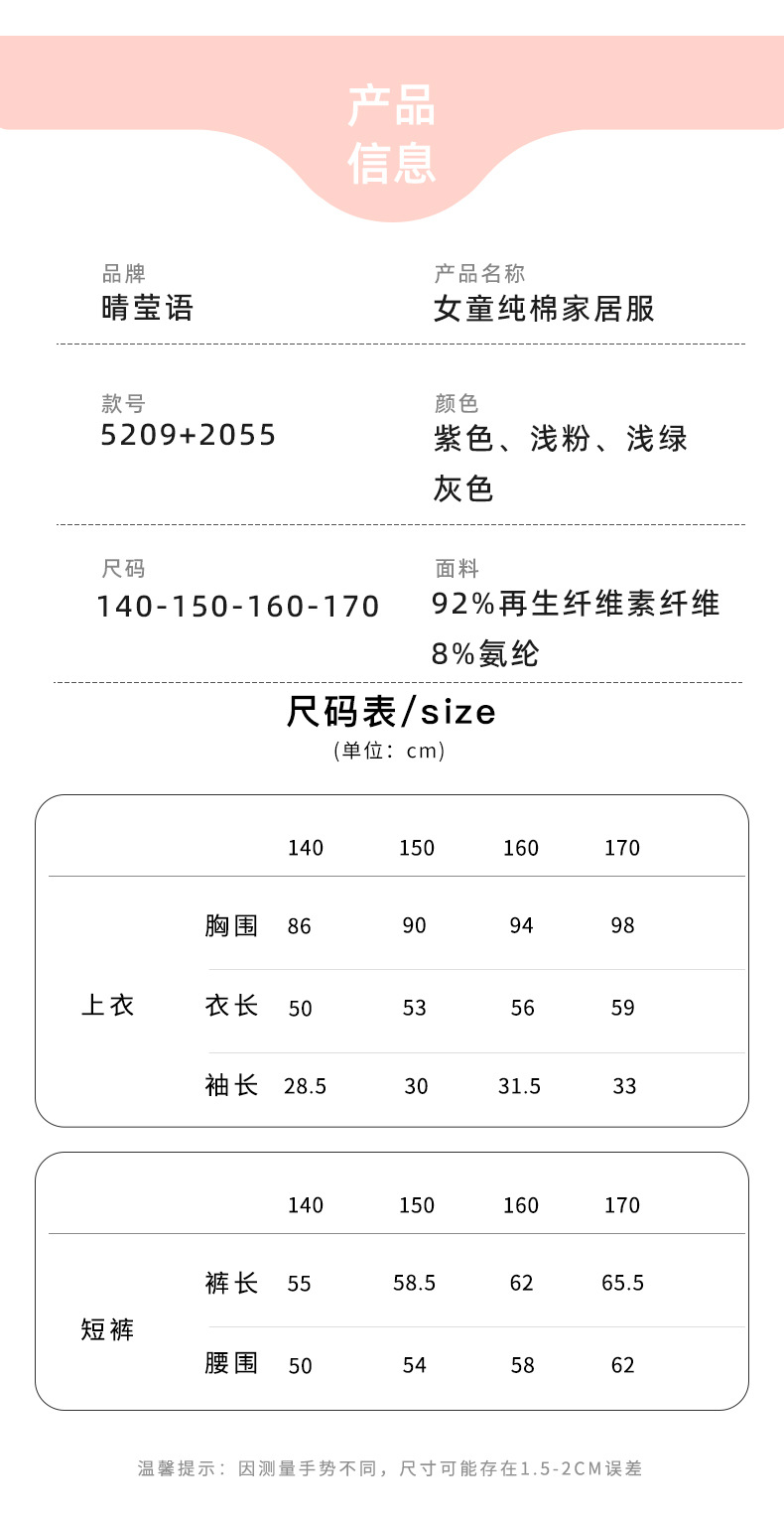 어린이 잠옷 세트 여아 홈 의류 반팔 반바지 투피스 세트 여아 기숙사 캐주얼 의류스토어 가기