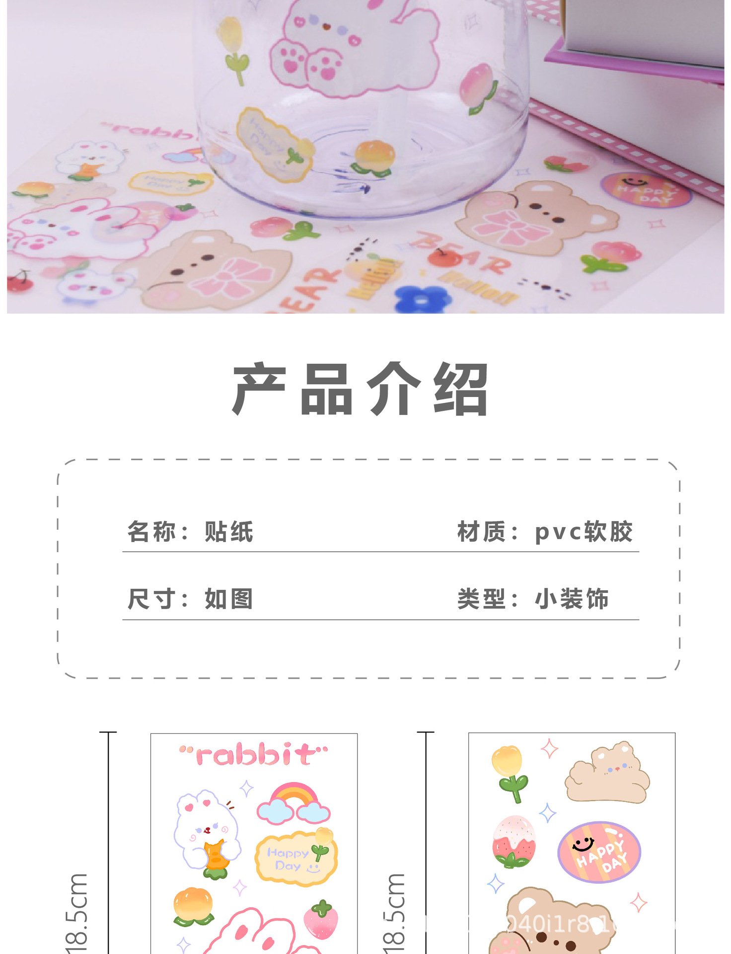 • (8.5x18.5) 투명한 스티커 토끼
