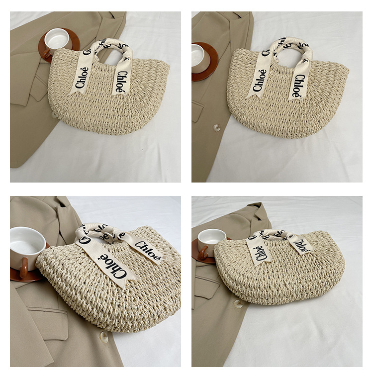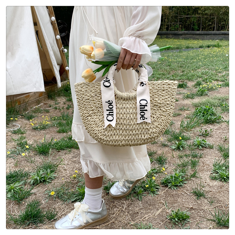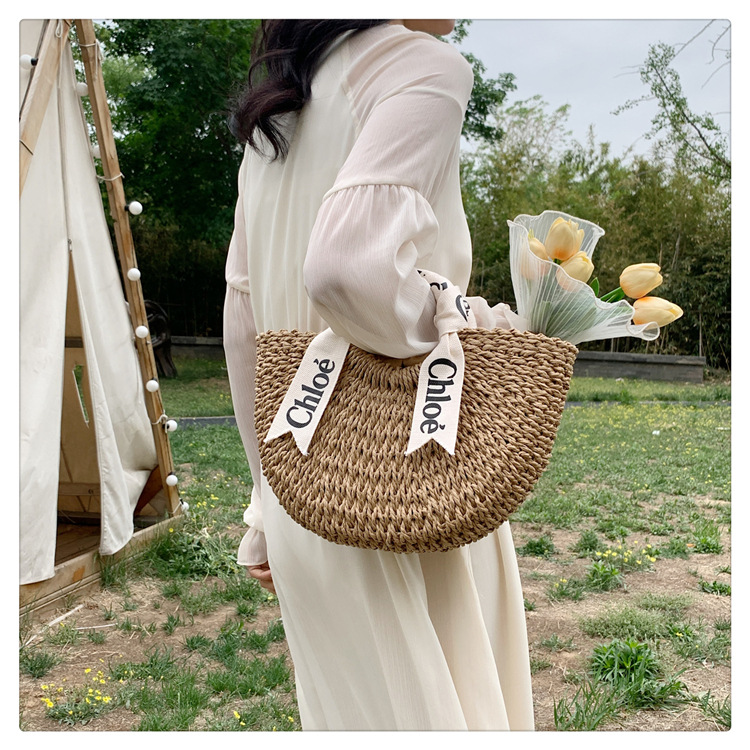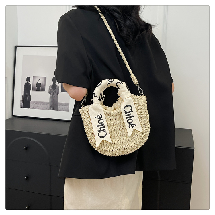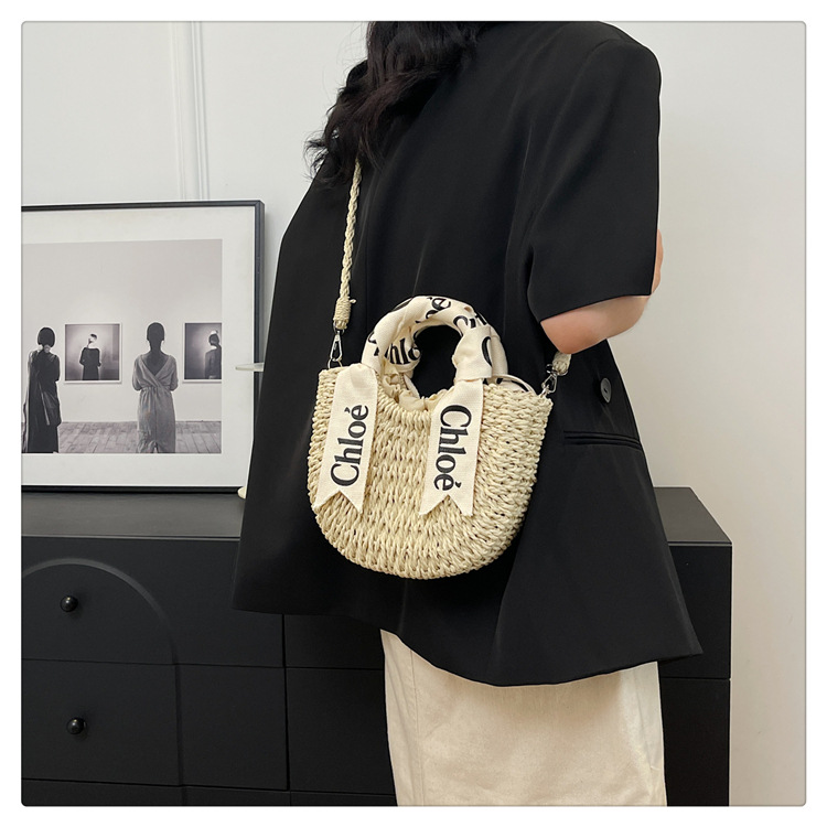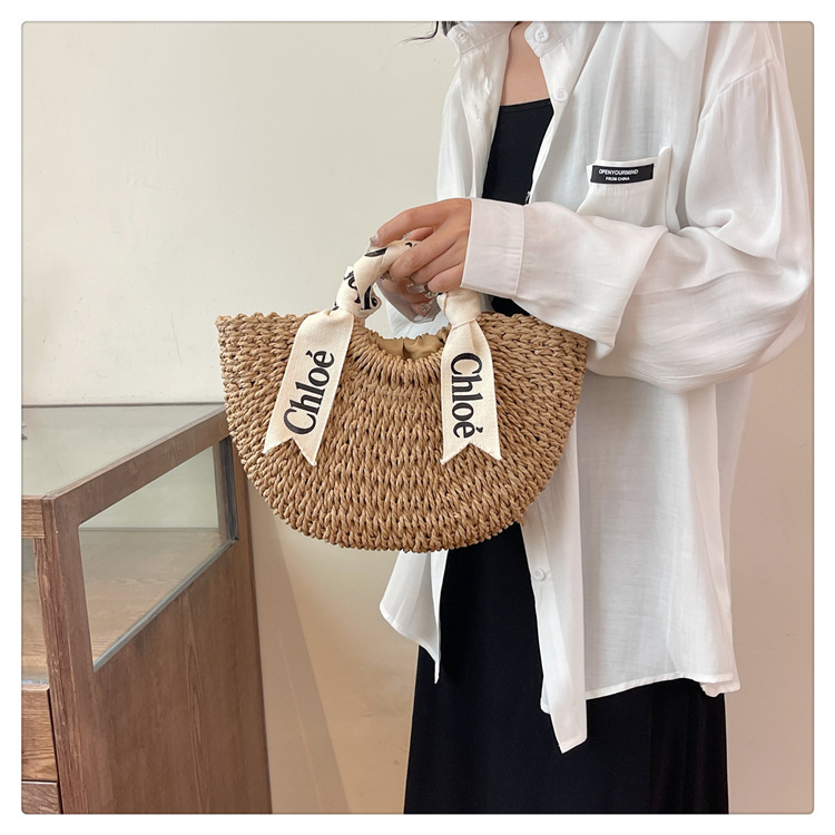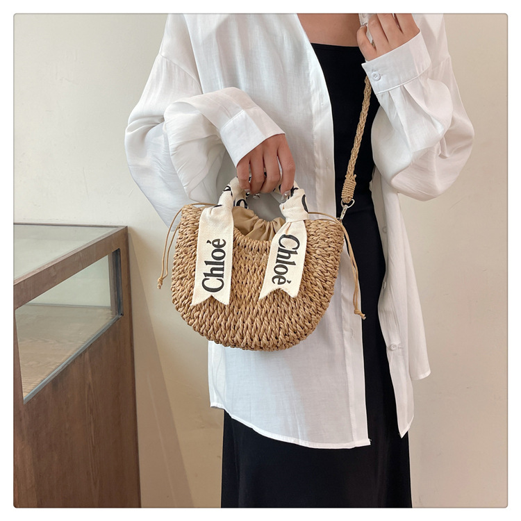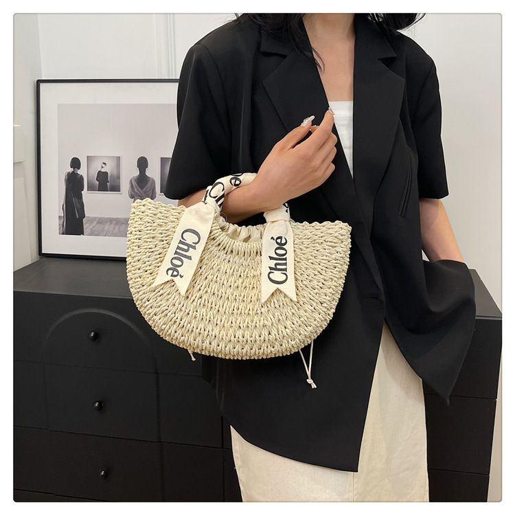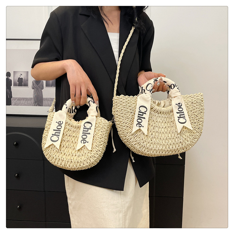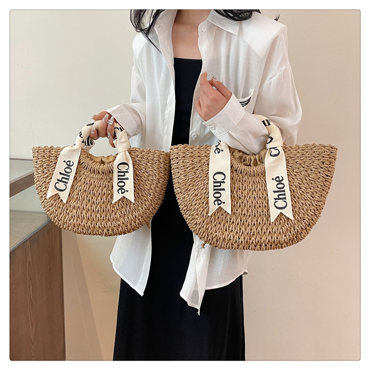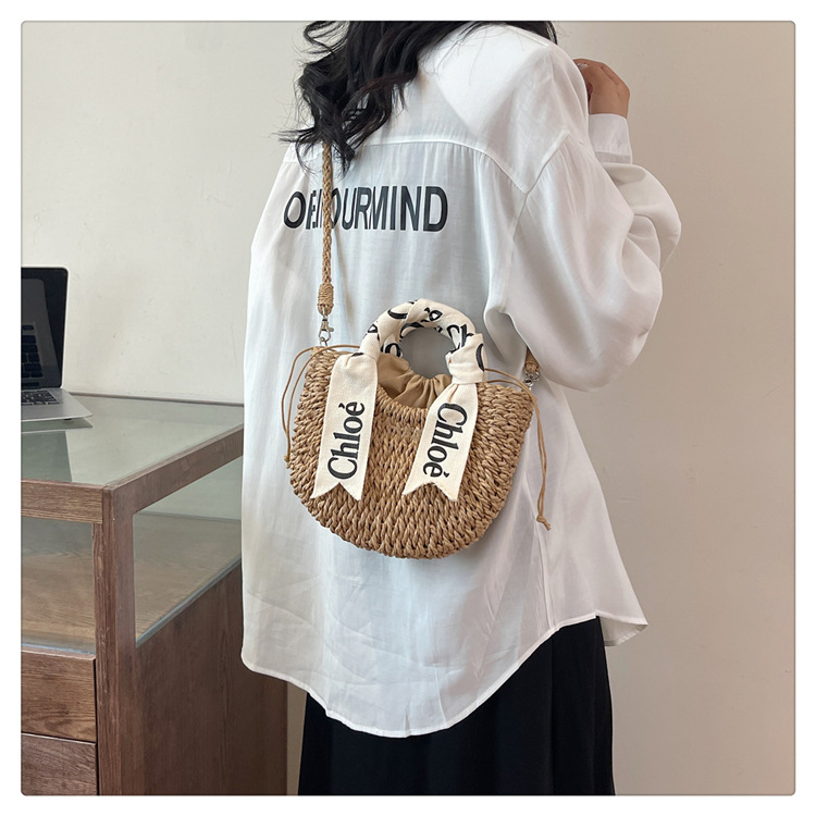 여름 짠 가방 여성 틈새 디자인 반원형 밀짚 짠 가방 캐주얼 홀리데이 비치 백 여성 휴대용 크로스 바디 백스토어 가기