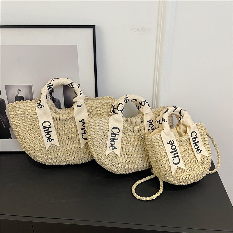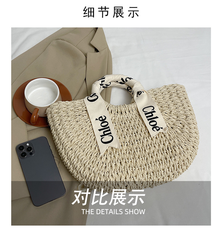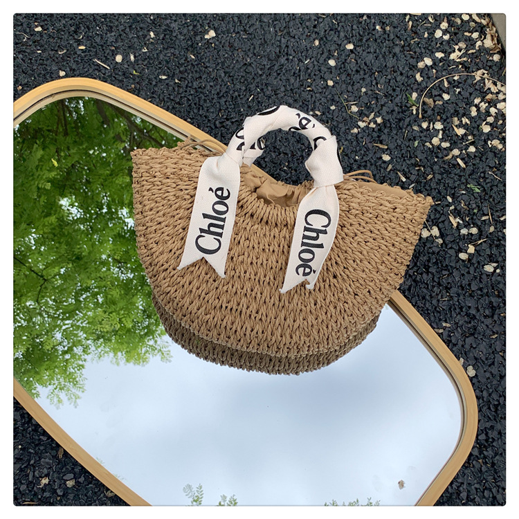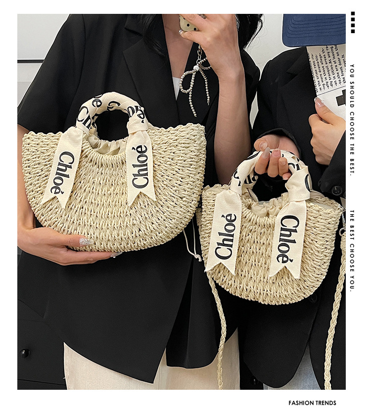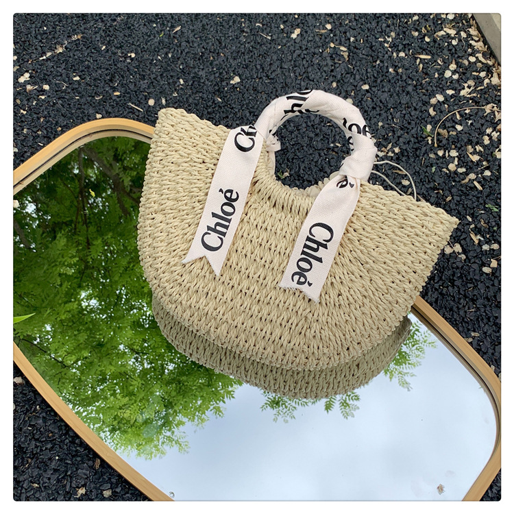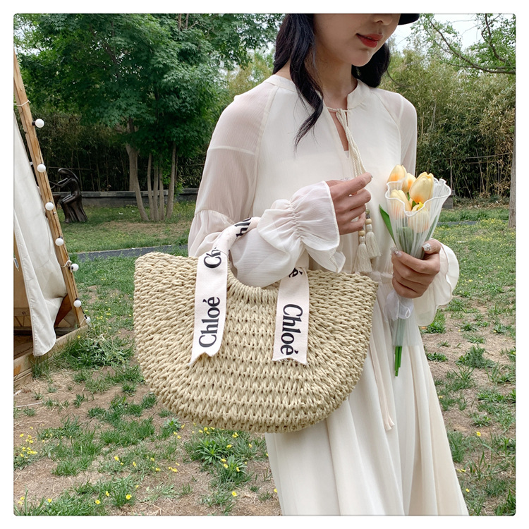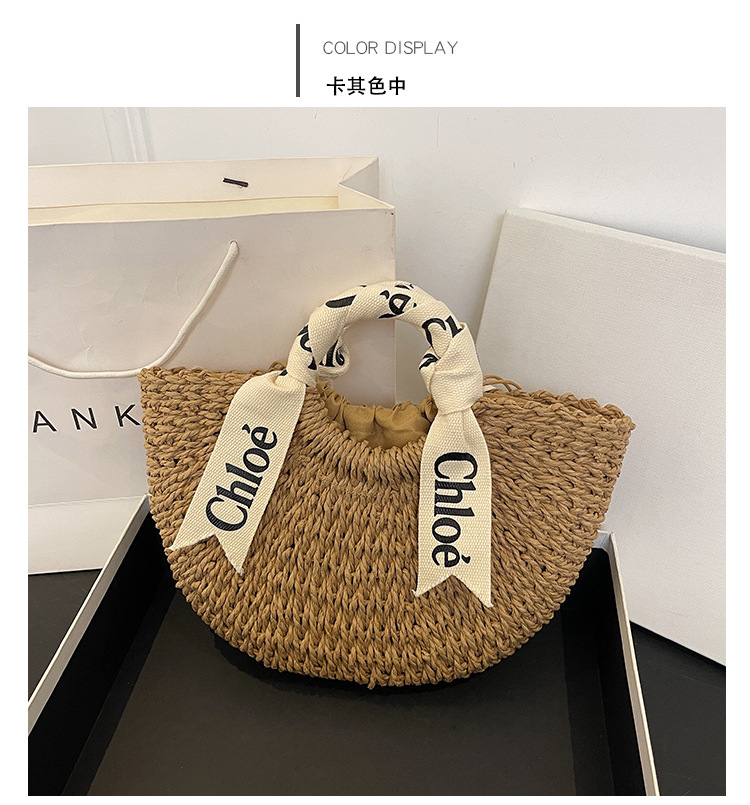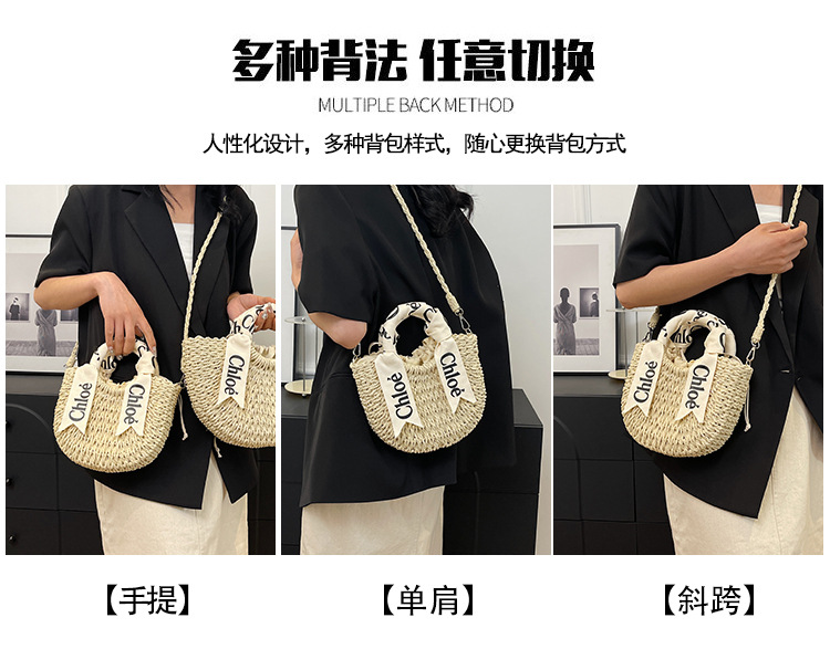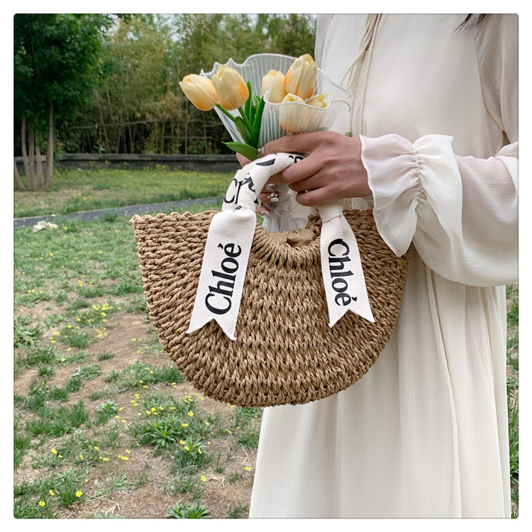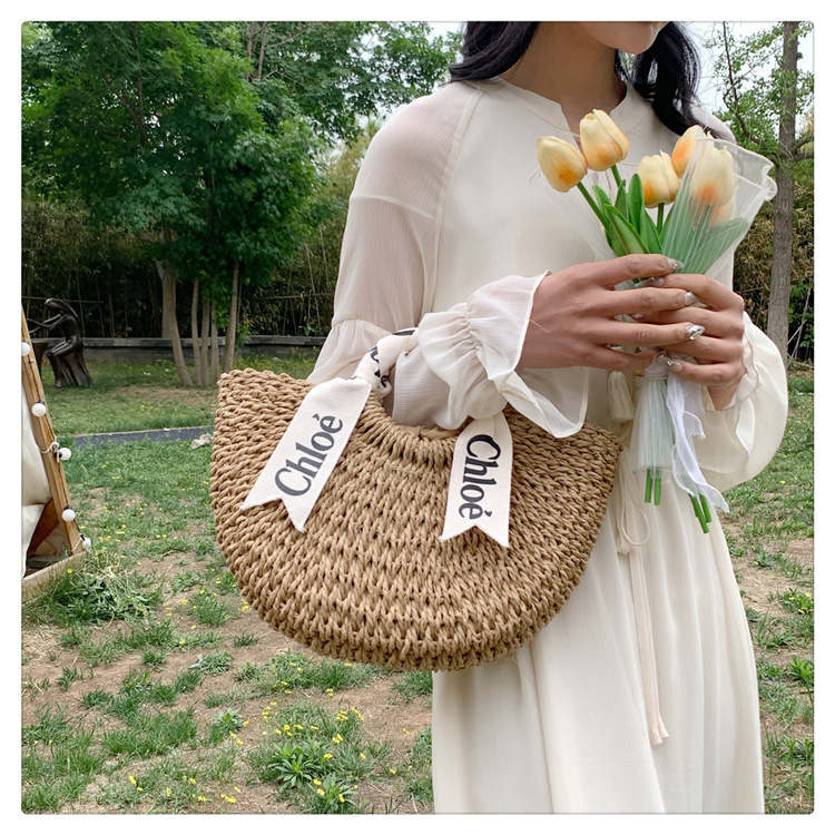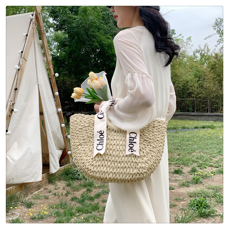 여름 짠 가방 여성 틈새 디자인 반원형 밀짚 짠 가방 캐주얼 홀리데이 비치 백 여성 휴대용 크로스 바디 백스토어 가기