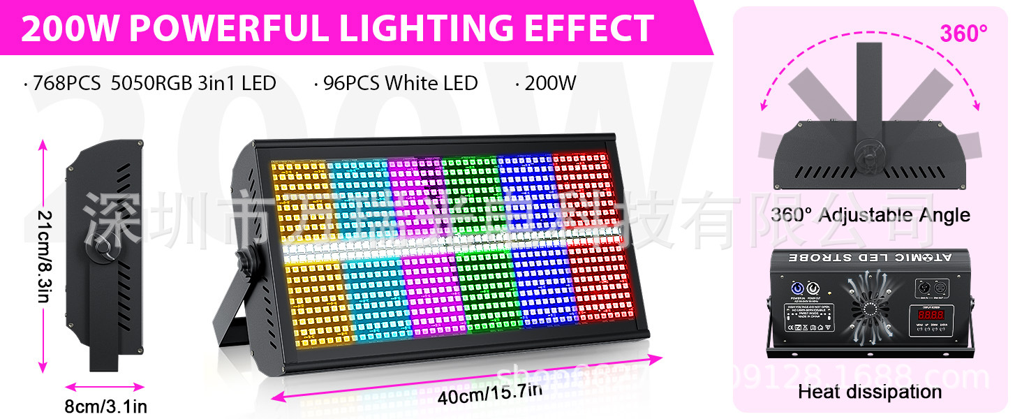 풀 컬러 스트로브 라이트 8 8 세그먼트 1000W 디지털 알파벳 LED 무대 플래시 KTV 바 개인실 디스코 DJ 파티스토어 가기