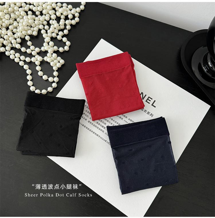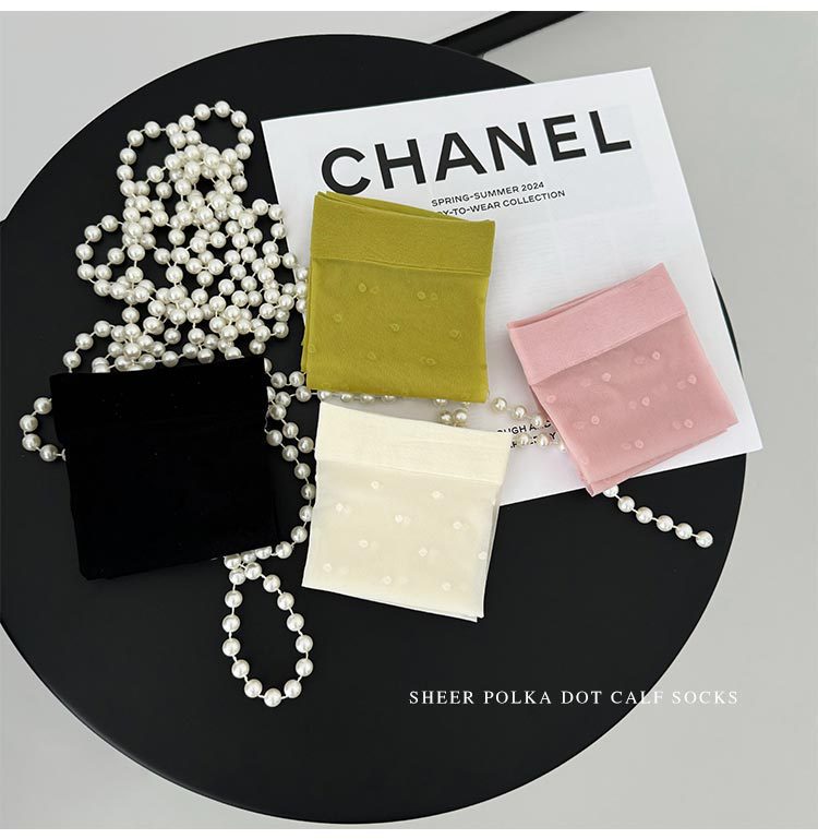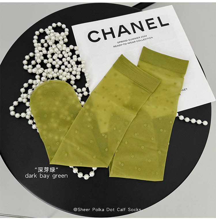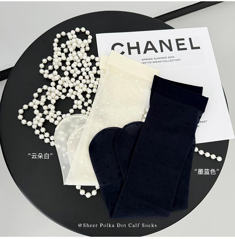Zhuji 양말 잡지 바람 2024 봄과 여름 새로운 얇은 웨이브 포인트 무릎 종아리 스타킹 여성 도매스토어 가기