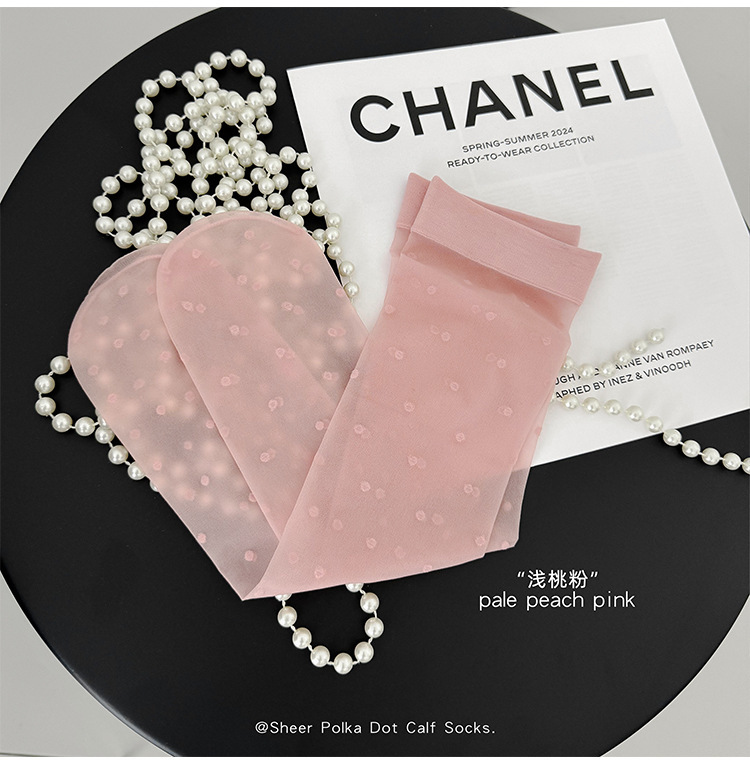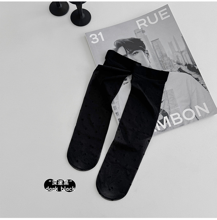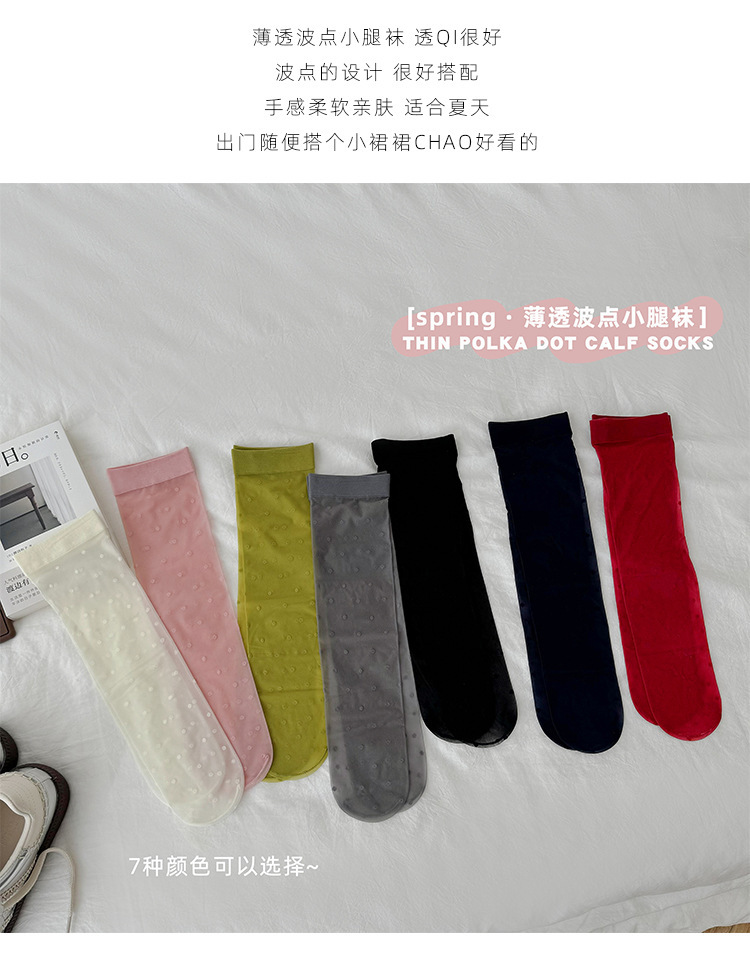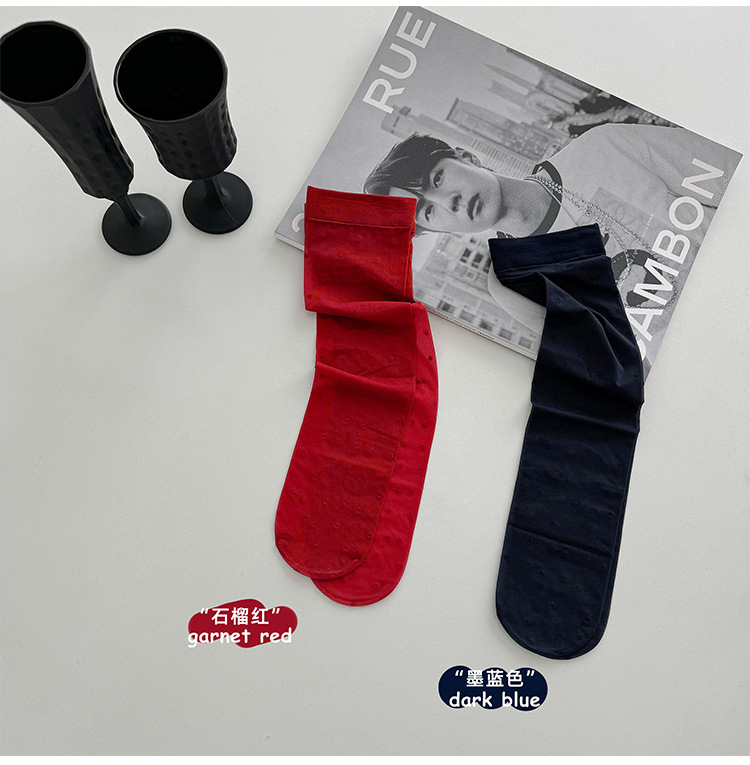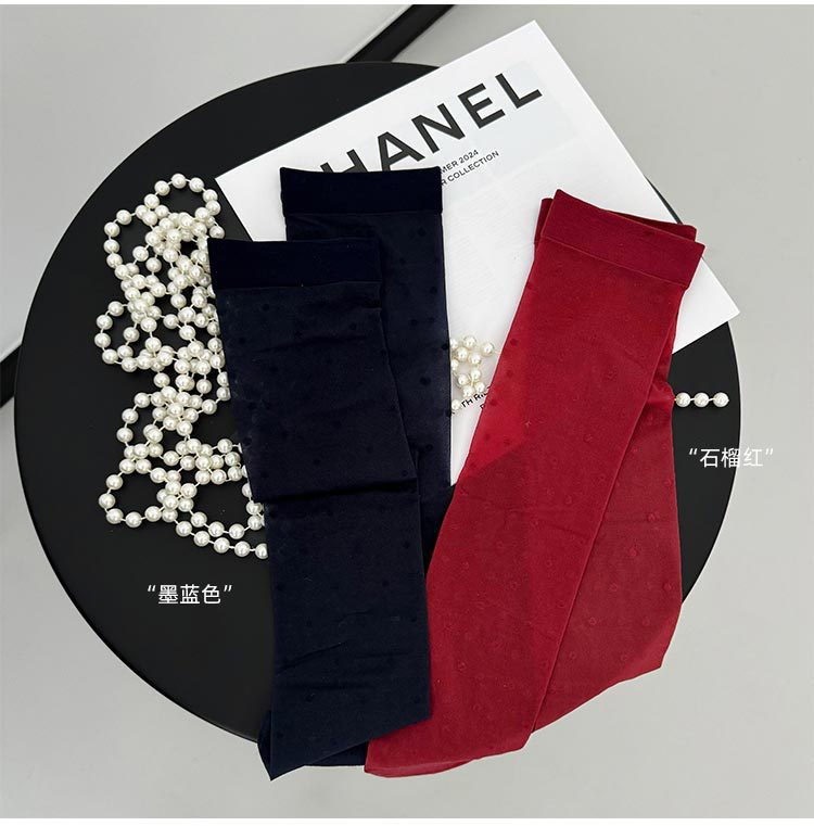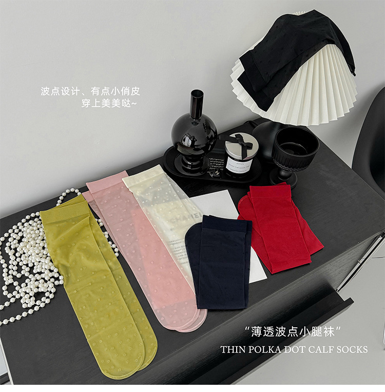 Zhuji 양말 잡지 바람 2024 봄과 여름 새로운 얇은 웨이브 포인트 무릎 종아리 스타킹 여성 도매