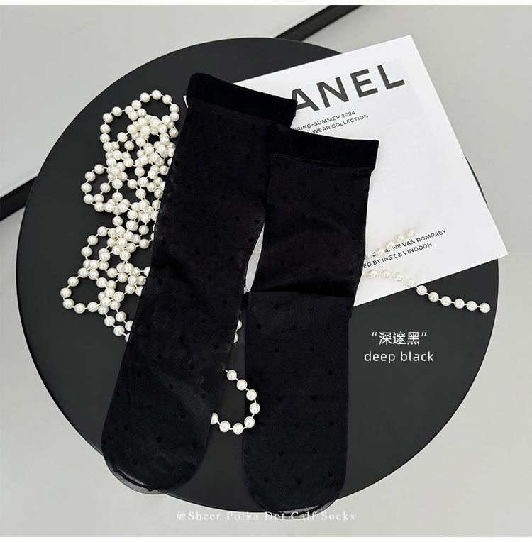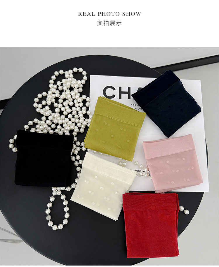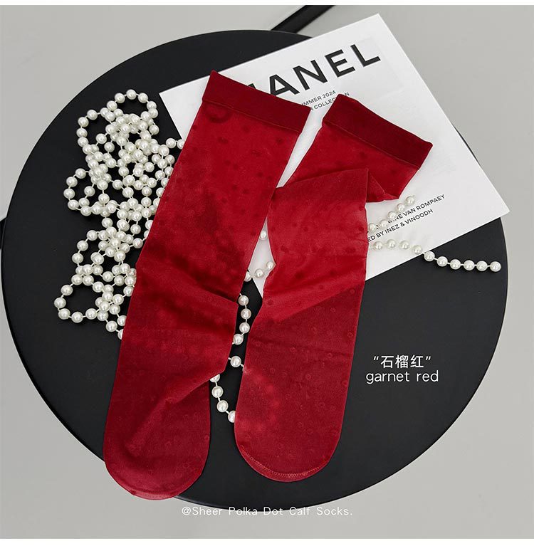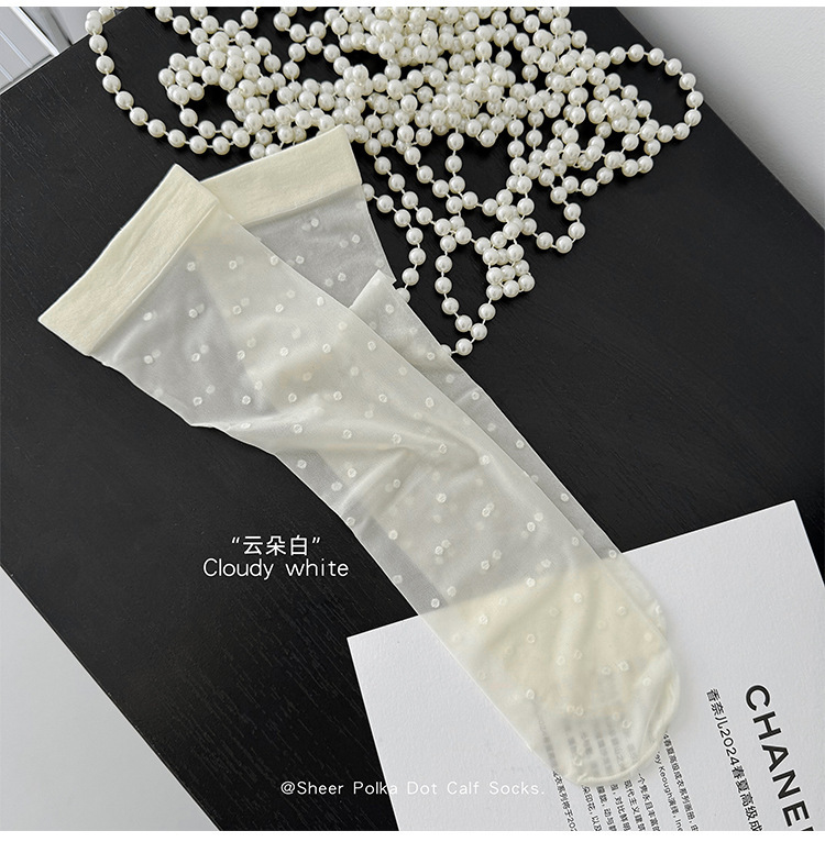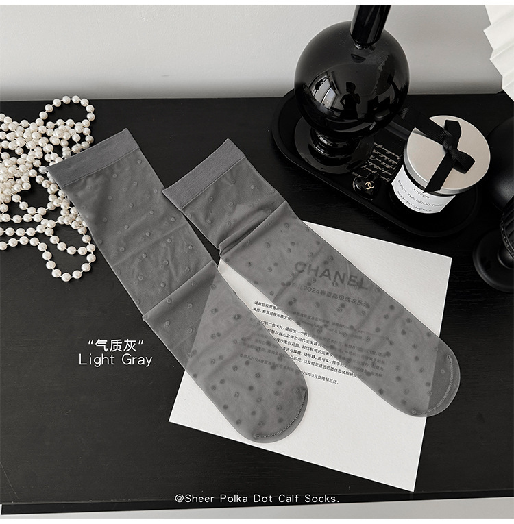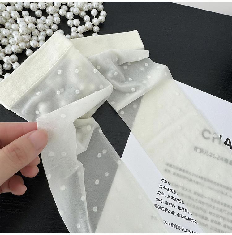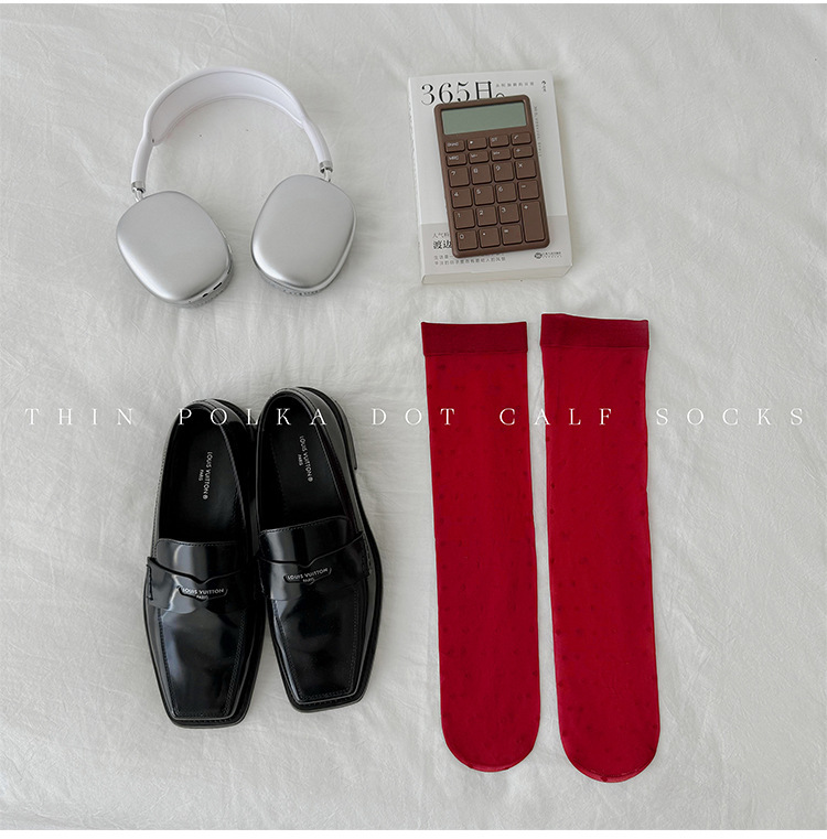 Zhuji 양말 잡지 바람 2024 봄과 여름 새로운 얇은 웨이브 포인트 무릎 종아리 스타킹 여성 도매