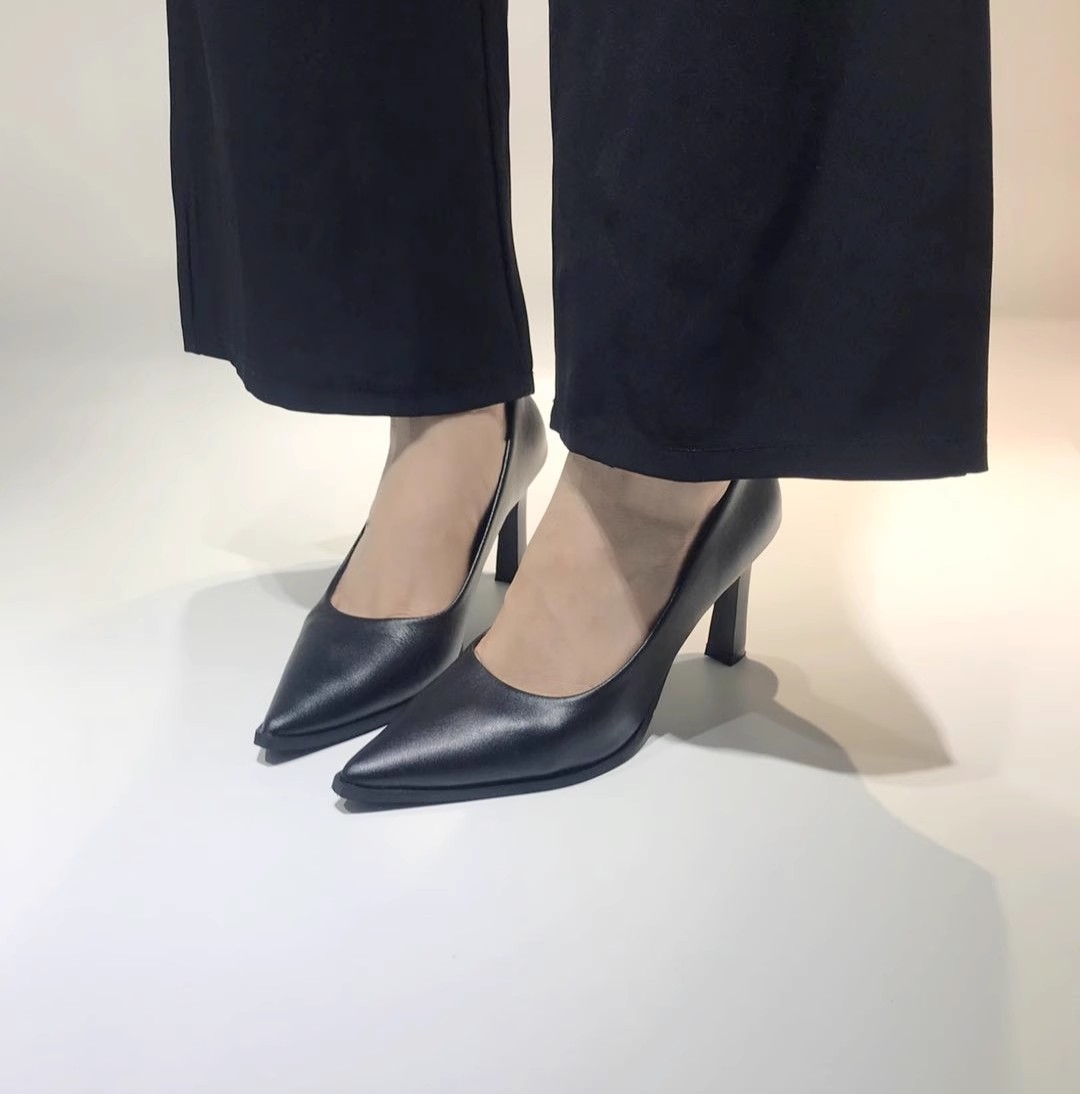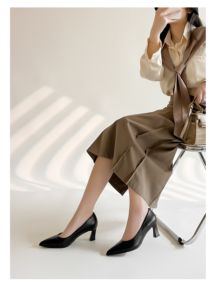 작업 신발 여성 블랙 전문 기질 긴 역 부드러운 바닥 편안한 작업 신발 부드러운 가죽 피곤하지 않은 하이힐 스튜어디스 호텔