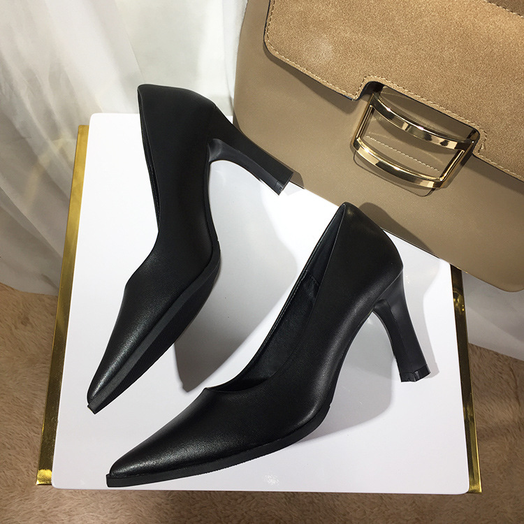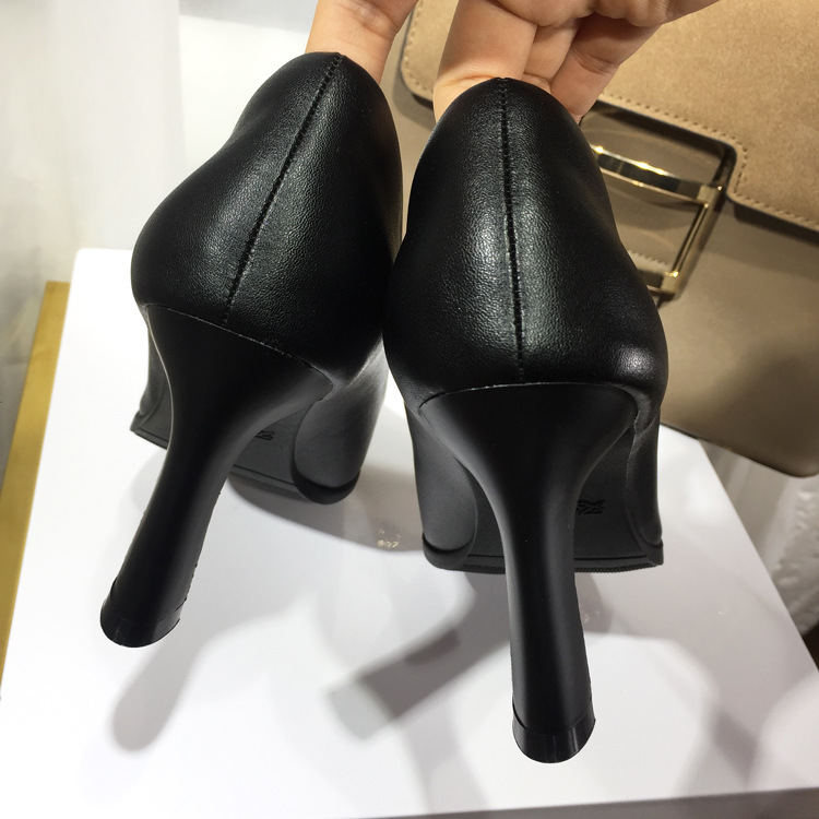 작업 신발 여성 블랙 전문 기질 긴 역 부드러운 바닥 편안한 작업 신발 부드러운 가죽 피곤하지 않은 하이힐 스튜어디스 호텔스토어 가기
