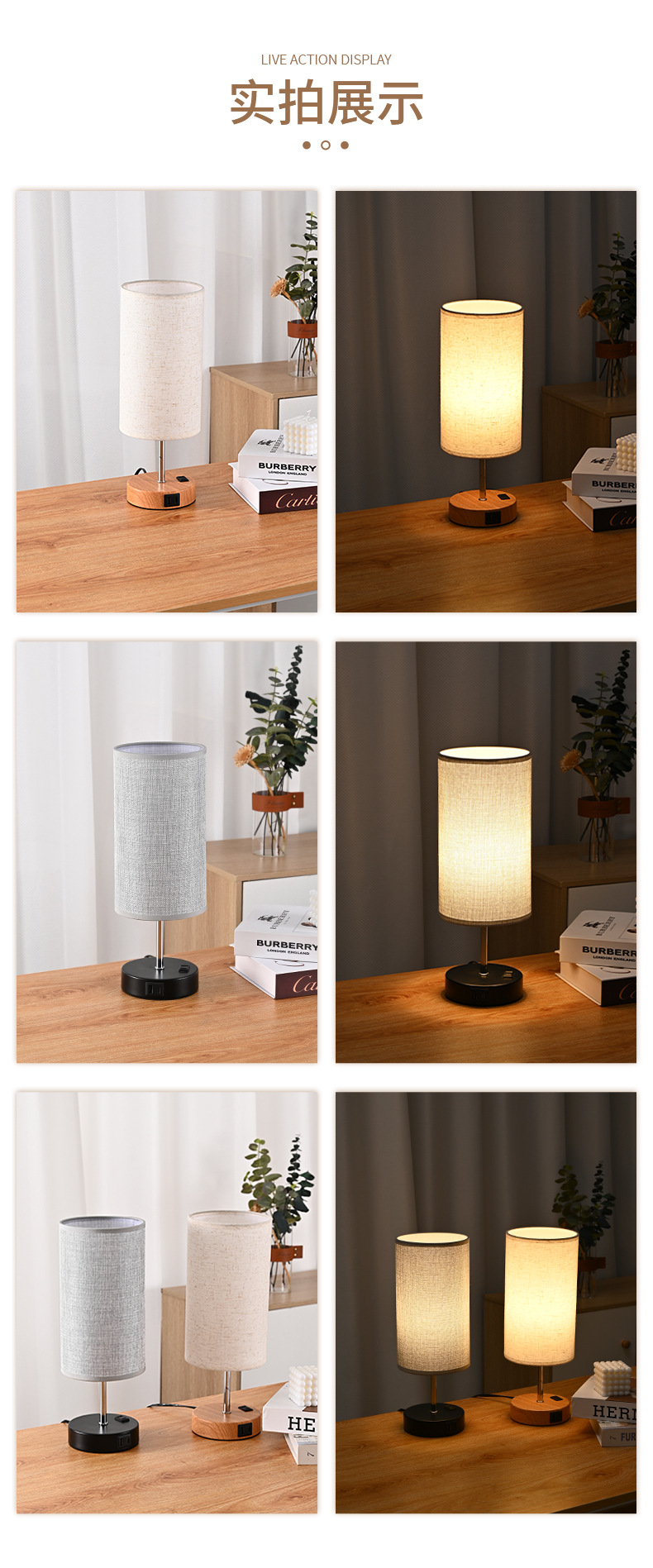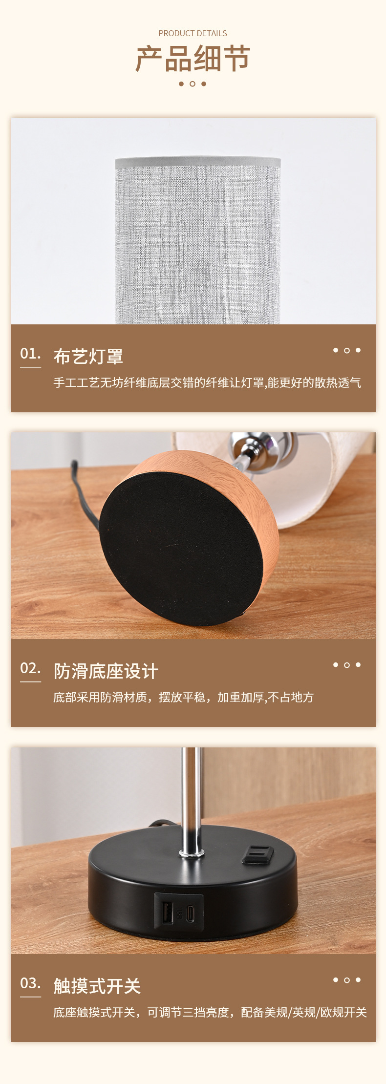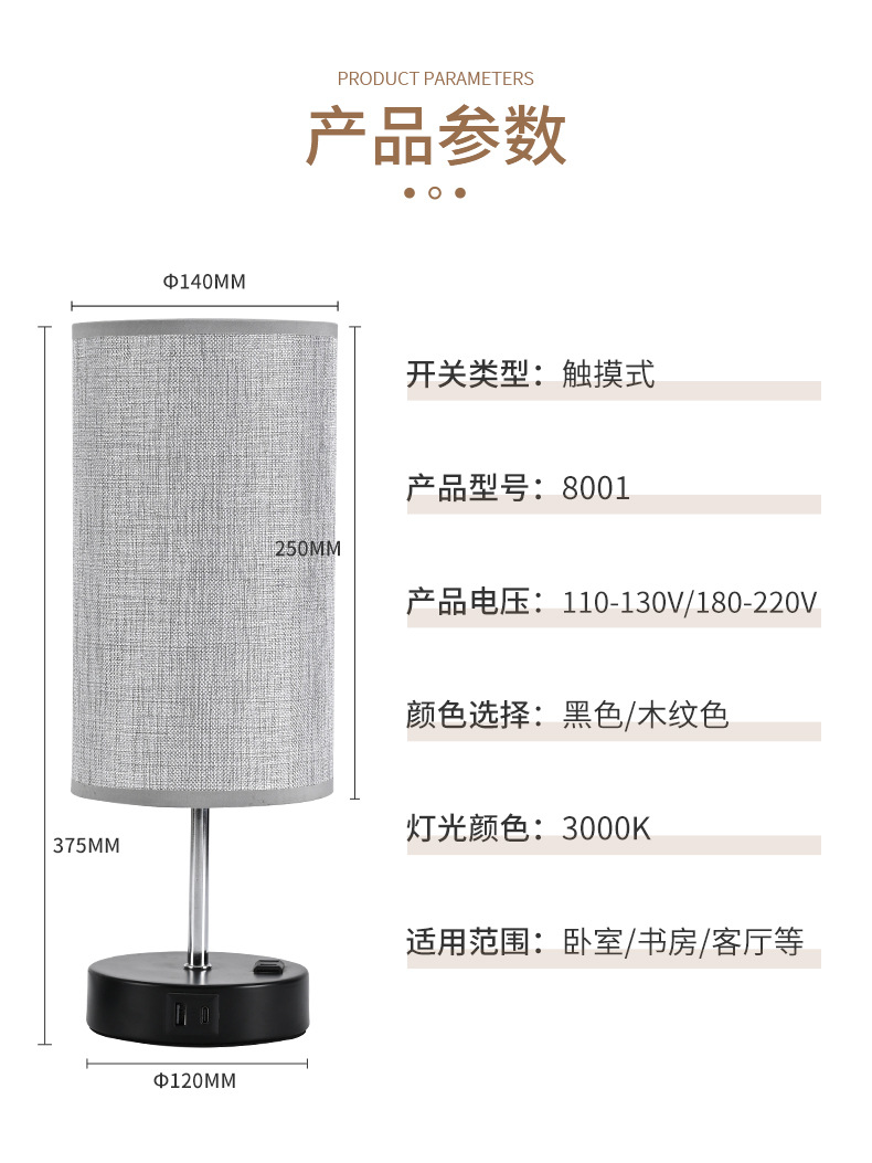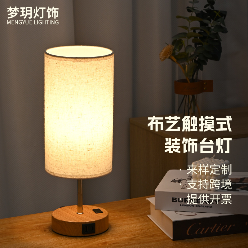국경 간 터치 테이블 램프 USB 충전식 테이블 램프 LED 트라이 컬러 트리플리스 디밍 침실 침대 옆 램프 패브릭 장식 램프