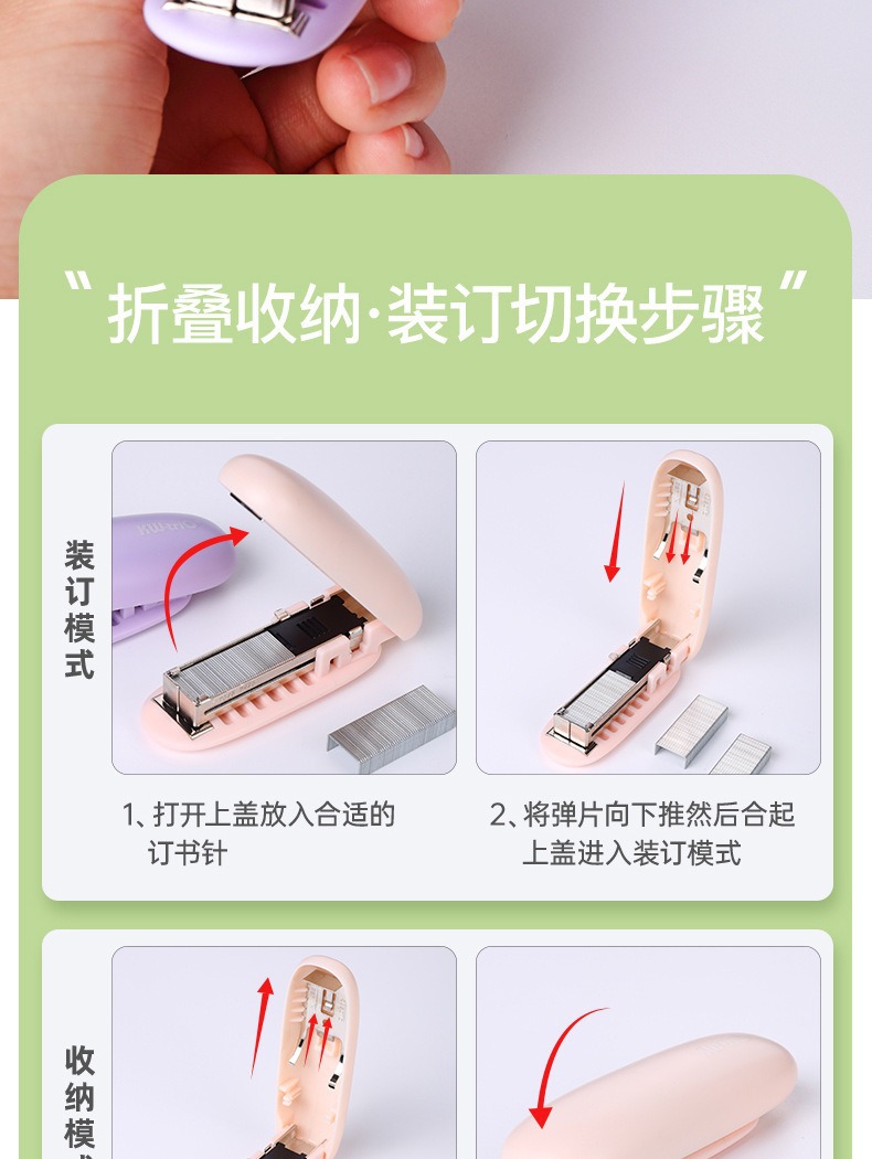 우수한 접이식 휴대용 12 스테이플 스테이플러 노동 절약 내구성 학습 사무실 스테이플러 미니 바인딩 머신스토어 가기