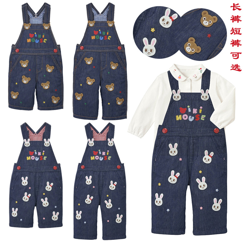卡通小熊小兔立体刺绣背带裤