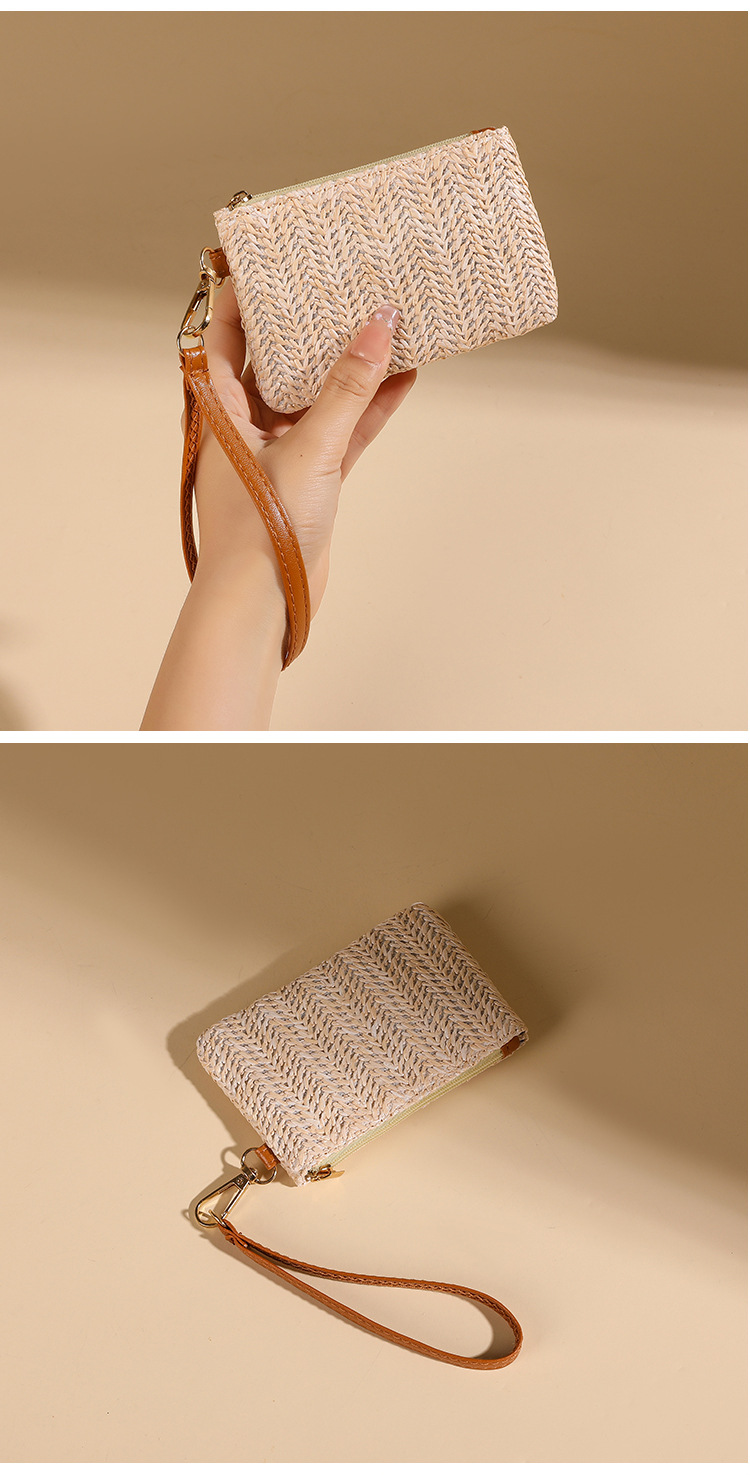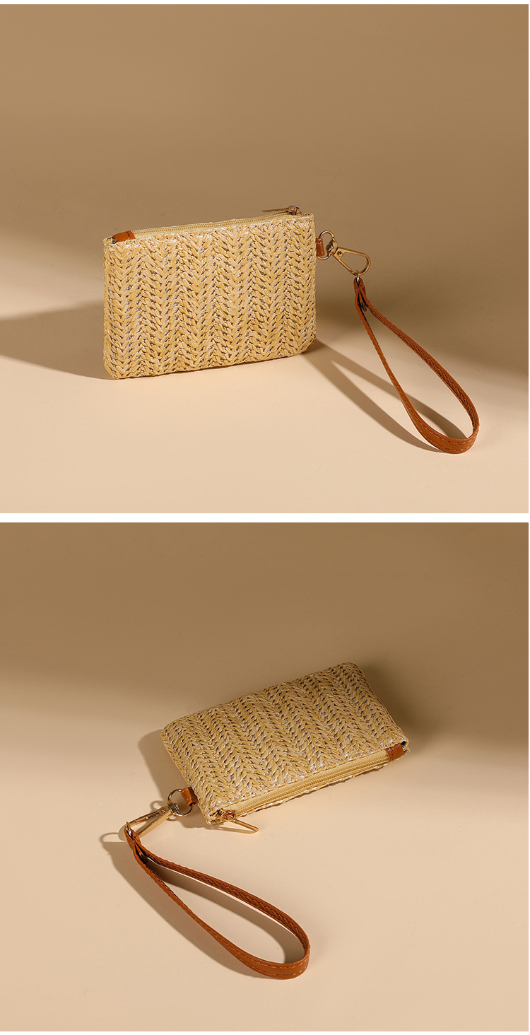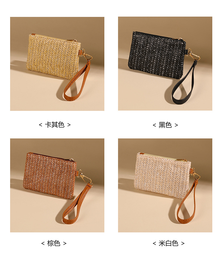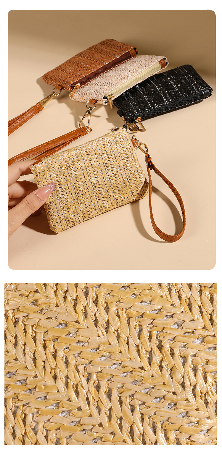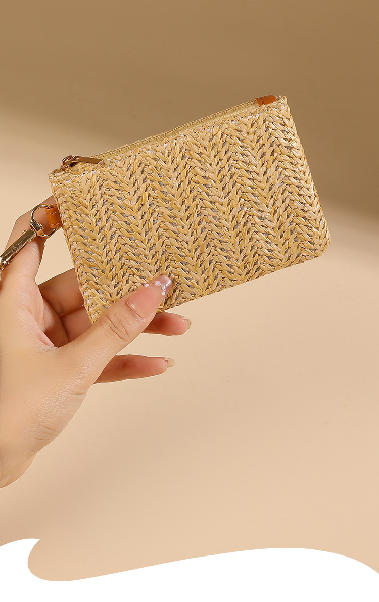 여름용 레트로 스타일 인조 밀짚 동전 지갑 여성용 탈부착 가능한 손목 스트랩 통기성 초경량 카드 및 동전 수납 가방스토어 가기