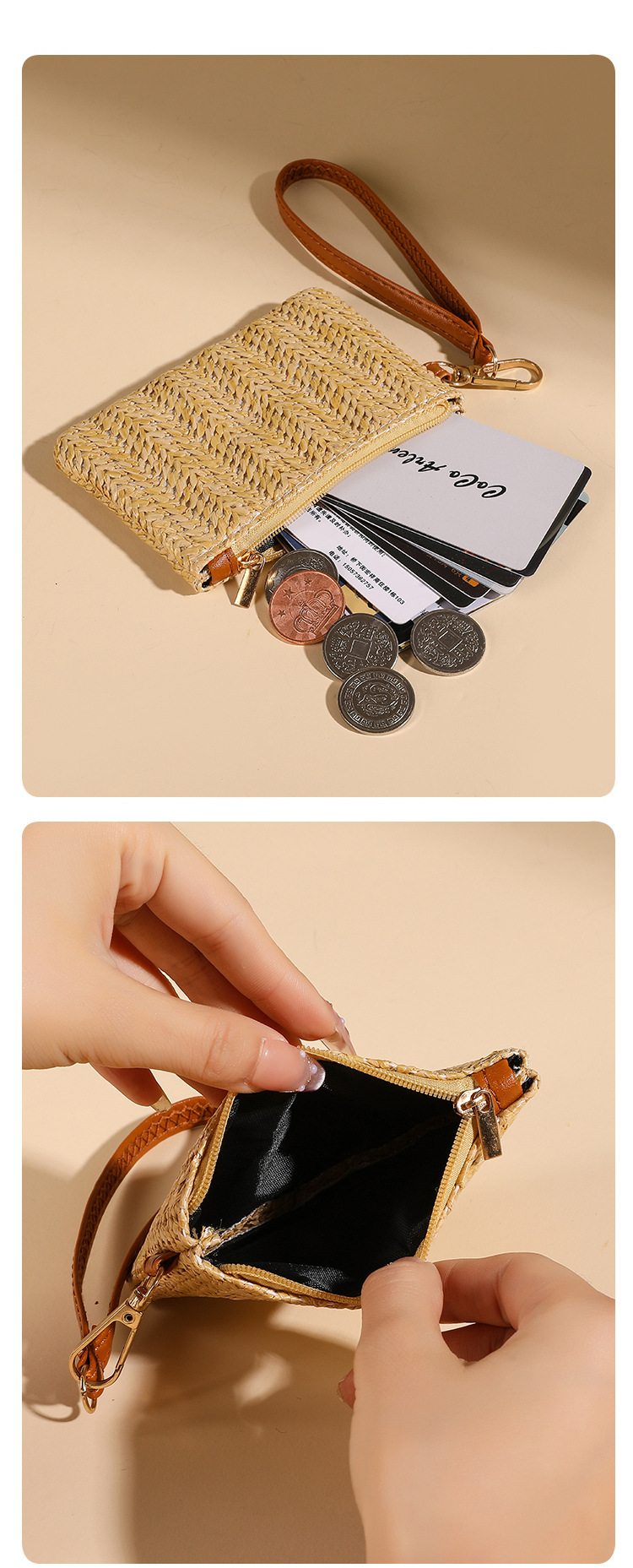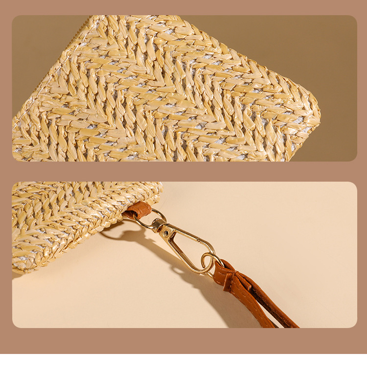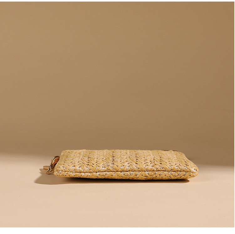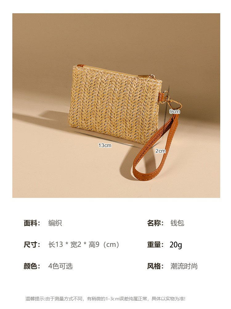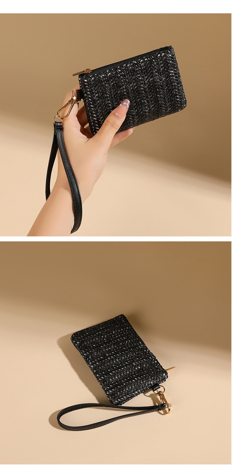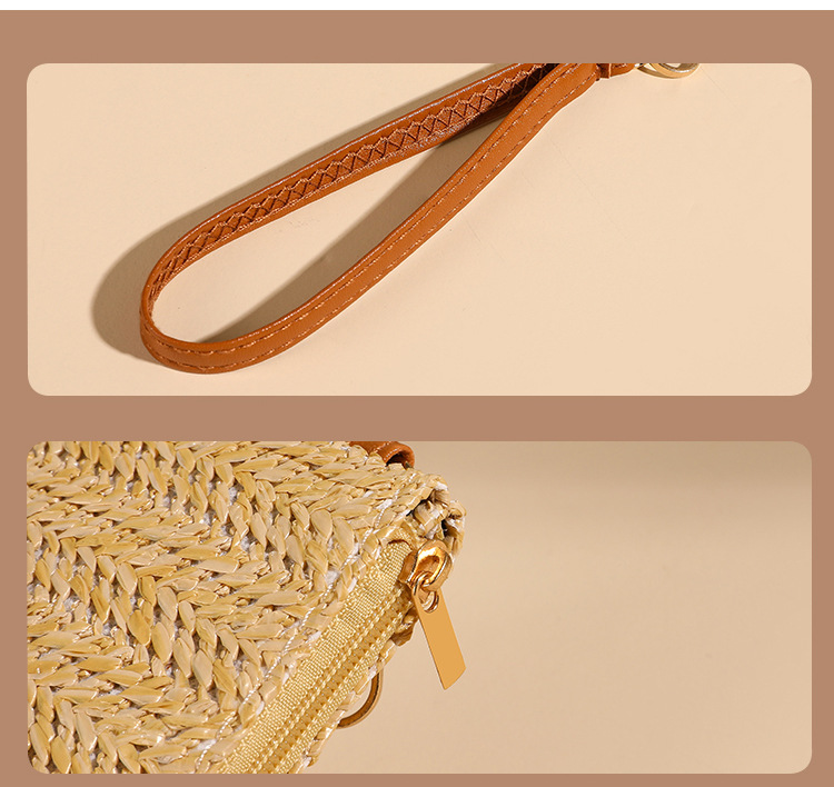 여름용 레트로 스타일 인조 밀짚 동전 지갑 여성용 탈부착 가능한 손목 스트랩 통기성 초경량 카드 및 동전 수납 가방스토어 가기