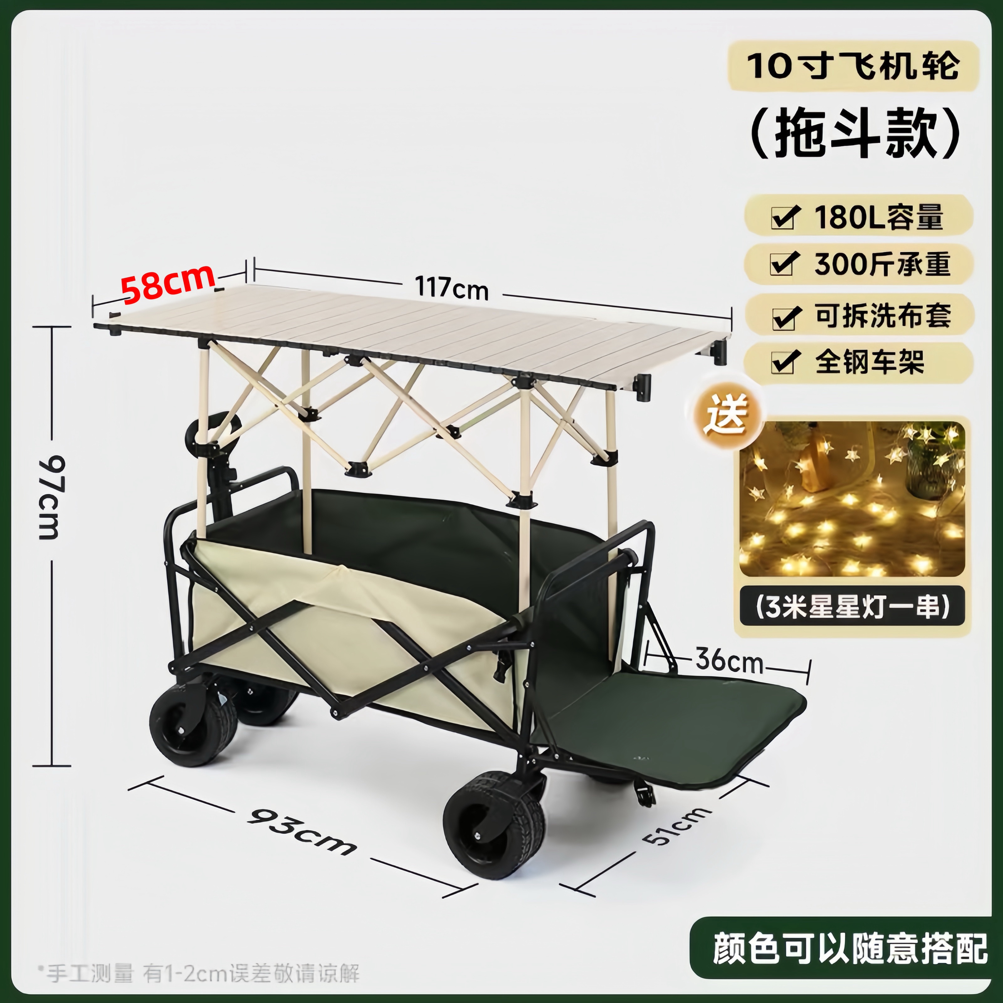• 10inch 항공기 바퀴 - 트레일러 버킷 포함(120리터 확장 테이블) 베이지 블랙 자동차 + 베이지 창고 +