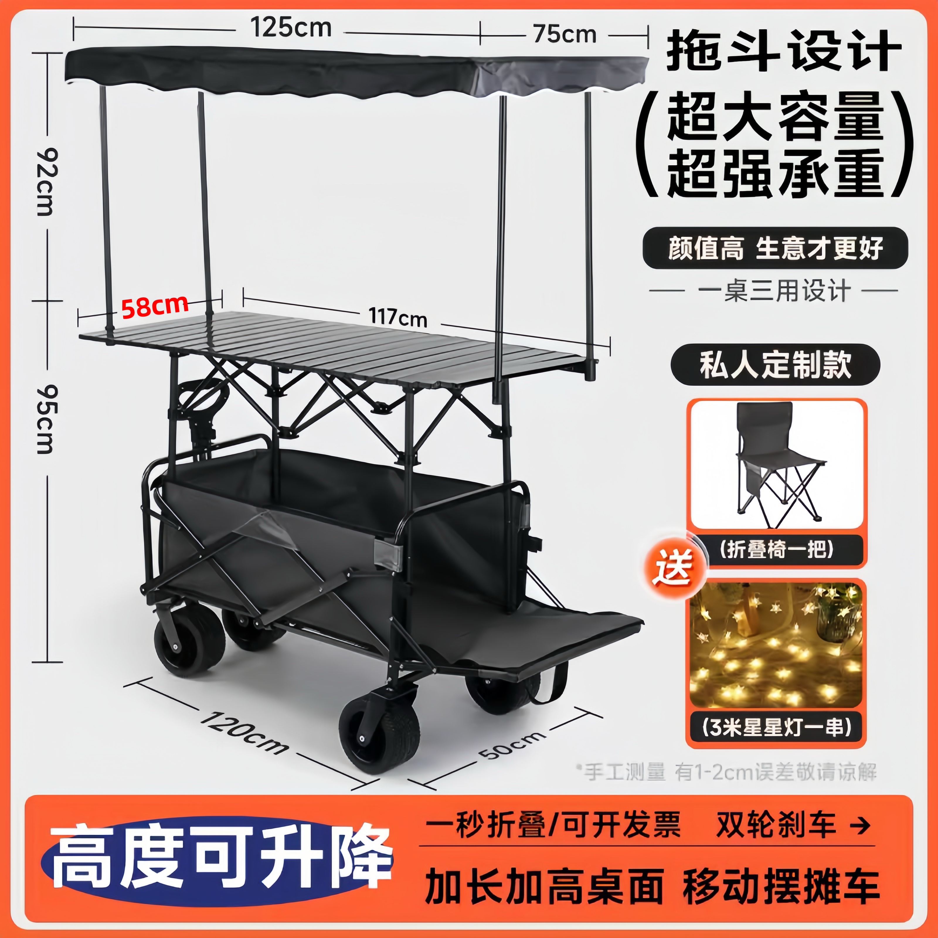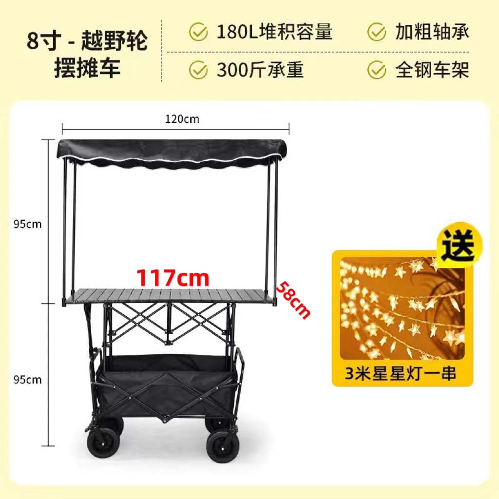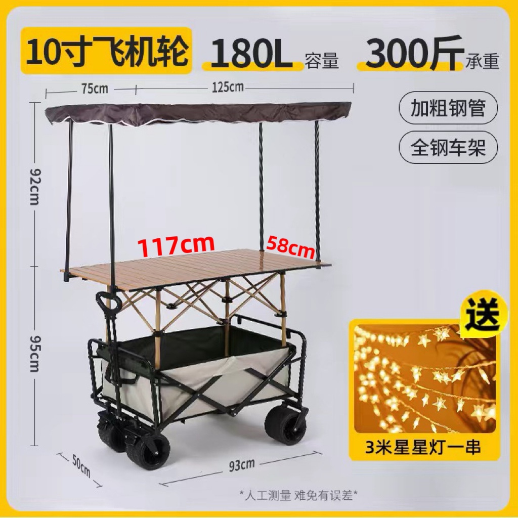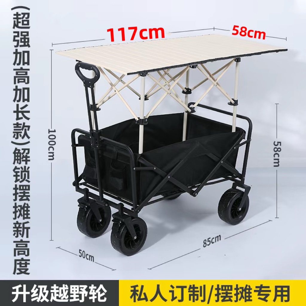 야외 캠프 트레일러 캠핑을 위한 캐노피가 있는 트롤리 리프팅 테이블 캐노피가 있는 접이식 트롤리스토어 가기