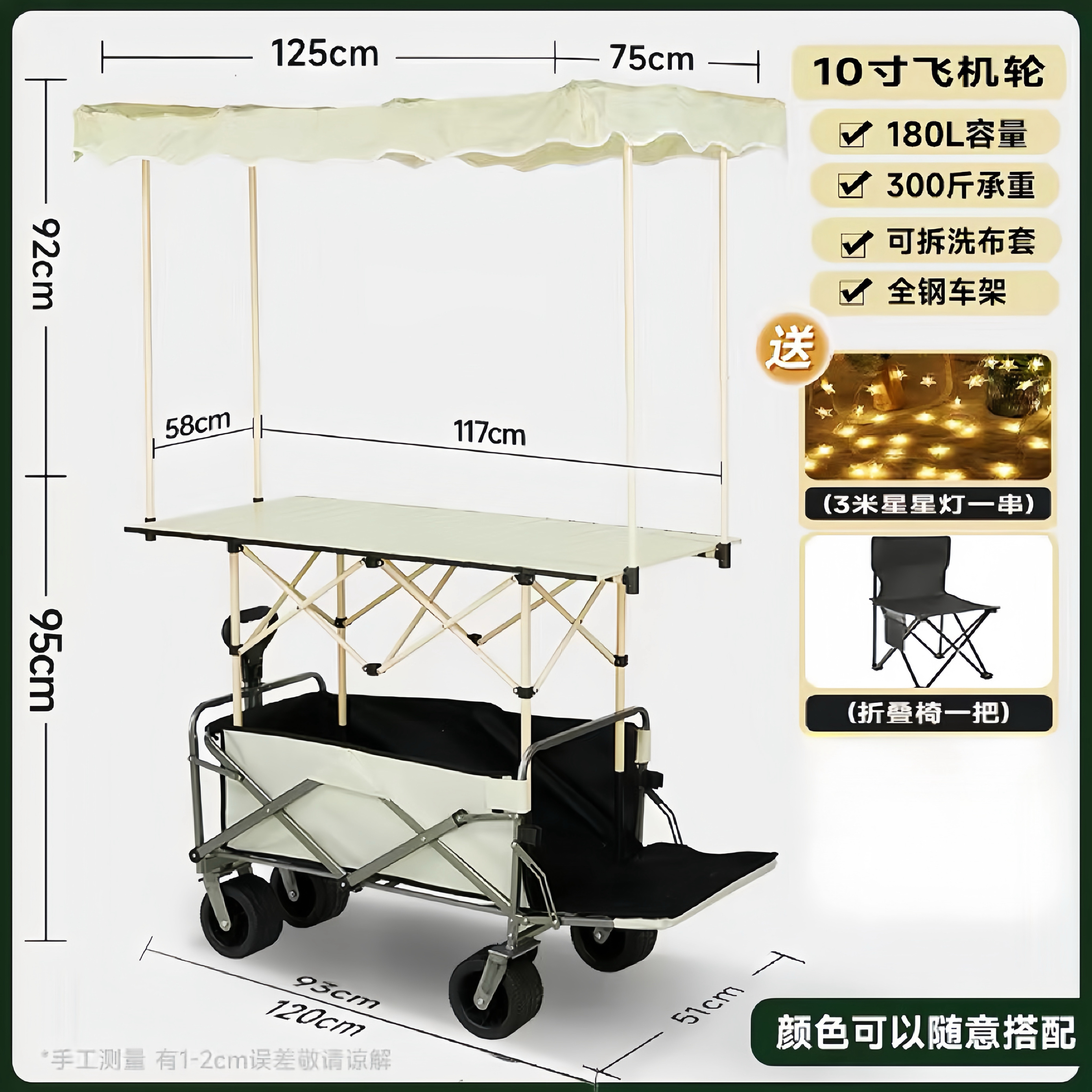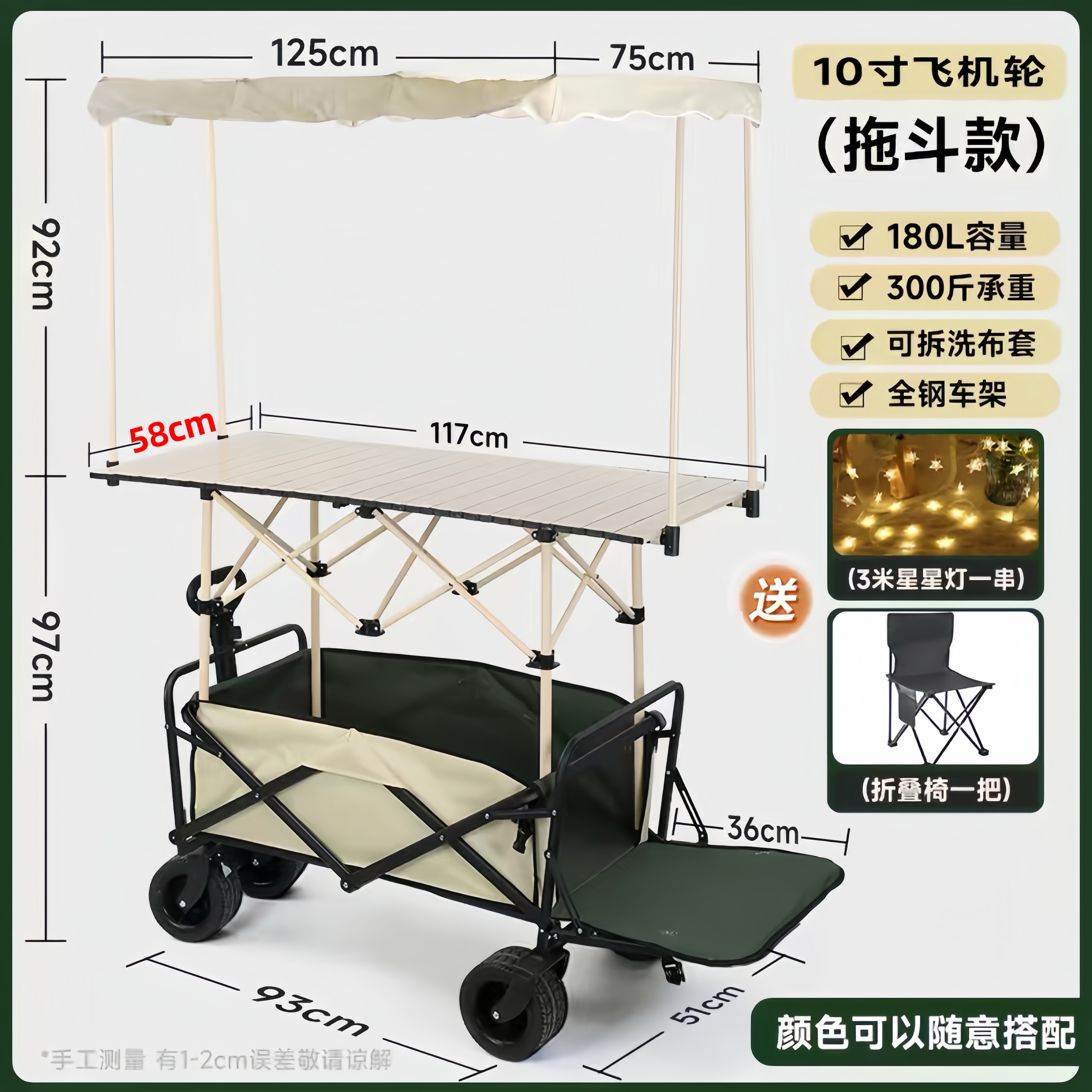 • 10inch 항공기 바퀴 - 견인 버킷 포함(120리터 확장 테이블) 베이지색 자동차 + 베이지색 창고 +