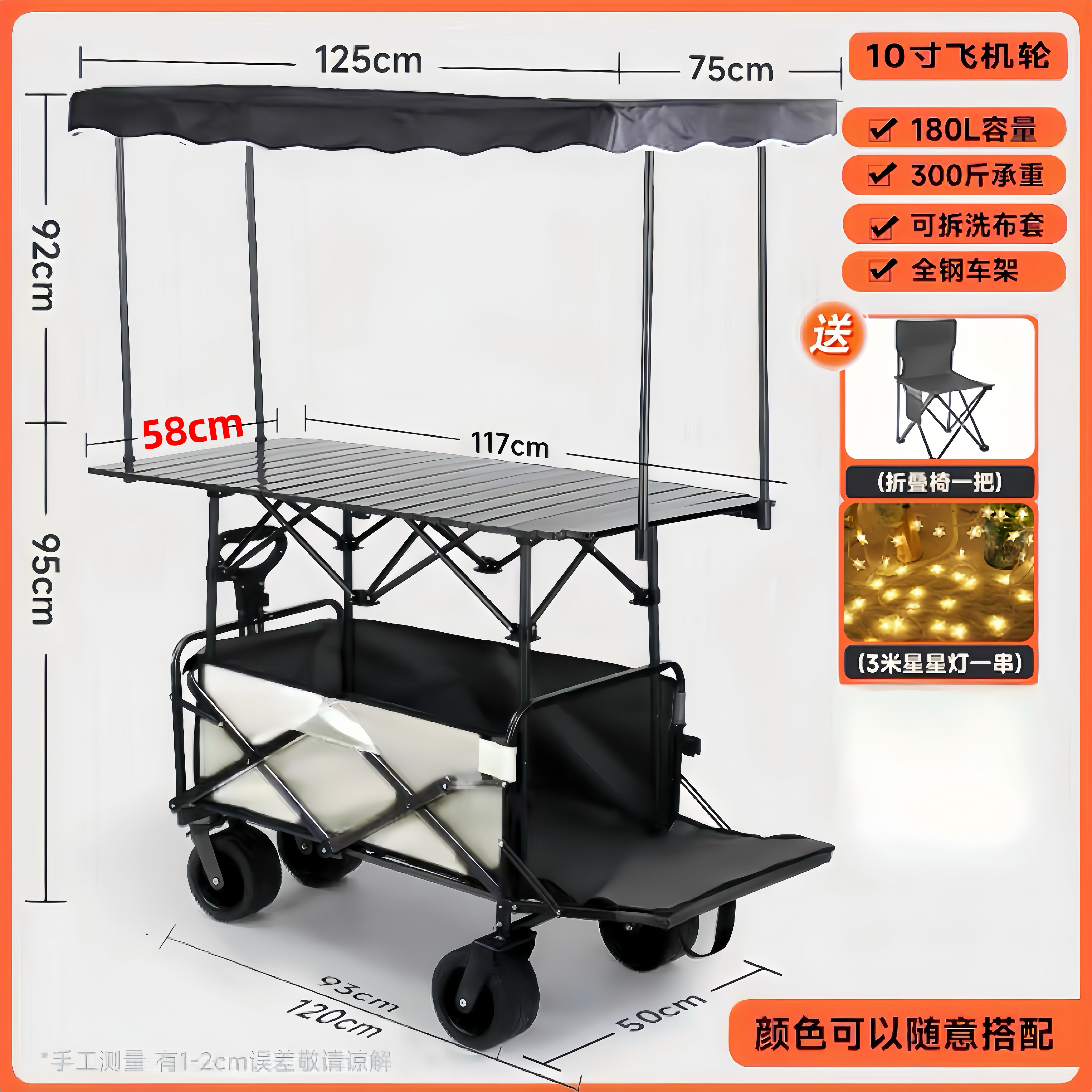 • 10inch 항공기 바퀴 - 트레일러 버킷 포함(120리터 확장 테이블) 커피 창고 + 커피 색상 자동차 +