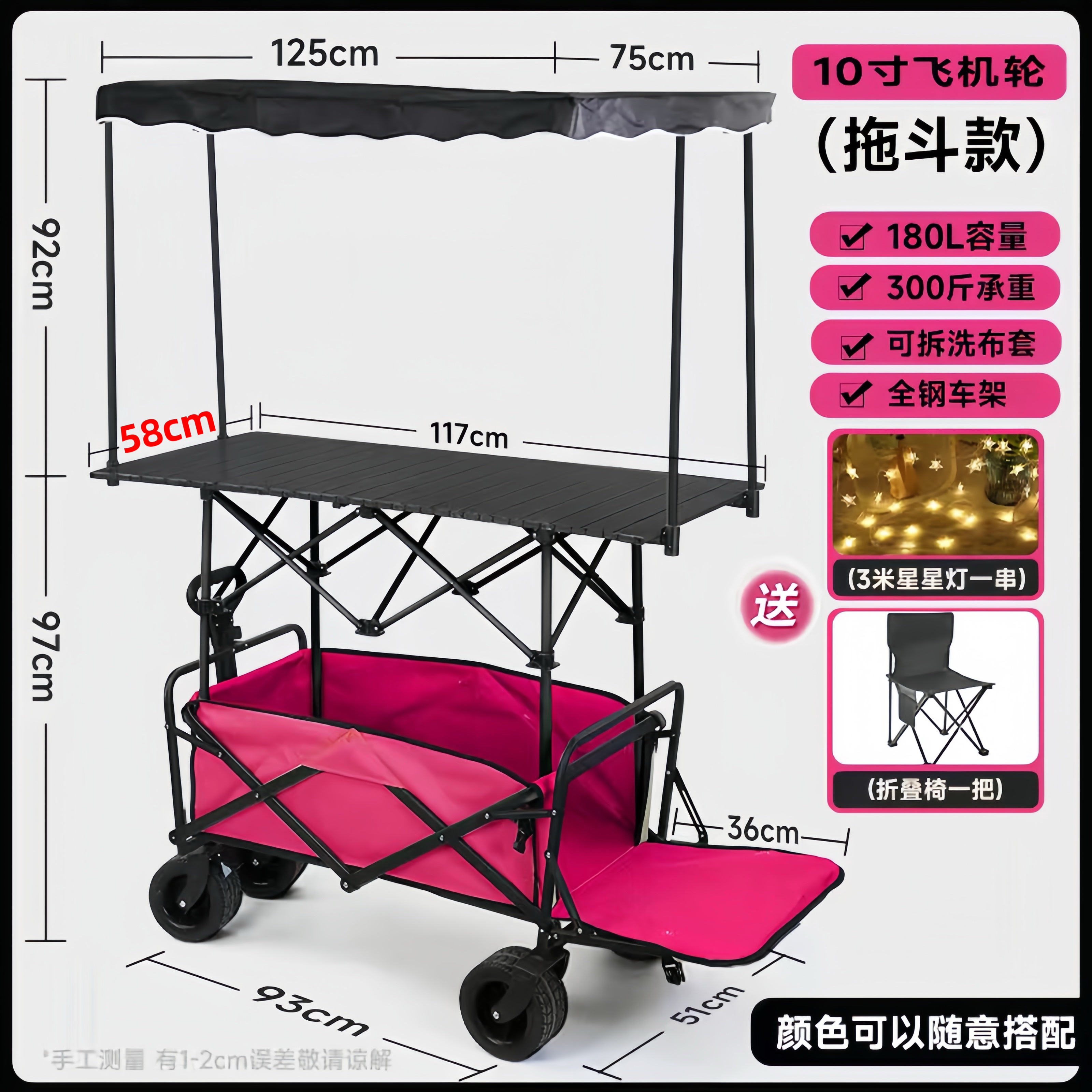 • 10inch 항공기 바퀴(트레일러 유형) 핑크 자동차 + 120 검정색 높이 및 확장 테이블