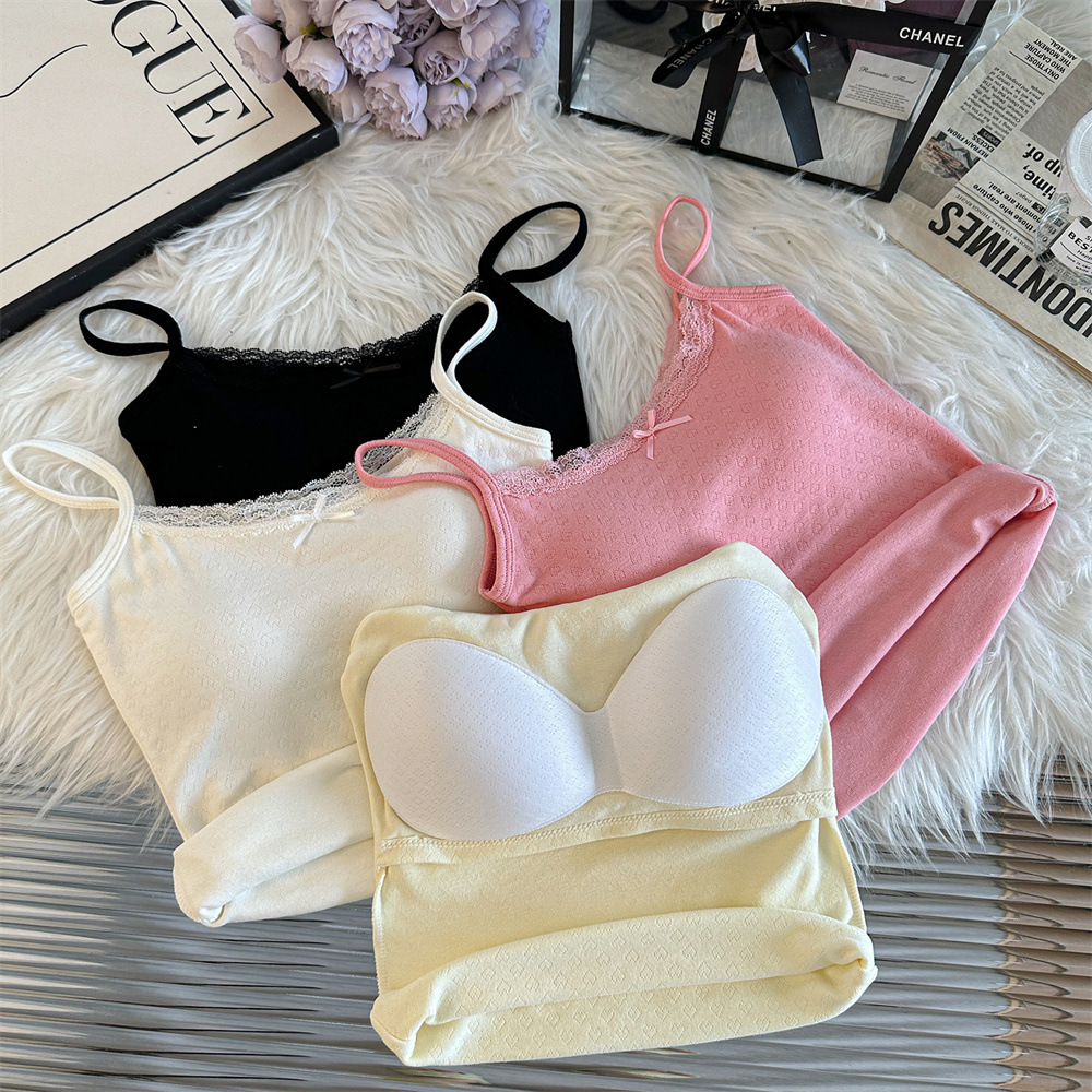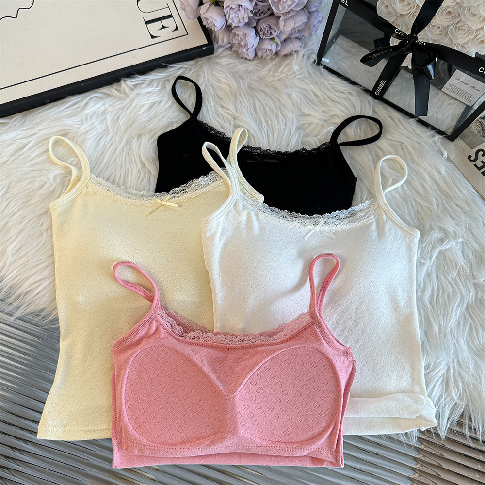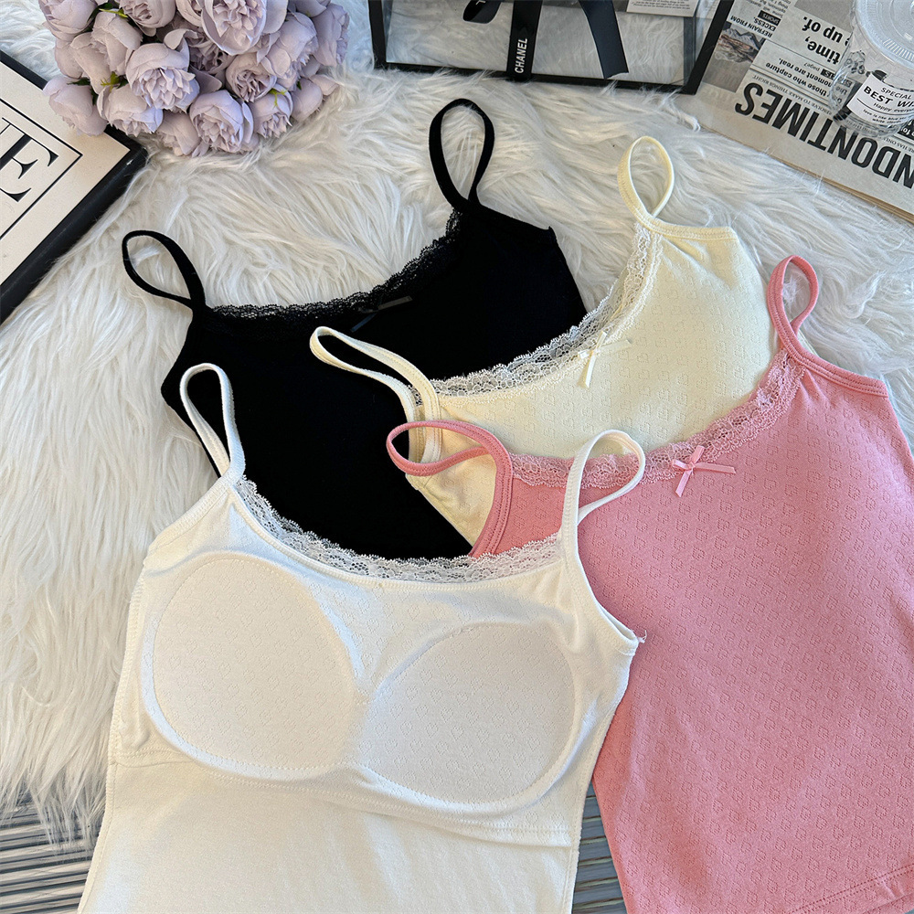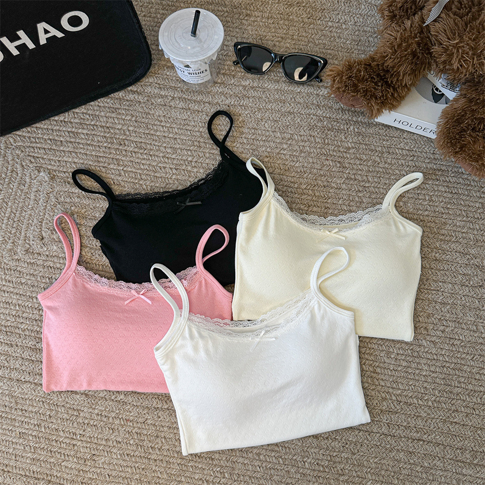 Bm 스타일 자카드 레이스 레이스 보우 슬링 여름 달콤한 매운 내부 레이스, 가슴 패드 섹시한 탑