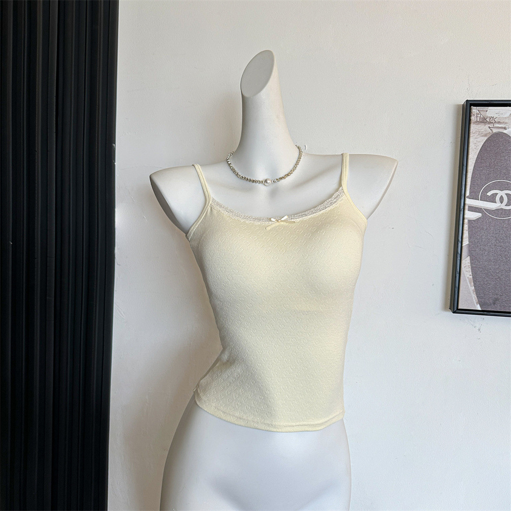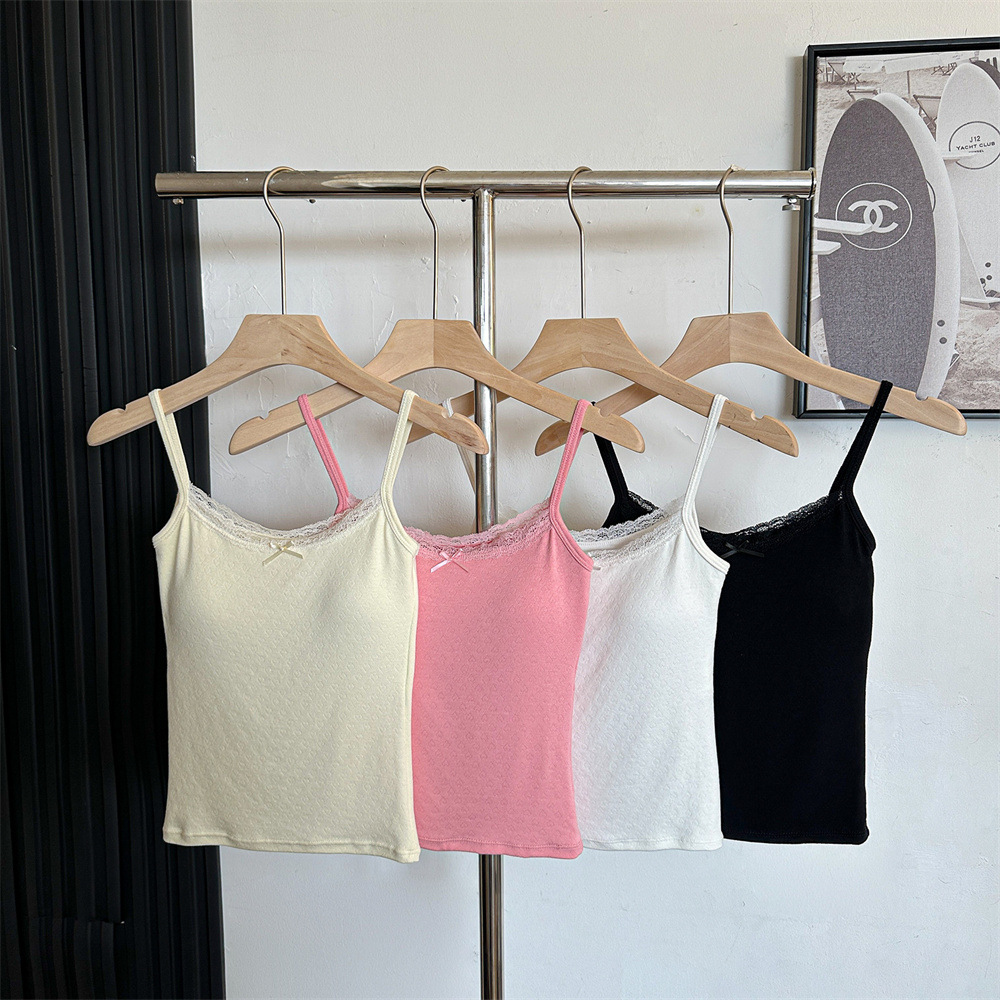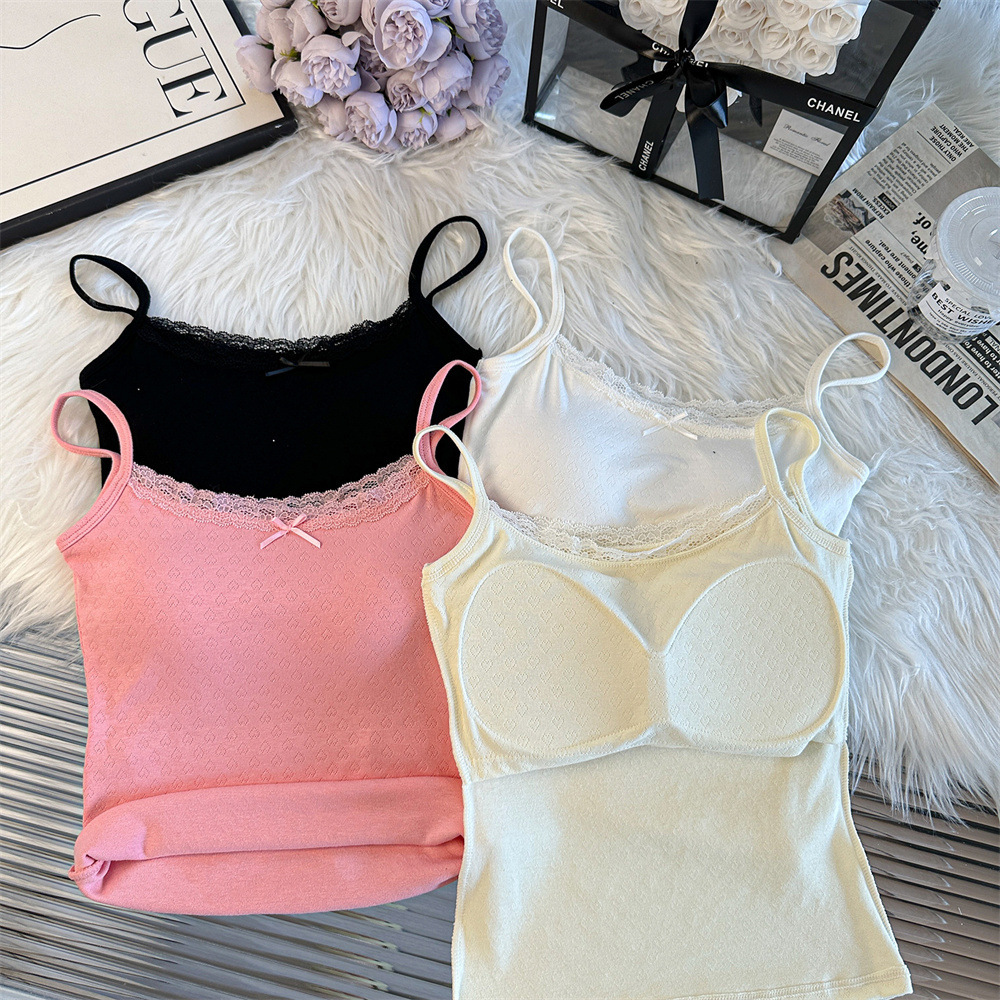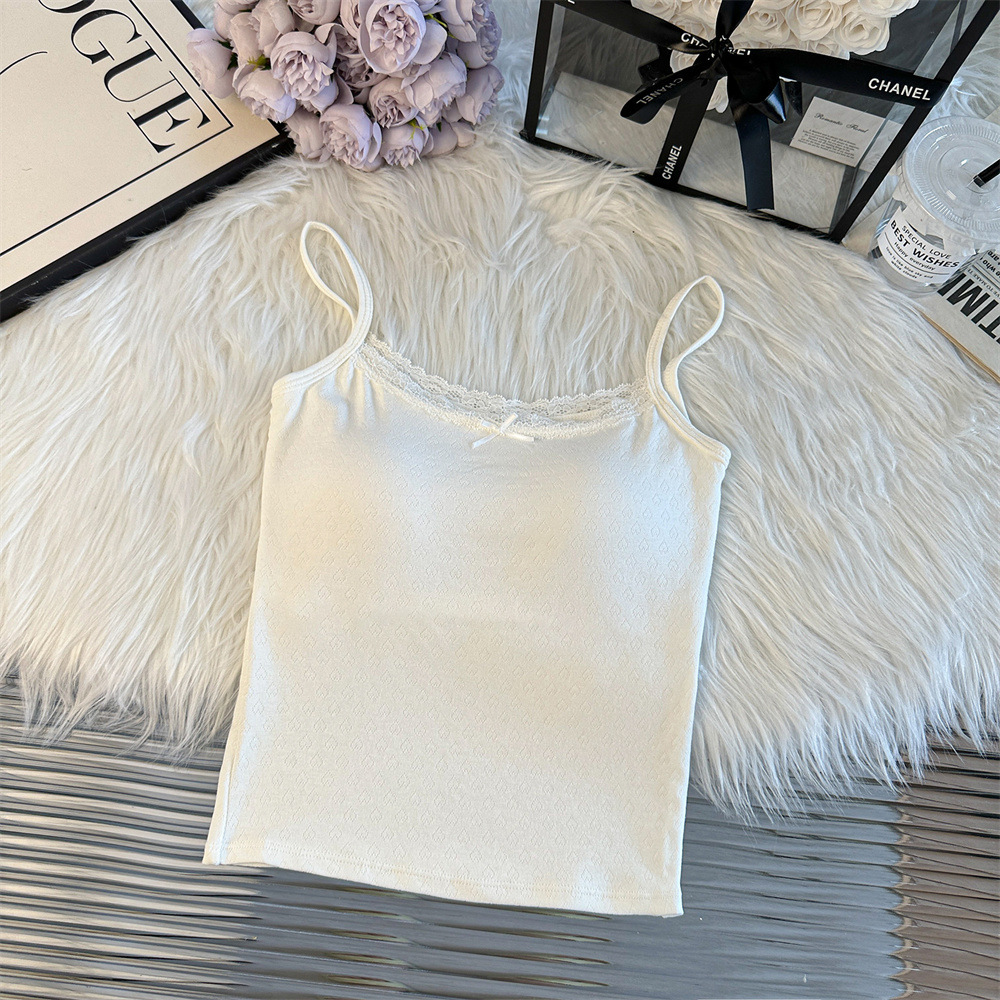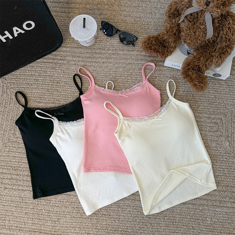 Bm 스타일 자카드 레이스 레이스 보우 슬링 여름 달콤한 매운 내부 레이스, 가슴 패드 섹시한 탑