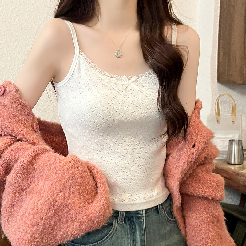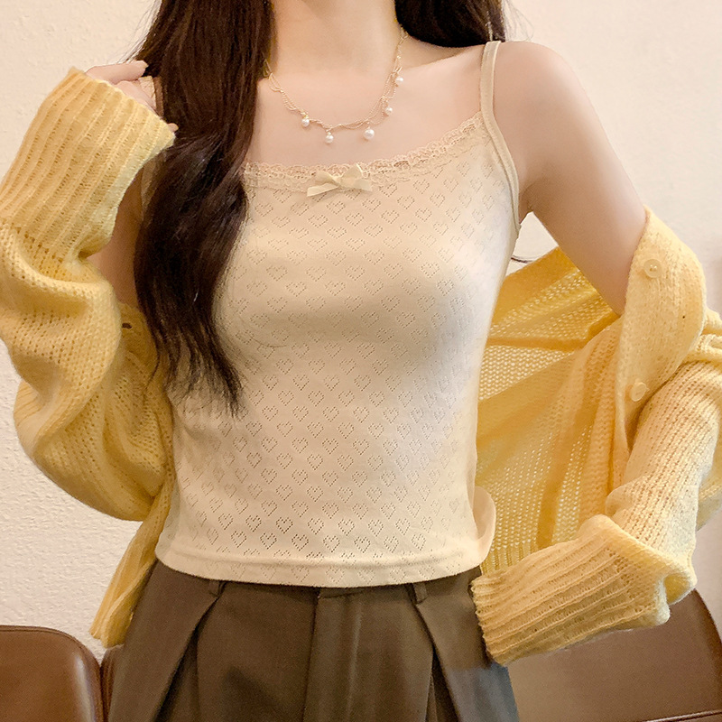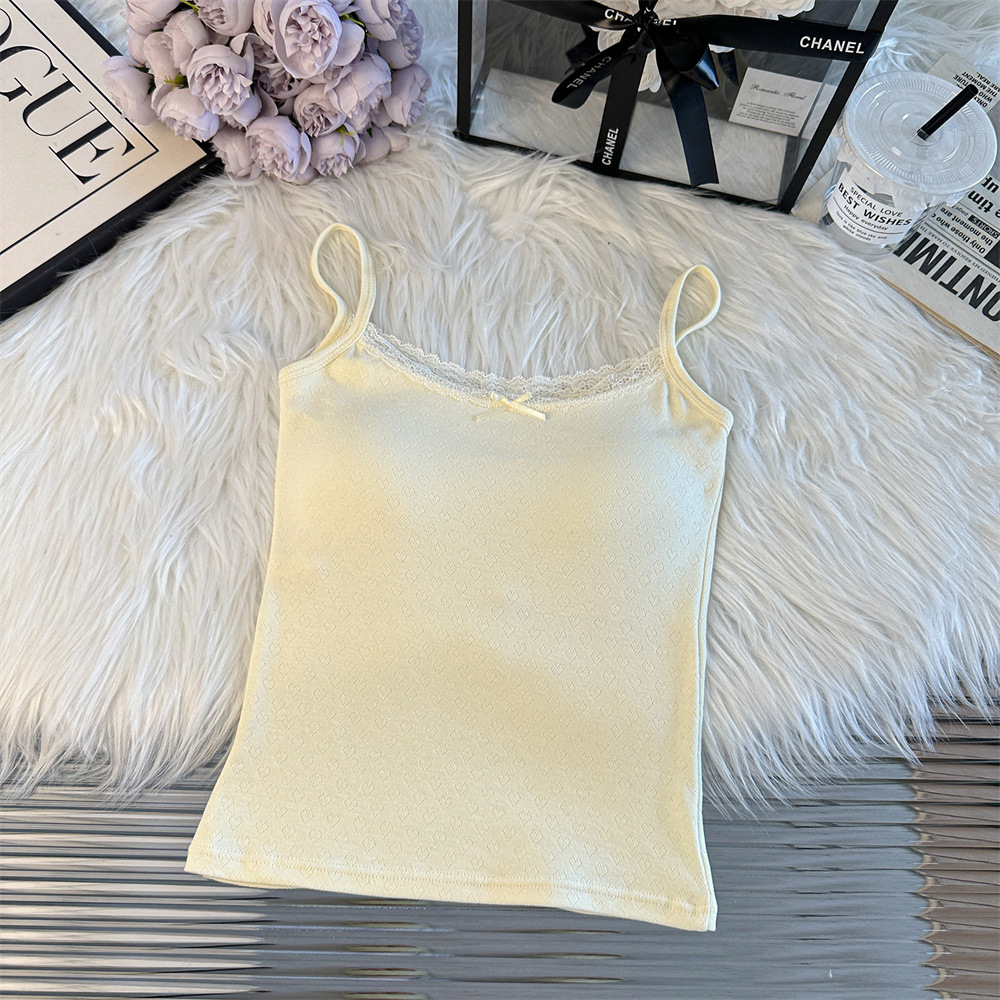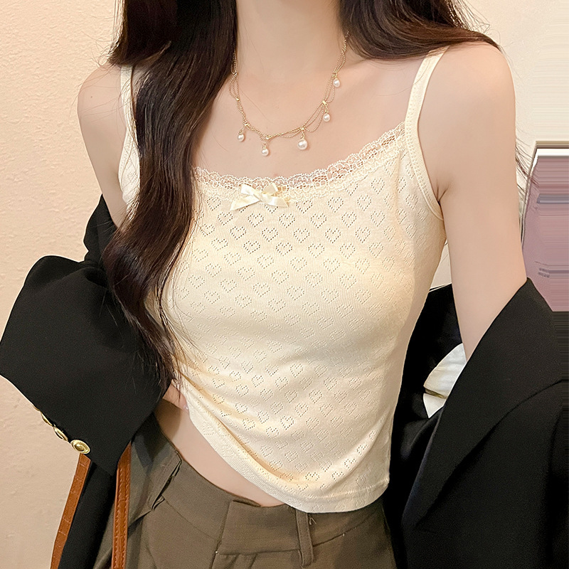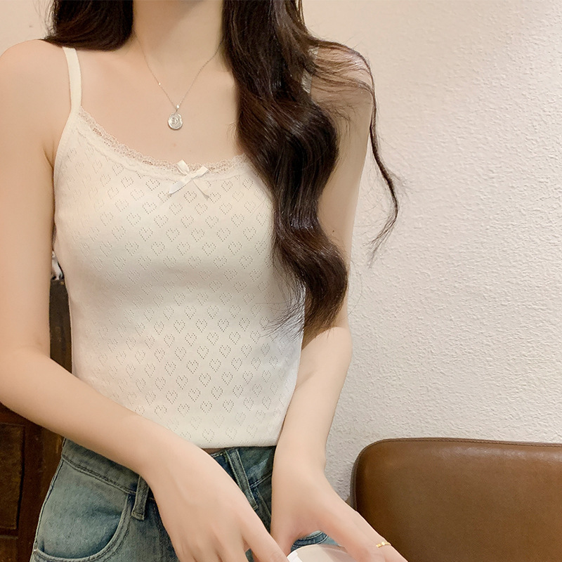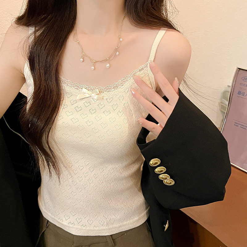 Bm 스타일 자카드 레이스 레이스 보우 슬링 여름 달콤한 매운 내부 레이스, 가슴 패드 섹시한 탑
