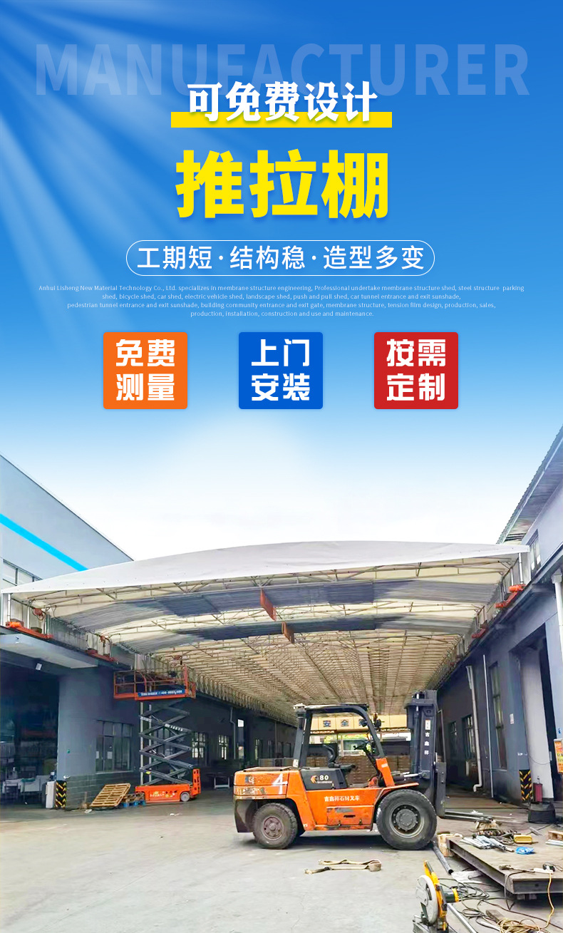 야외 차양 푸시풀 이동식 천막 공장 통로 이동식 푸시풀 천막 개폐식 차양 이동식 창고 차양
