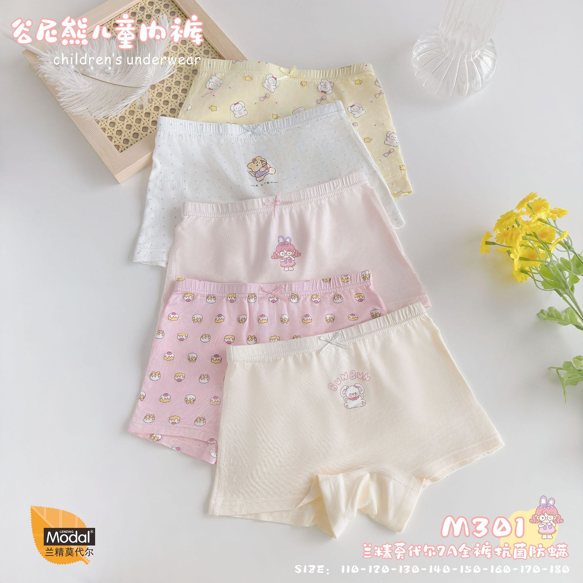 FOB Valley Nixiong 어린이 속옷 모달 클래스 A 여자 복서 아기 소년 작은 반바지 플랫 앵글 클립 PP