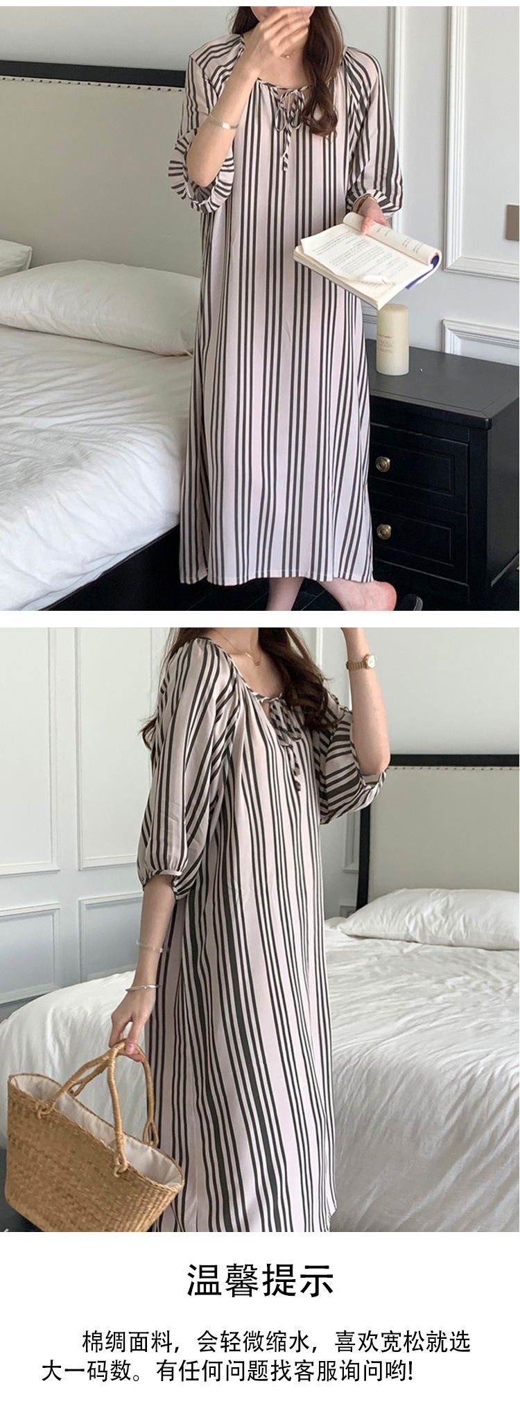 • HX 2412 Guofeng 원피스 줄무늬 베이지