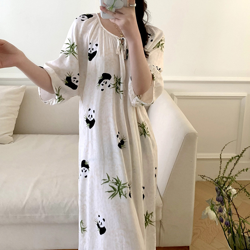 2024 새로운 국립 스타일 잠옷 여성 여름 해변 휴가를위한 우아한 하이 엔드 코튼 실크 잠옷 새로운 중국 스타일 코튼 실크 긴 원피스스토어 가기