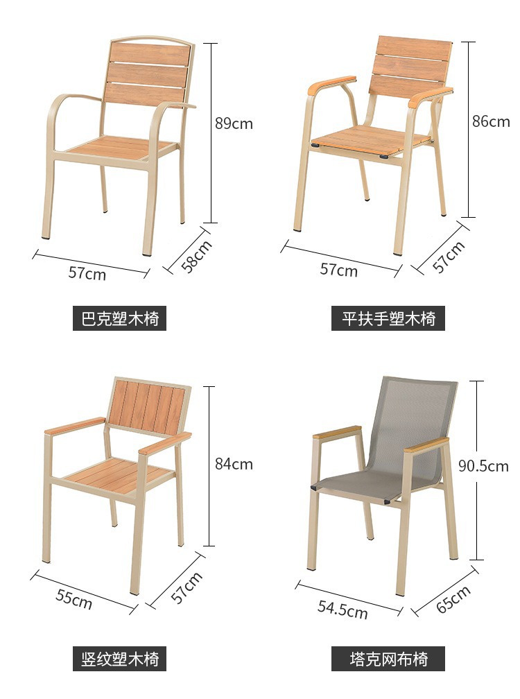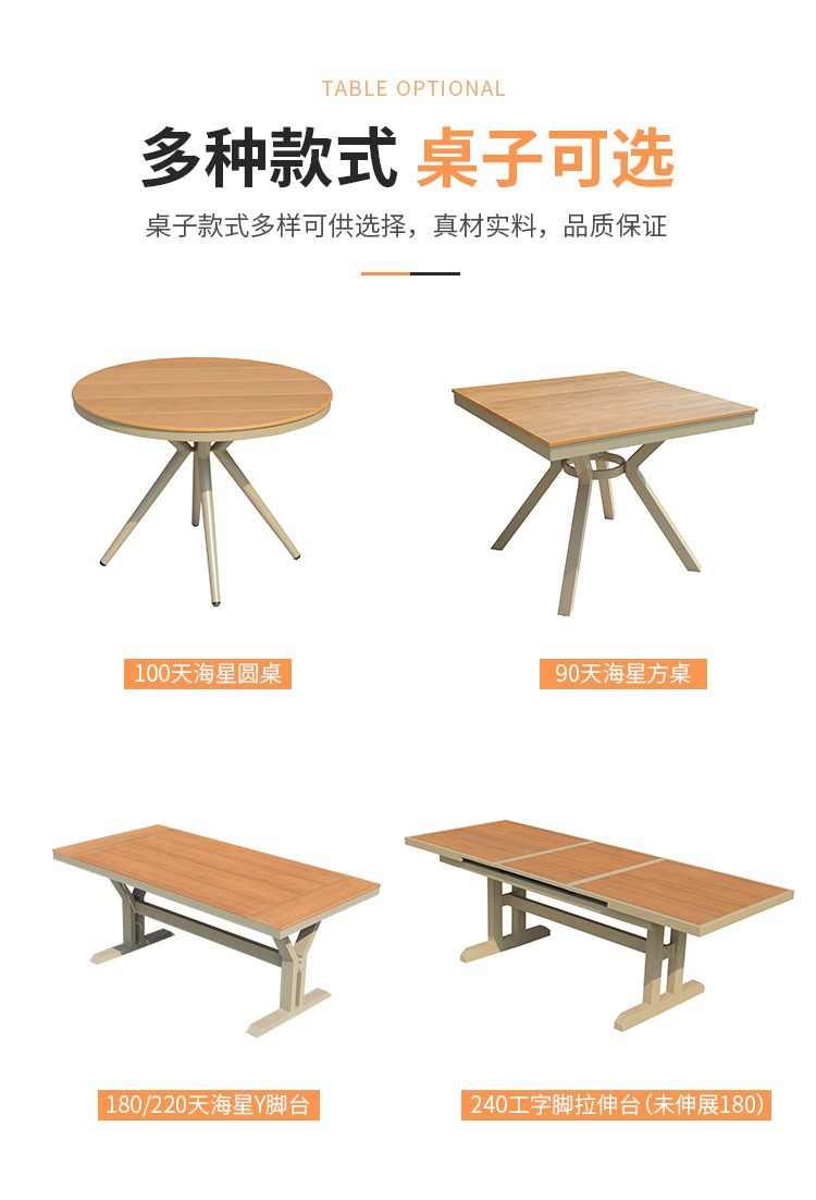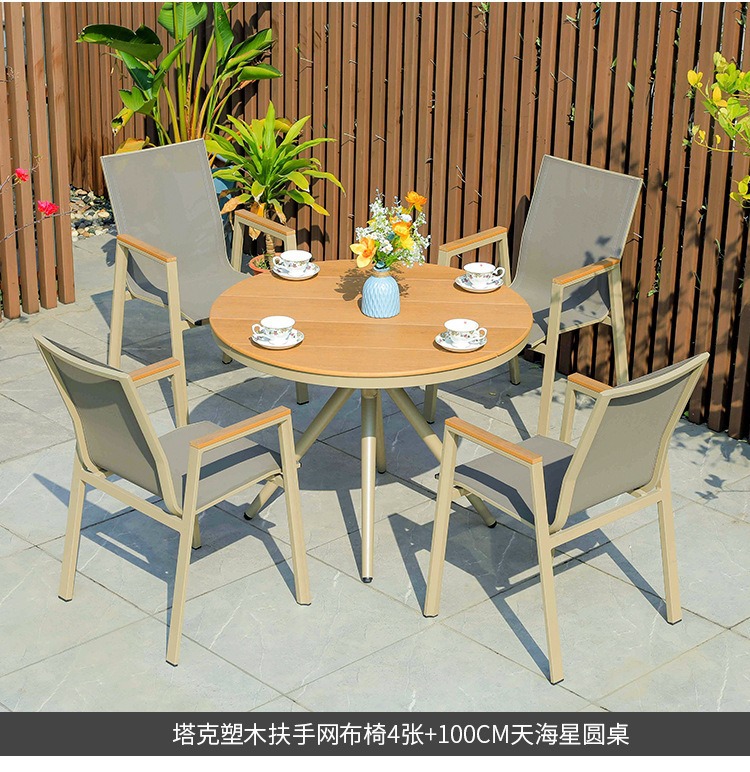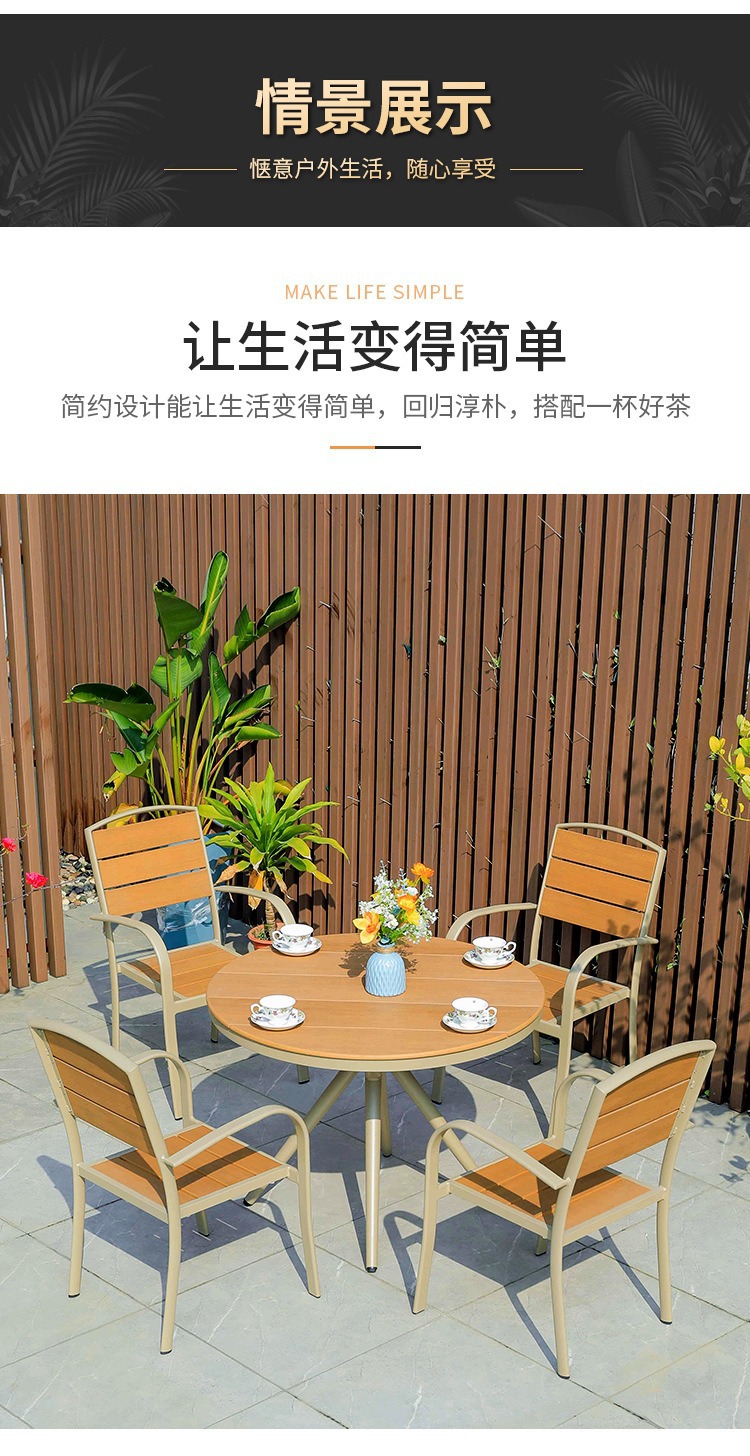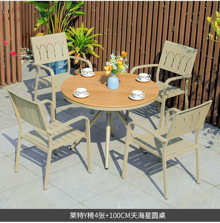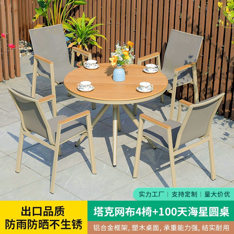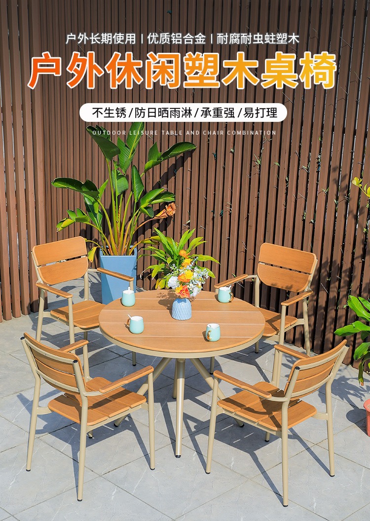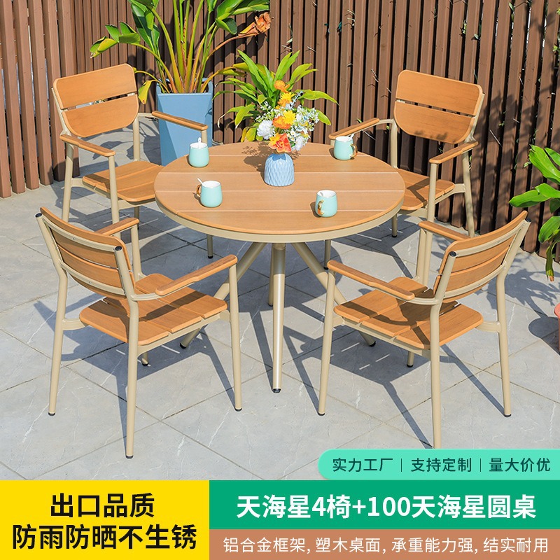야외 테이블과 의자 플라스틱 목재 알루미늄 합금 식탁 및 의자 상업용 거리 테이블과 의자 도매 방수 방청 테이블과 의자