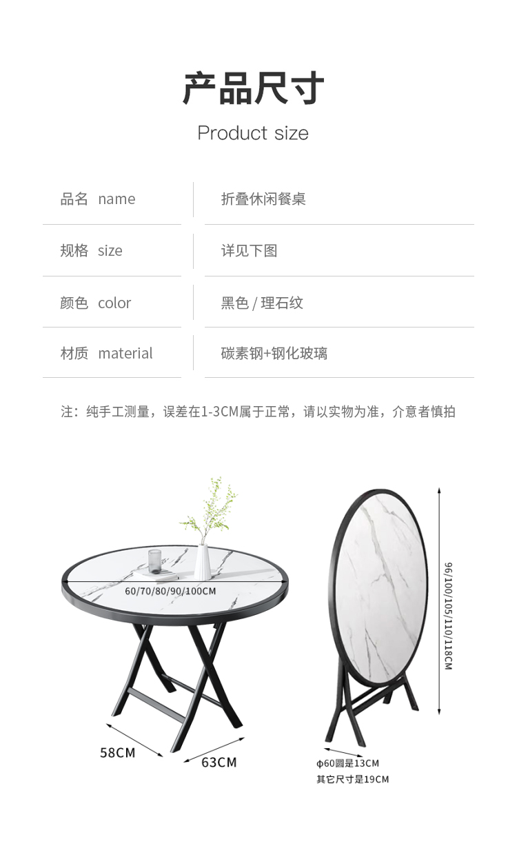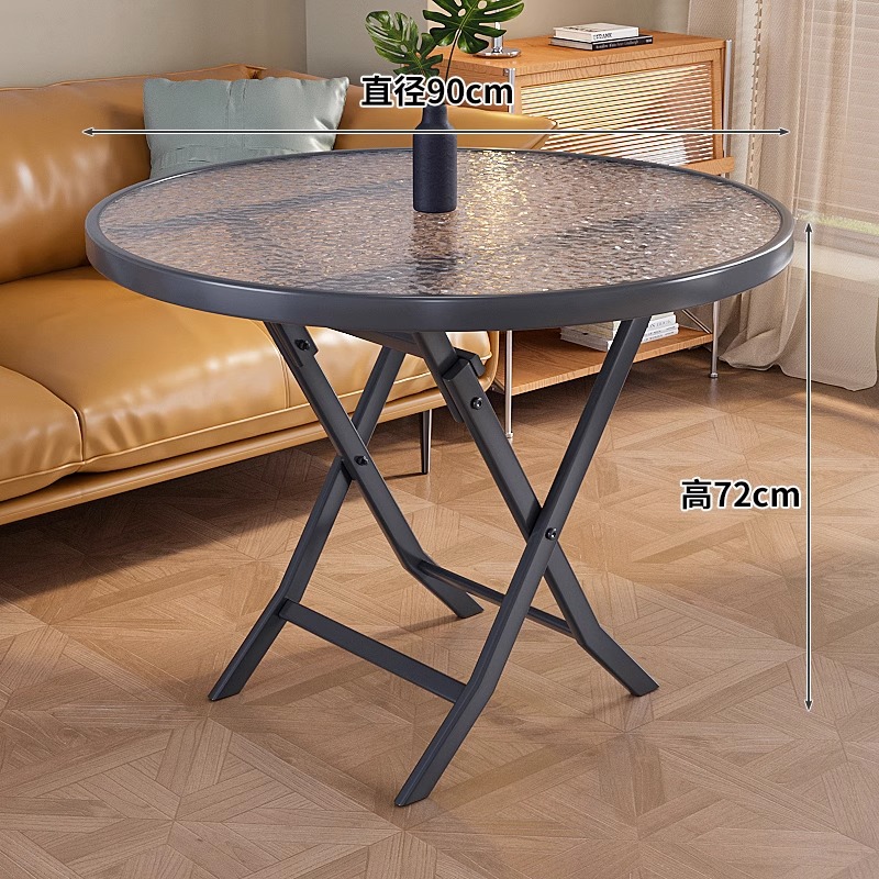 9W 접이식 테이블 스톨 식탁 접이식 라운드 테이블 가정용 작은 아파트 작은 테이블 야외 강화 유리 발코니 광장스토어 가기