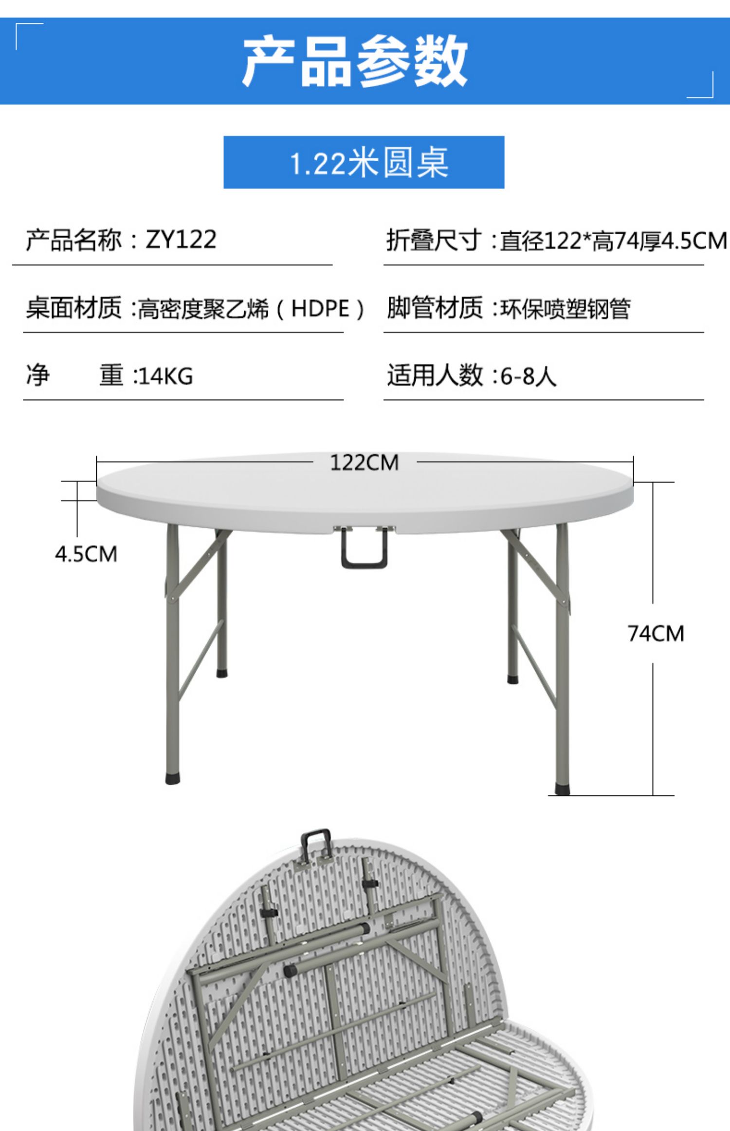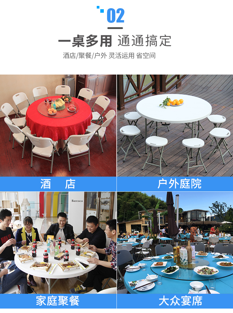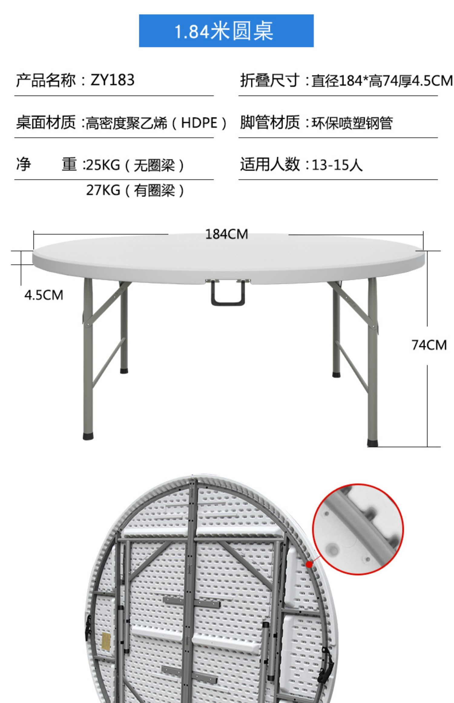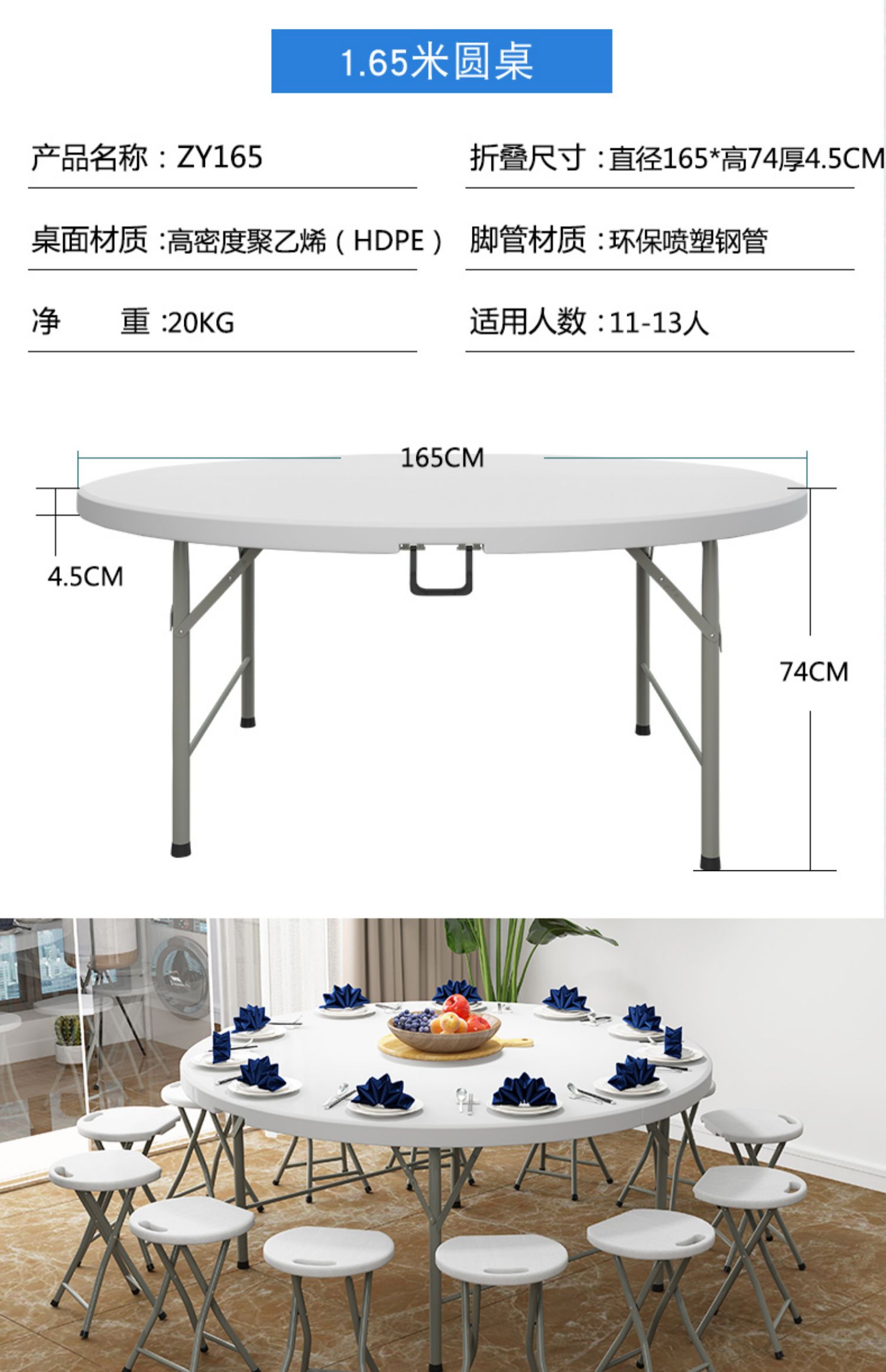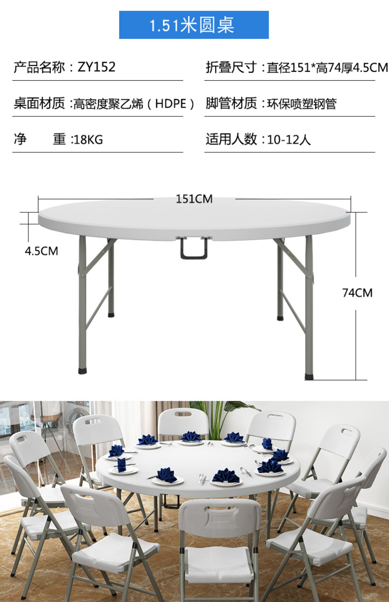 0J 접이식 라운드 테이블 가정용 저장 식탁 및 의자 테이블 라운드 테이블 야외 플라스틱 간단한 대형 원탁