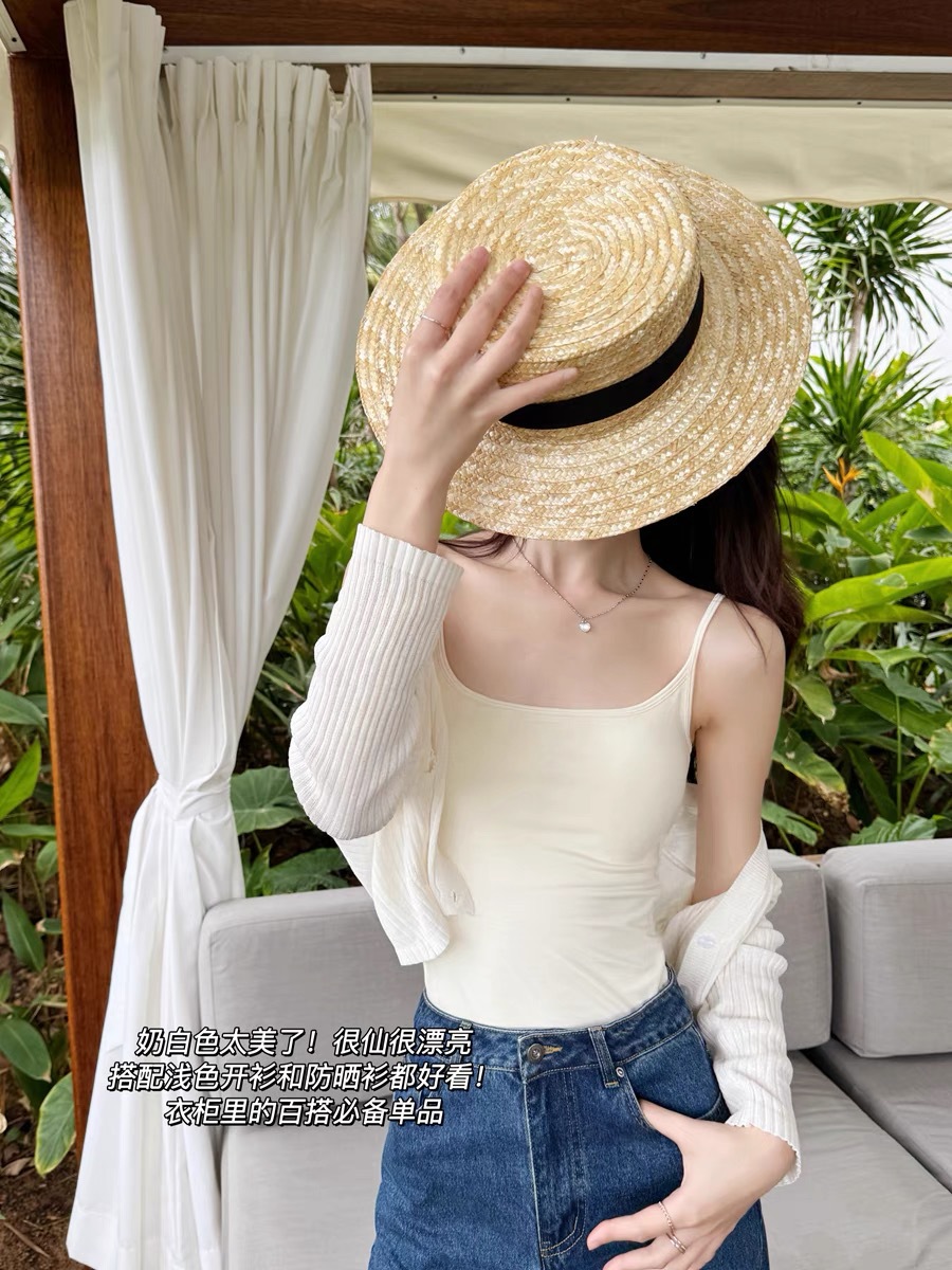 22173-1 # 얇은 여름 솔리드 컬러 작은 조끼 카미 솔 고정 컵 슬림 슬림 피트베이스 재킷 여성