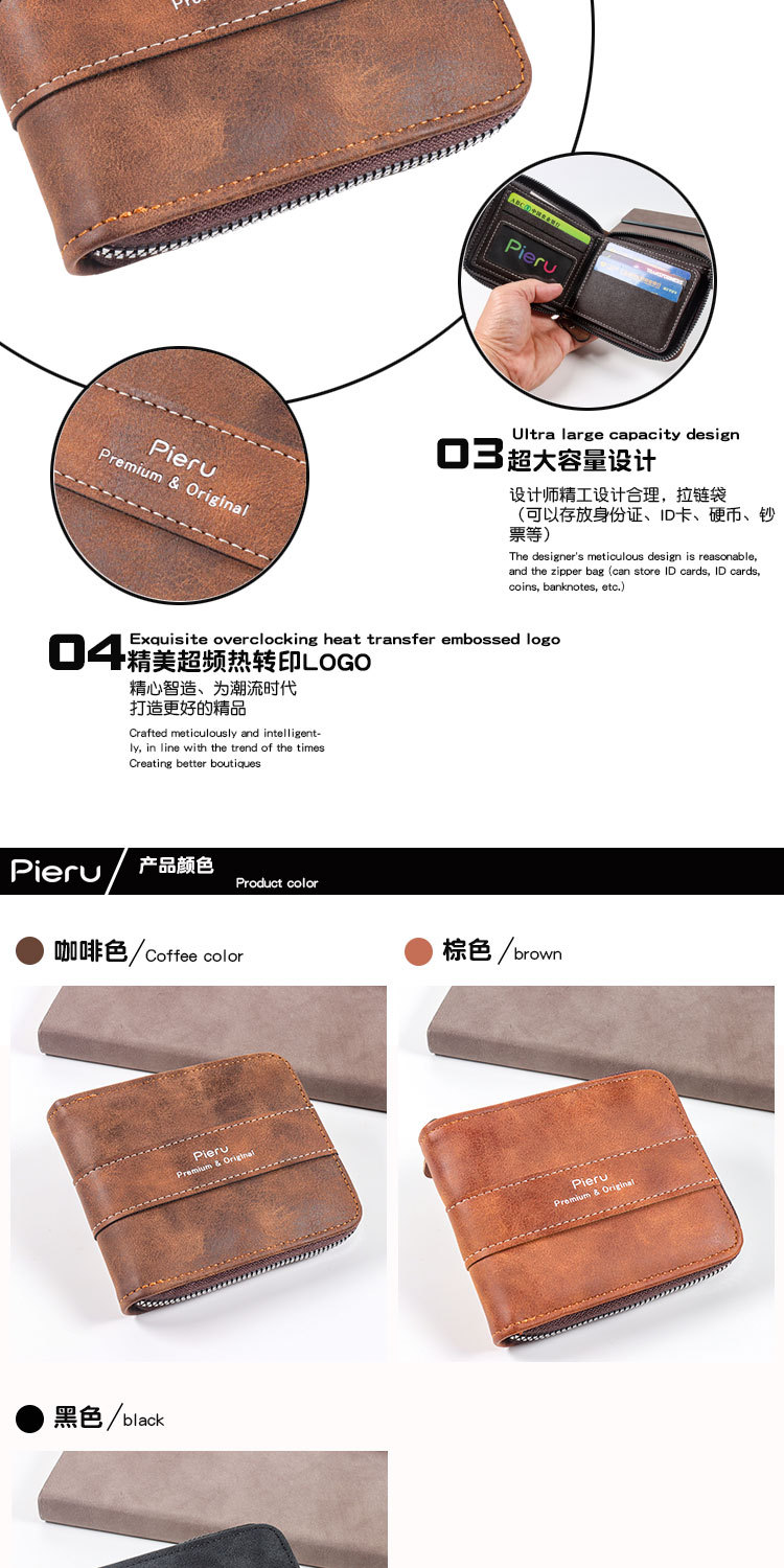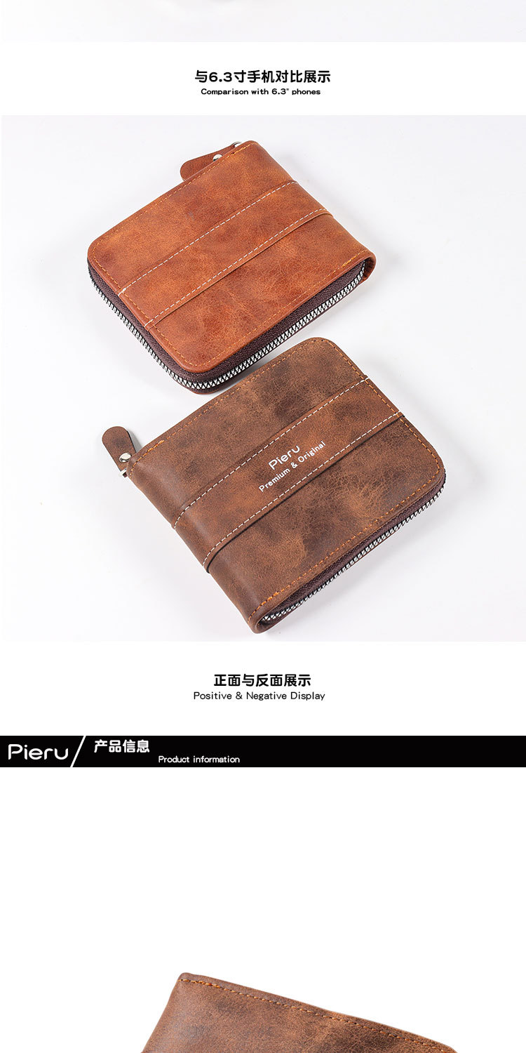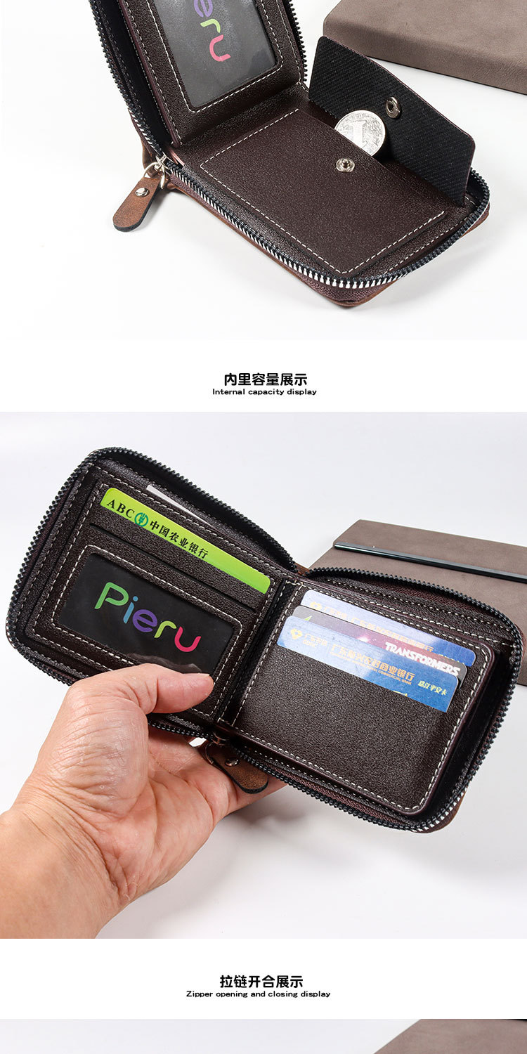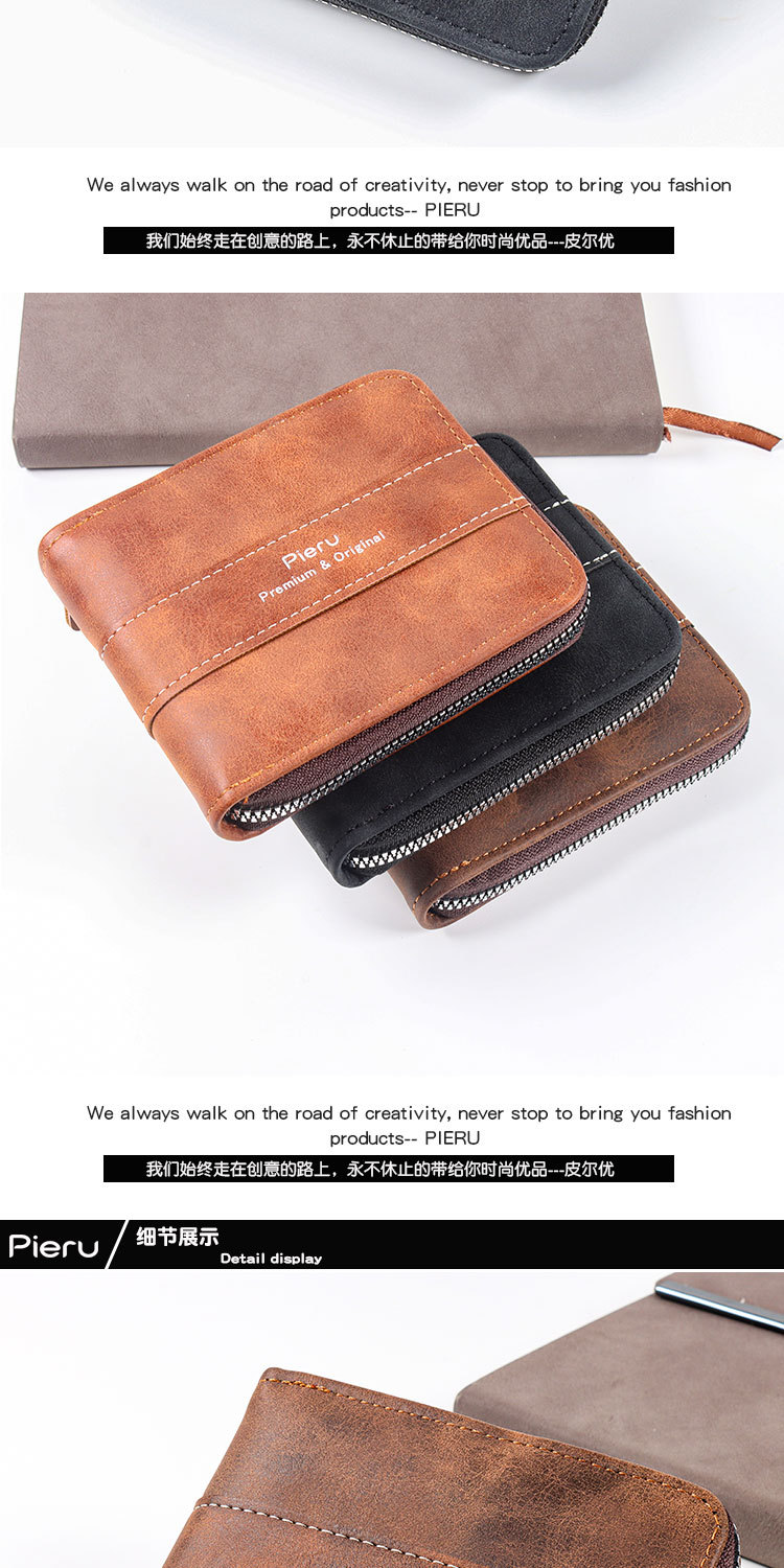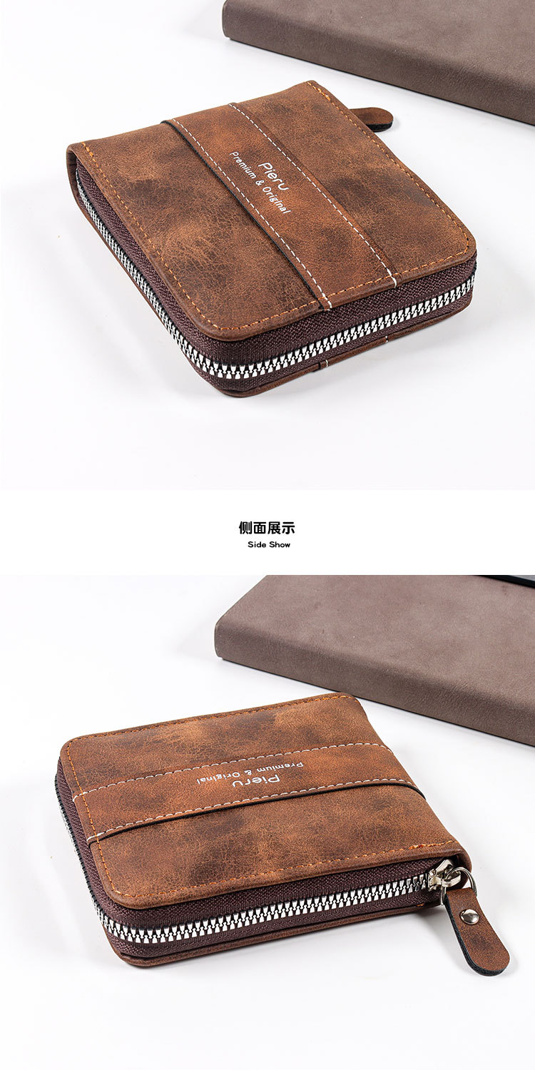 2024 대외 무역 뜨거운 판매 남자 짧은 지퍼 지갑 PU 가죽 복고풍 다기능 수평 지갑 재고스토어 가기