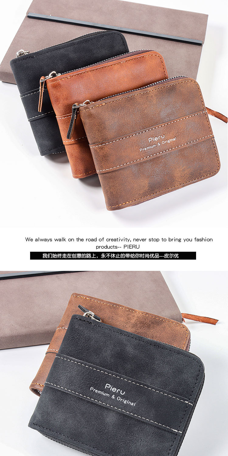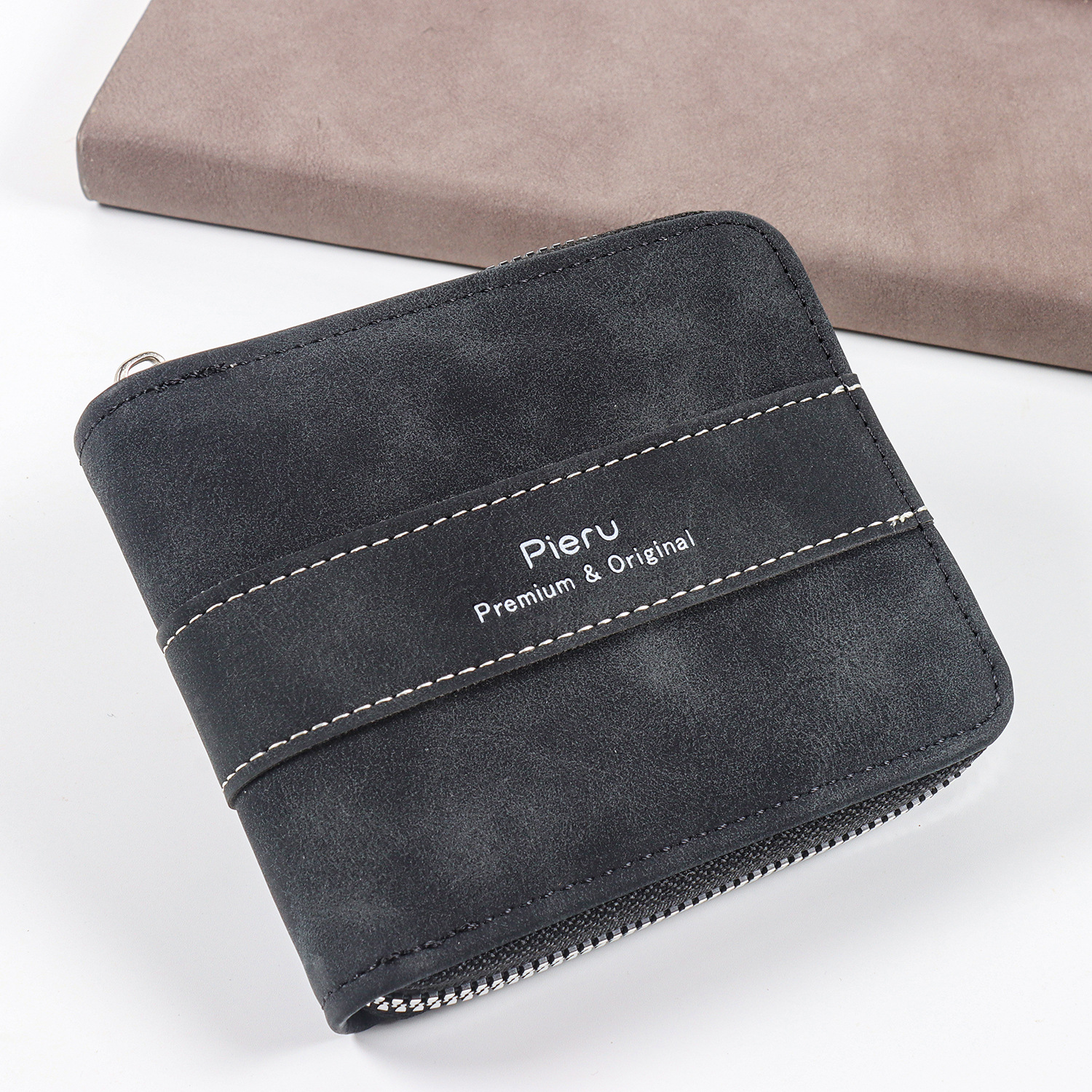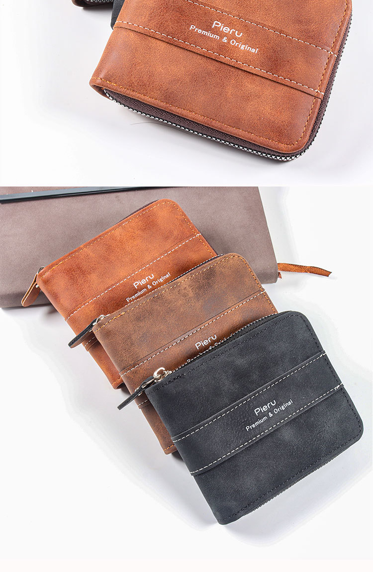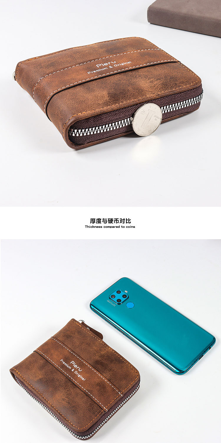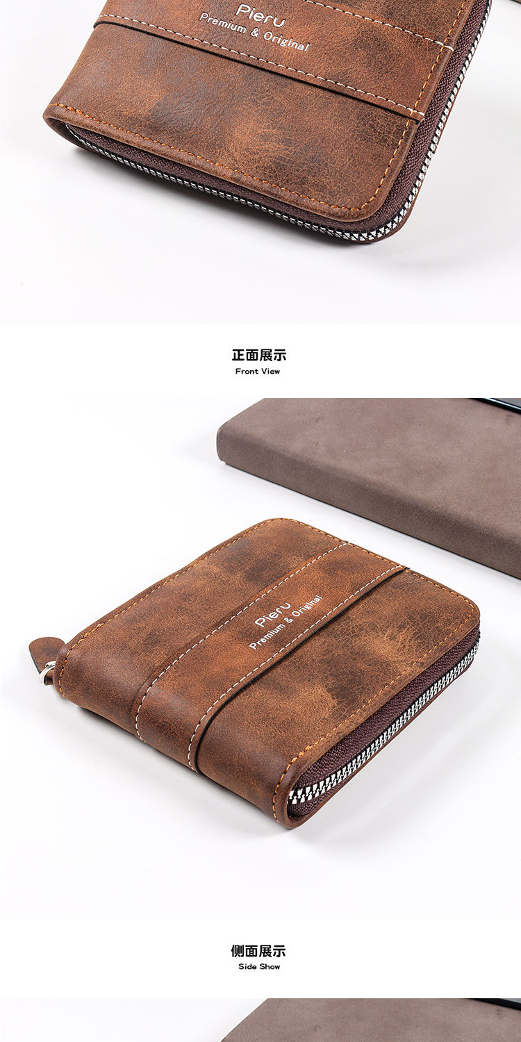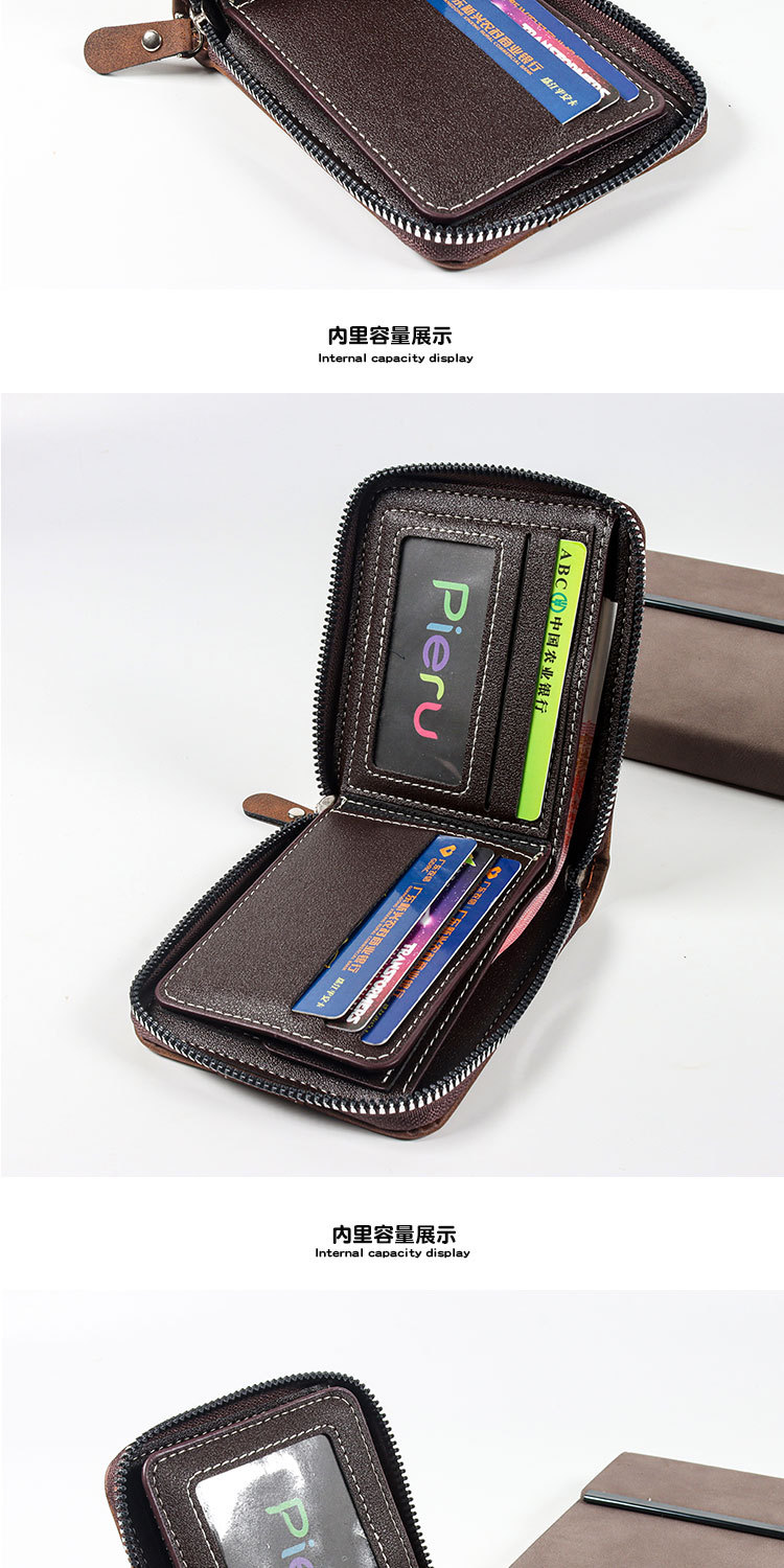 2024 대외 무역 뜨거운 판매 남자 짧은 지퍼 지갑 PU 가죽 복고풍 다기능 수평 지갑 재고스토어 가기