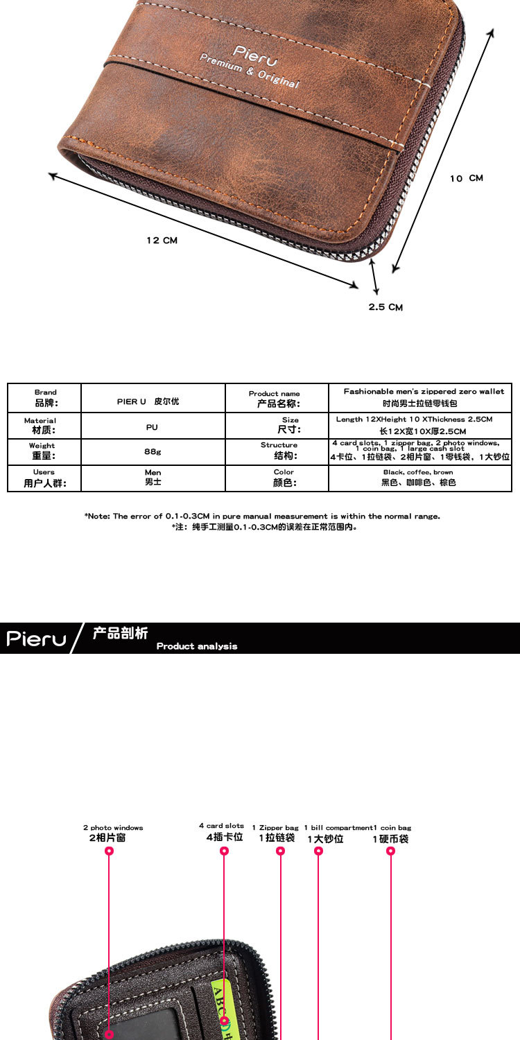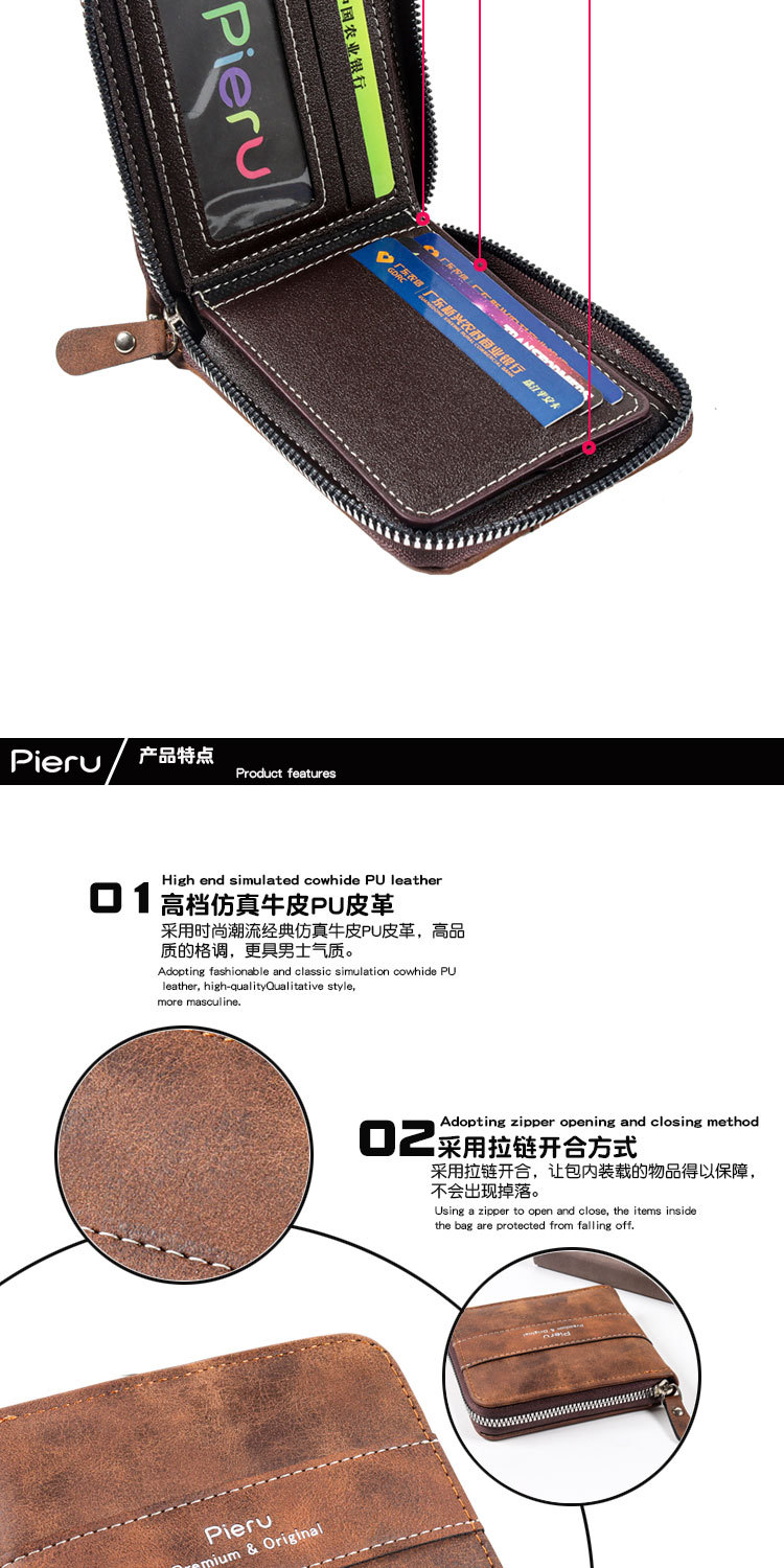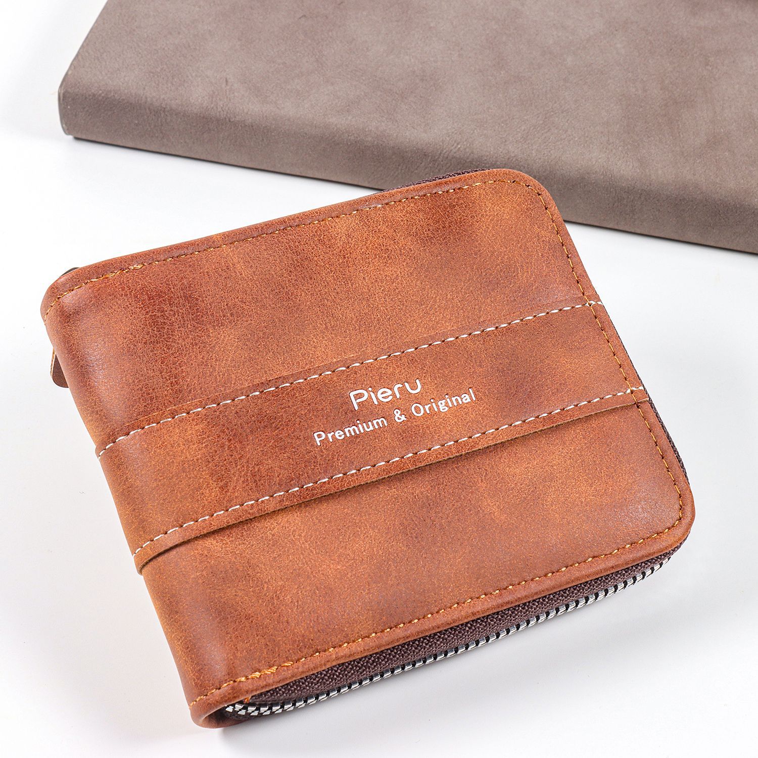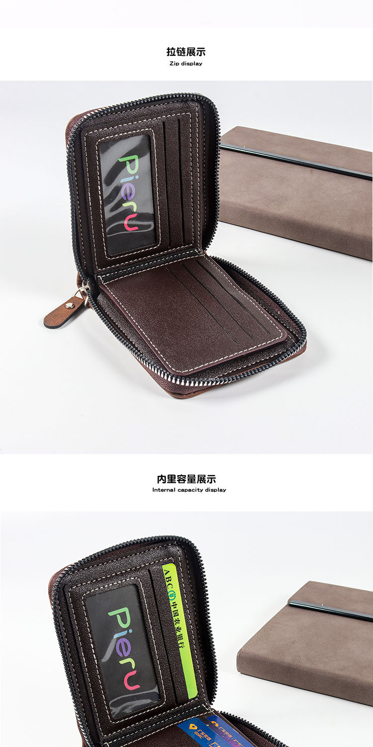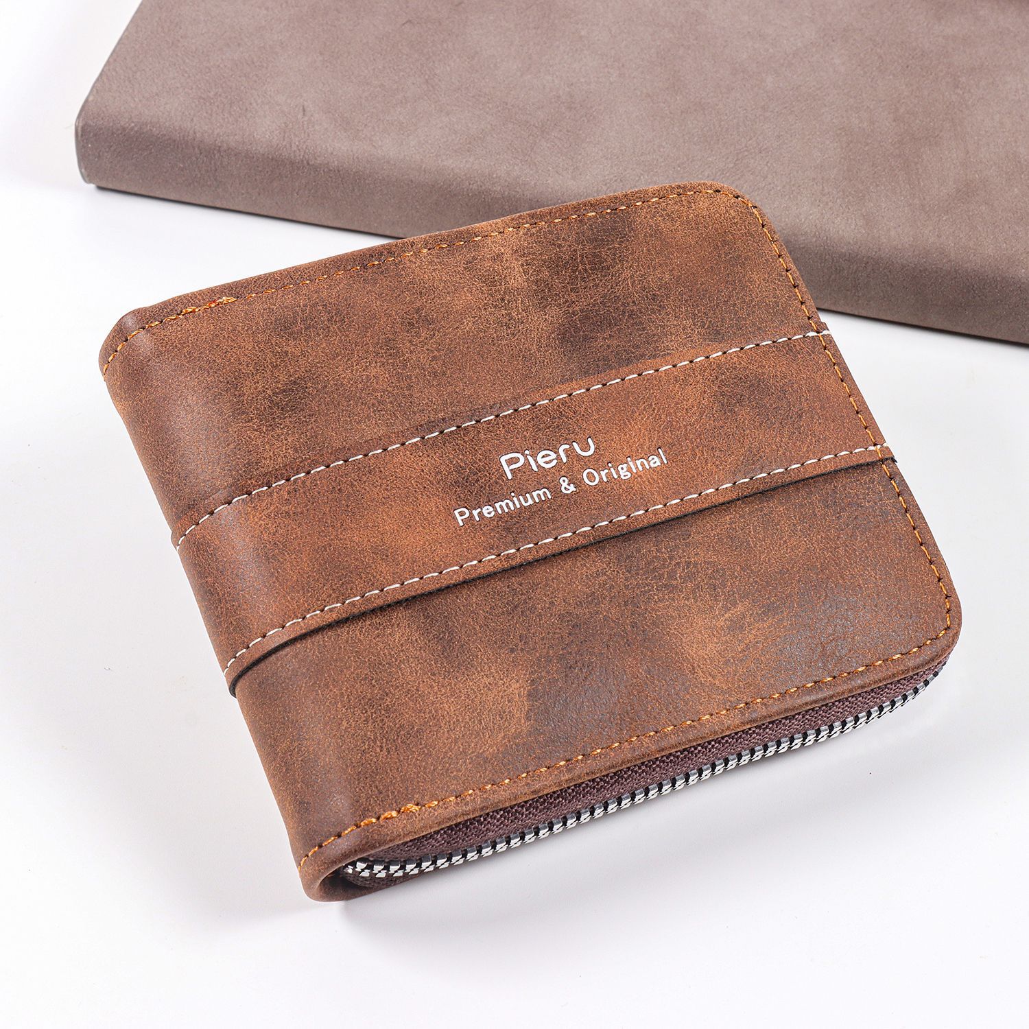 2024 대외 무역 뜨거운 판매 남자 짧은 지퍼 지갑 PU 가죽 복고풍 다기능 수평 지갑 재고스토어 가기