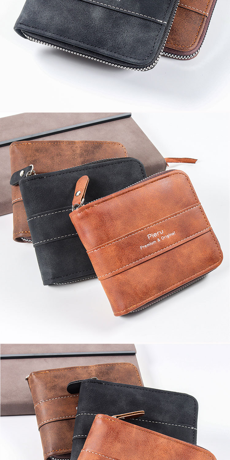 2024 대외 무역 뜨거운 판매 남자 짧은 지퍼 지갑 PU 가죽 복고풍 다기능 수평 지갑 재고