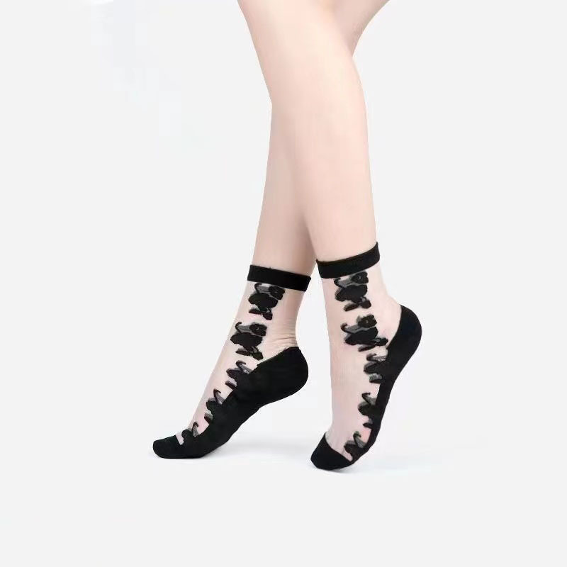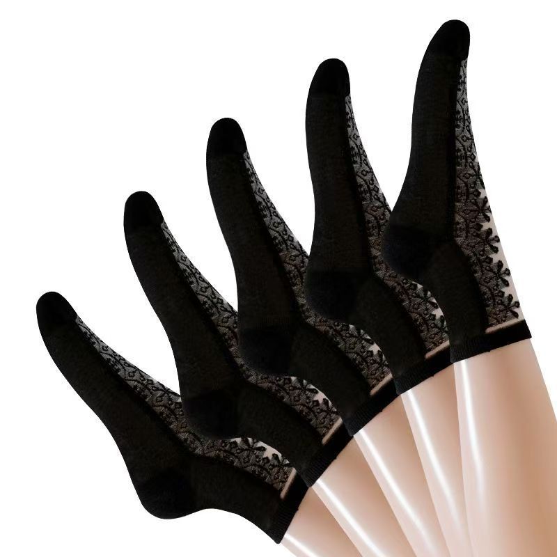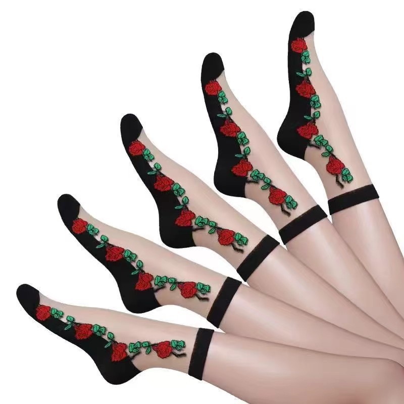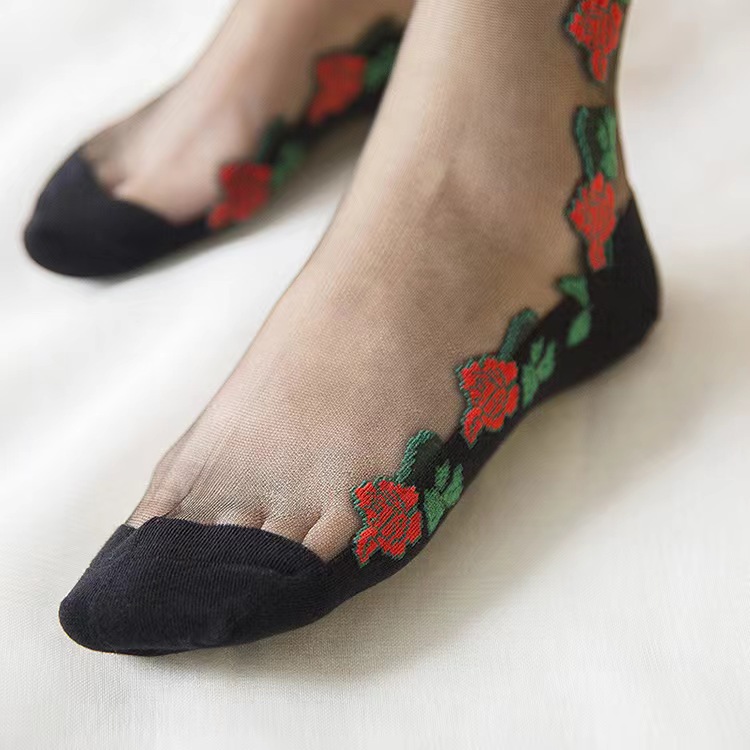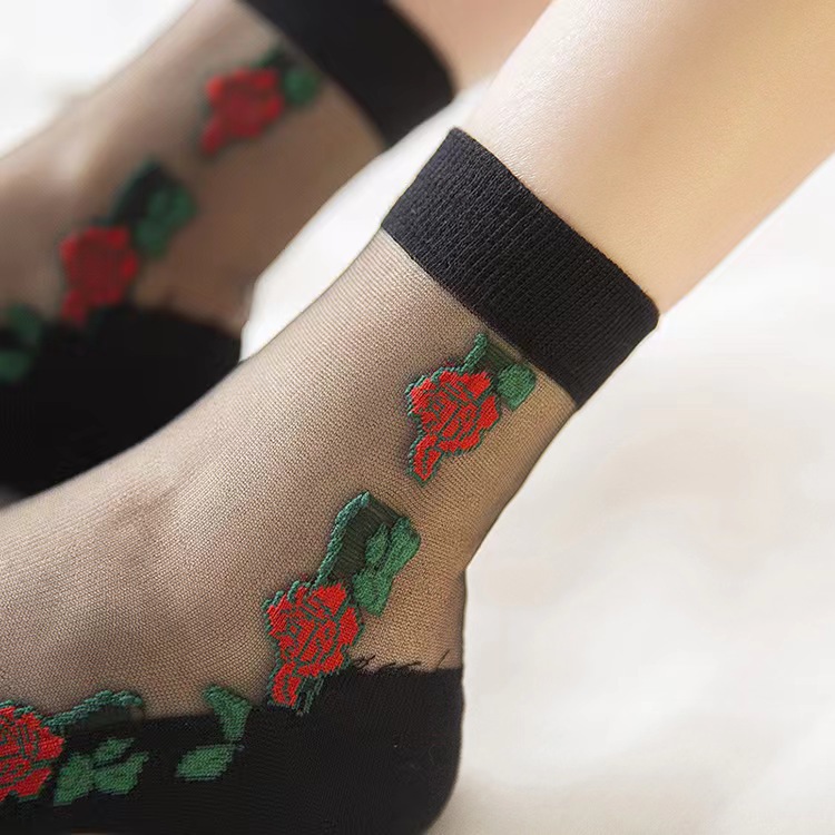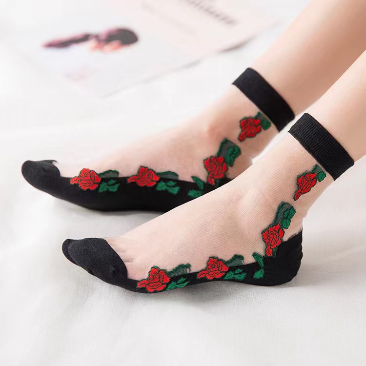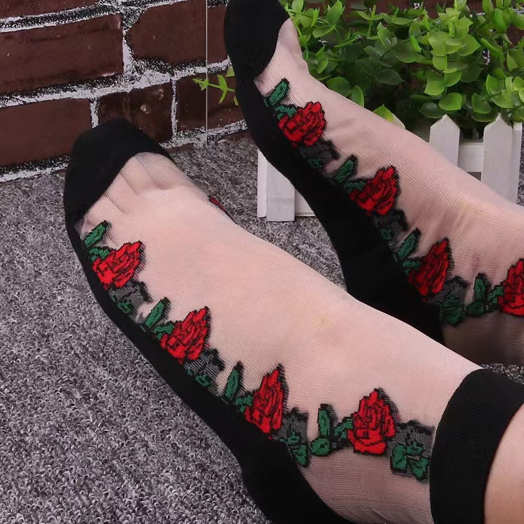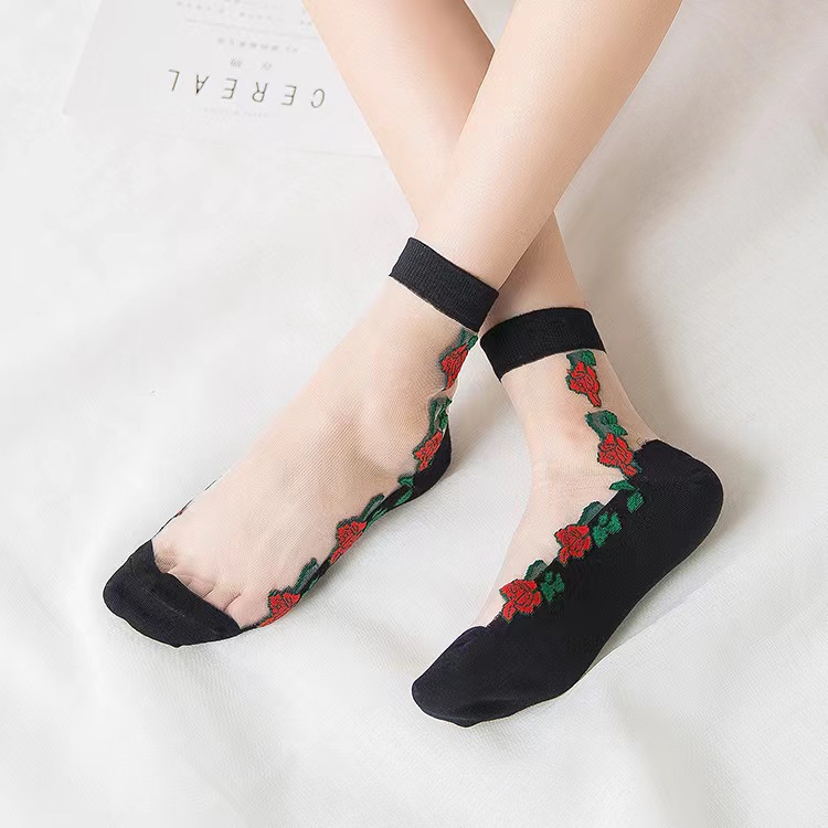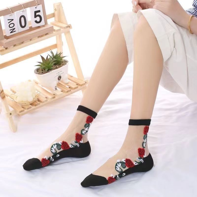 여름 얇은 튜브 양말 숙녀 레이스 투명 유리 실크 양말 편안한 통기성 크리스탈 양말 장미