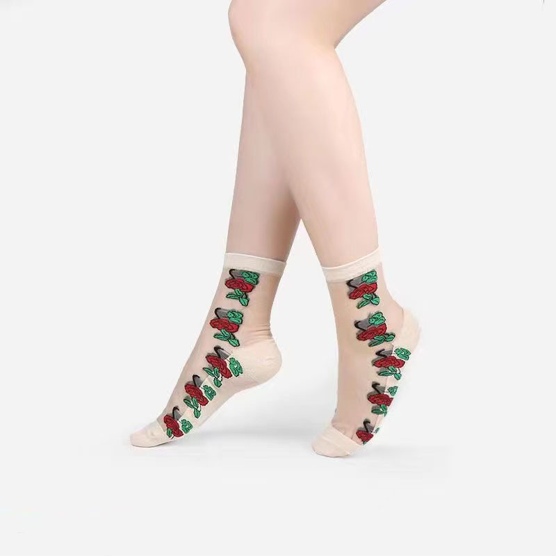 여름 얇은 튜브 양말 숙녀 레이스 투명 유리 실크 양말 편안한 통기성 크리스탈 양말 장미스토어 가기
