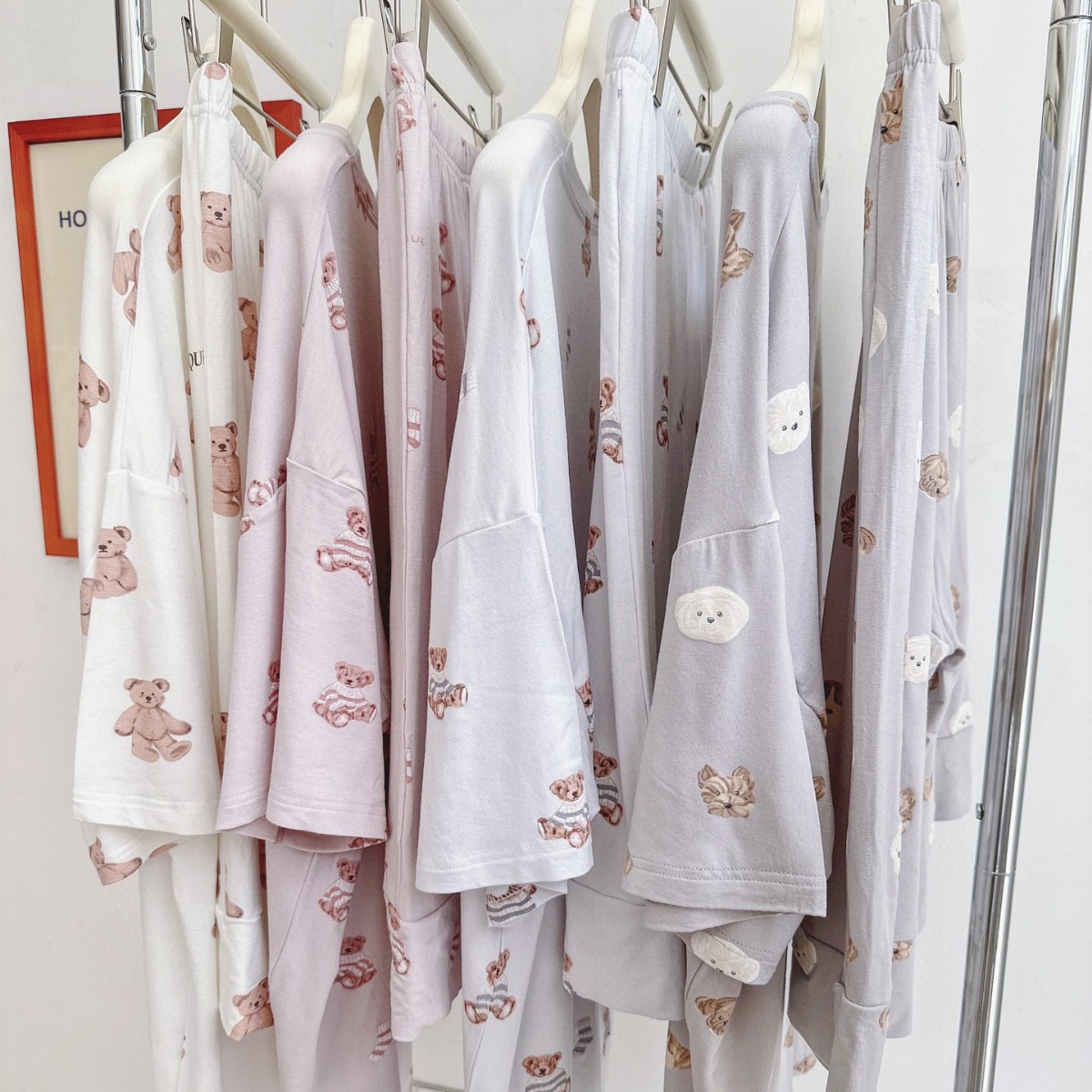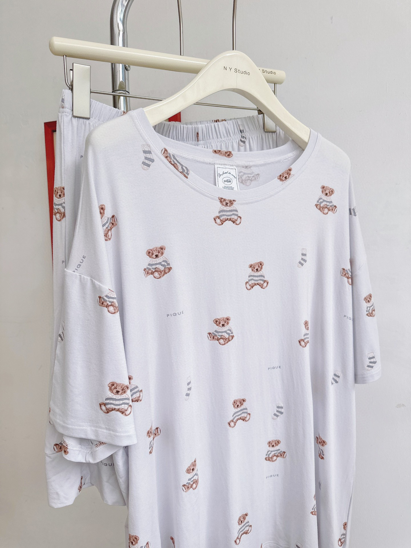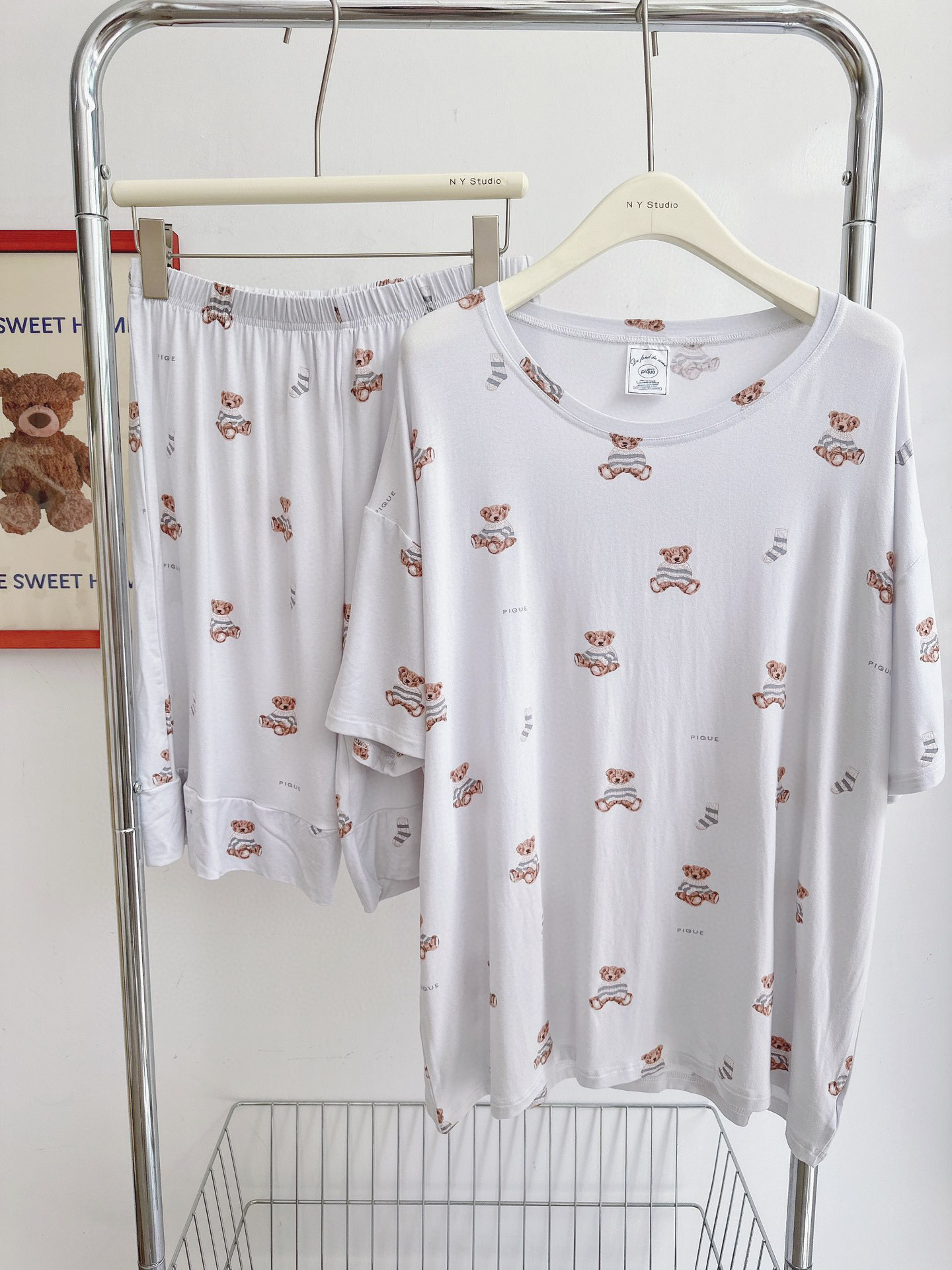 Gp 남자의 새로운 커플 모델 면화 곰 곰 짧은 소매 바지 홈 의류 잠옷 세트 도매스토어 가기
