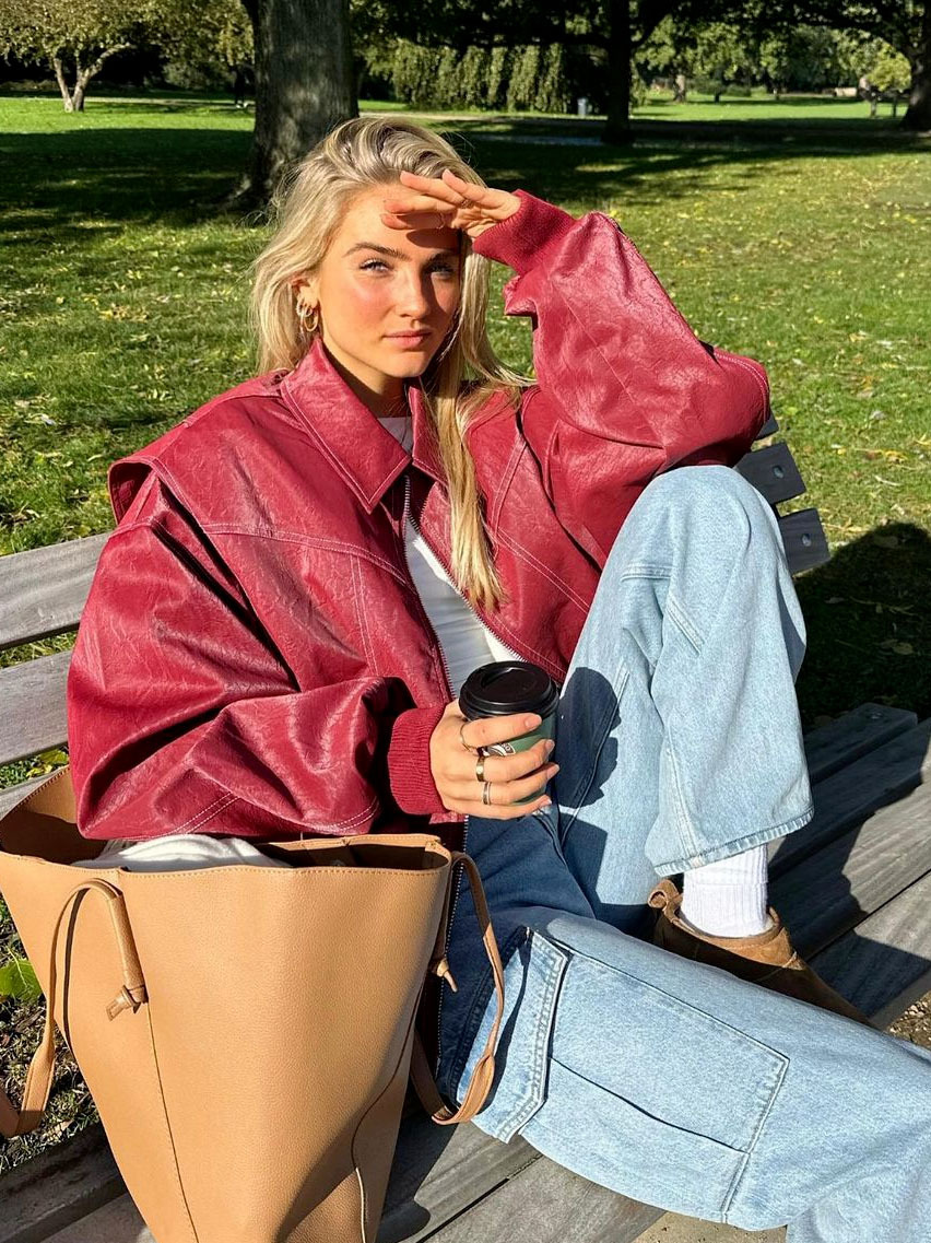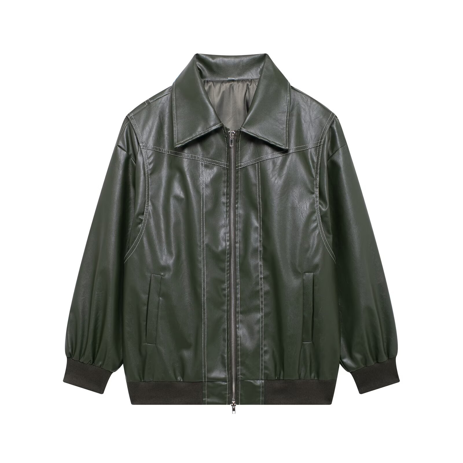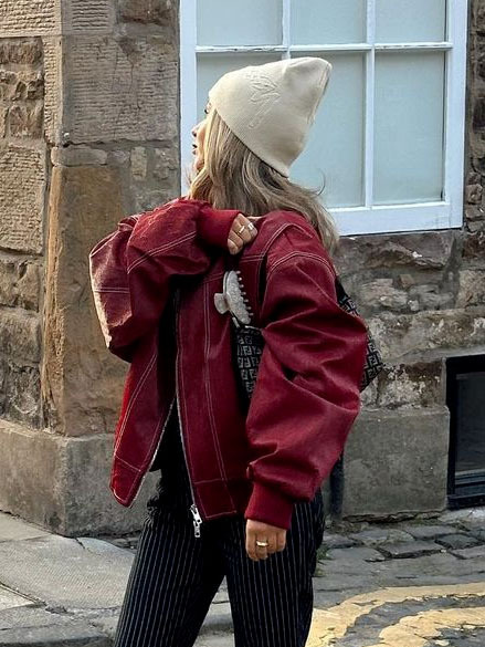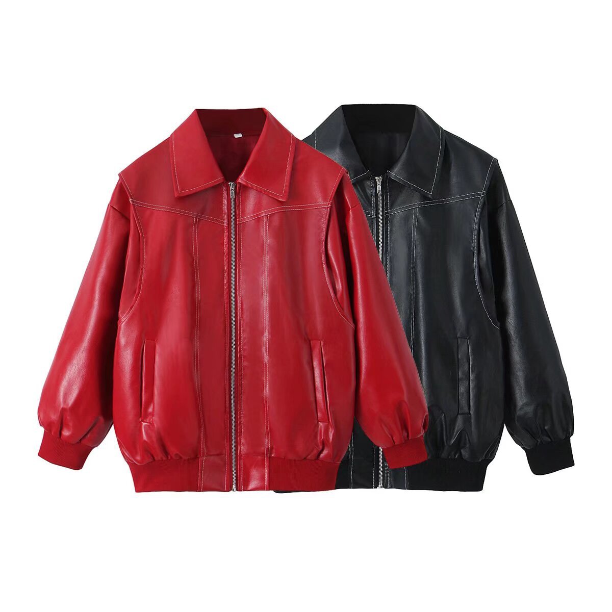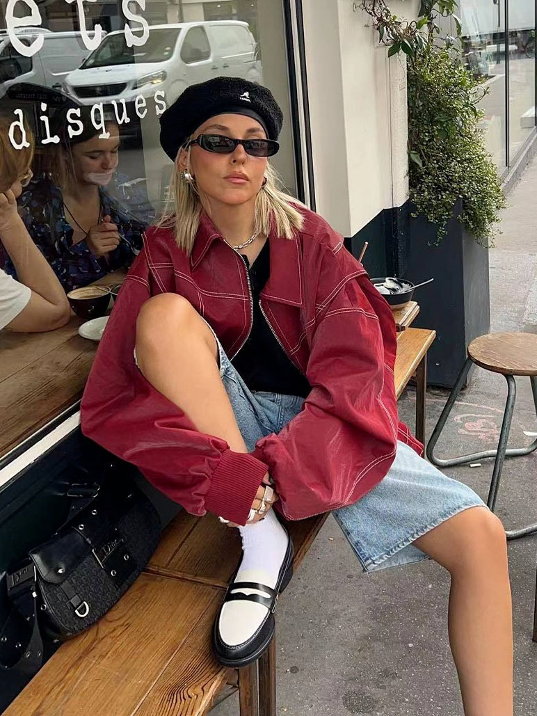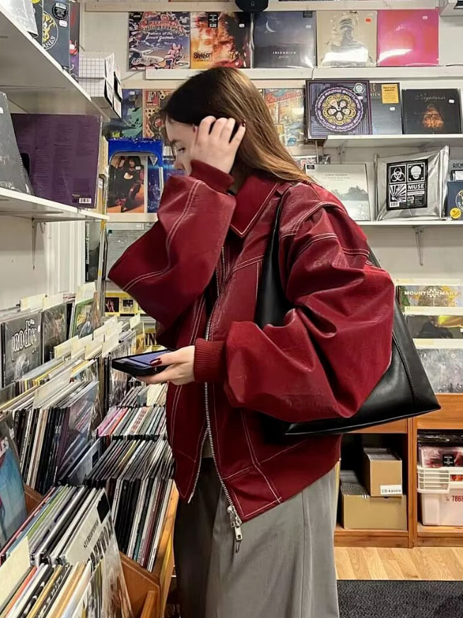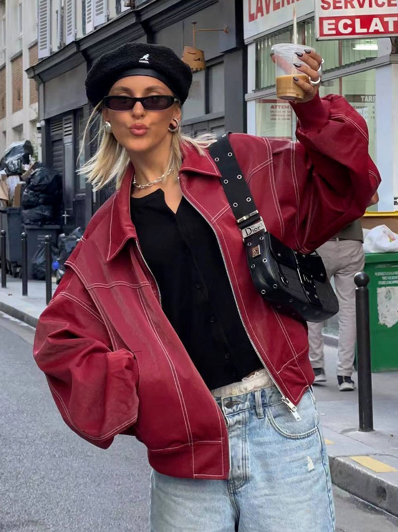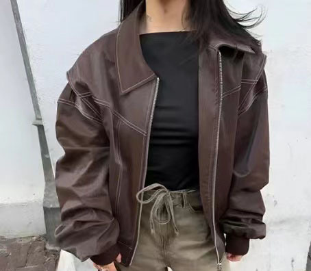 2025년 가을 겨울 신상 미국 스타일 PU 인조가죽 루즈핏 여성용 재킷스토어 가기