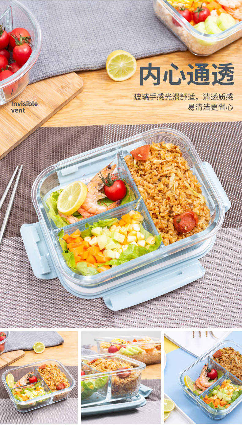 세트 직장인 도시락 분리형 과일 보존 상자를 위한 유리 도시락 전자 레인지 난방 특별 식사 상자스토어 가기